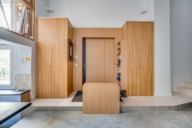 Nombreux rangements sur mesure, circulations fluides, rénovation de qualité avec matériaux haut de gamme.
