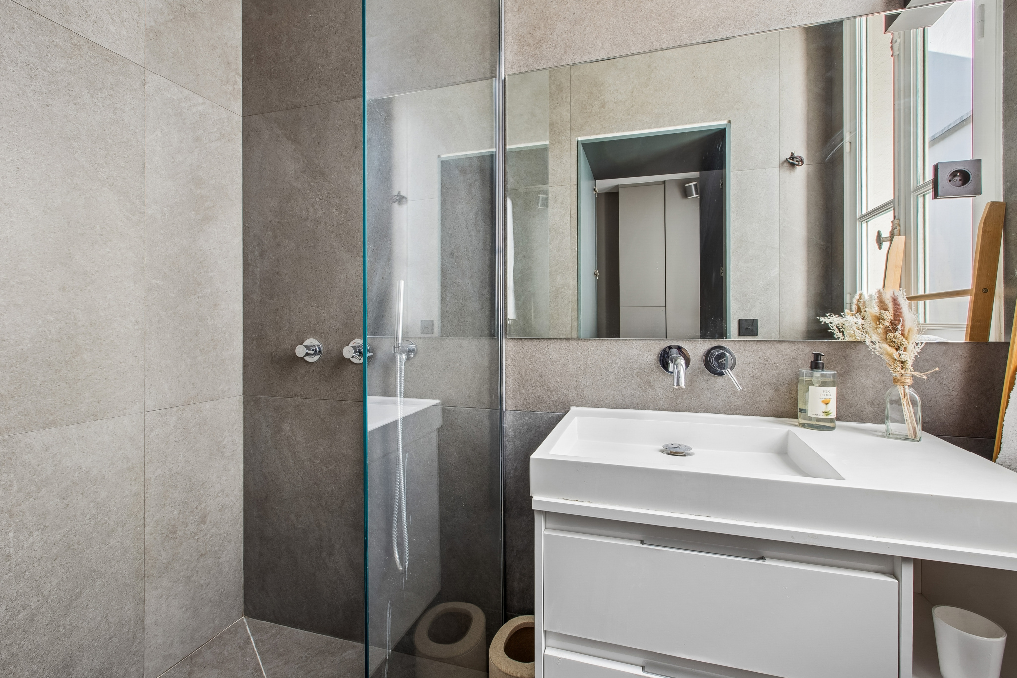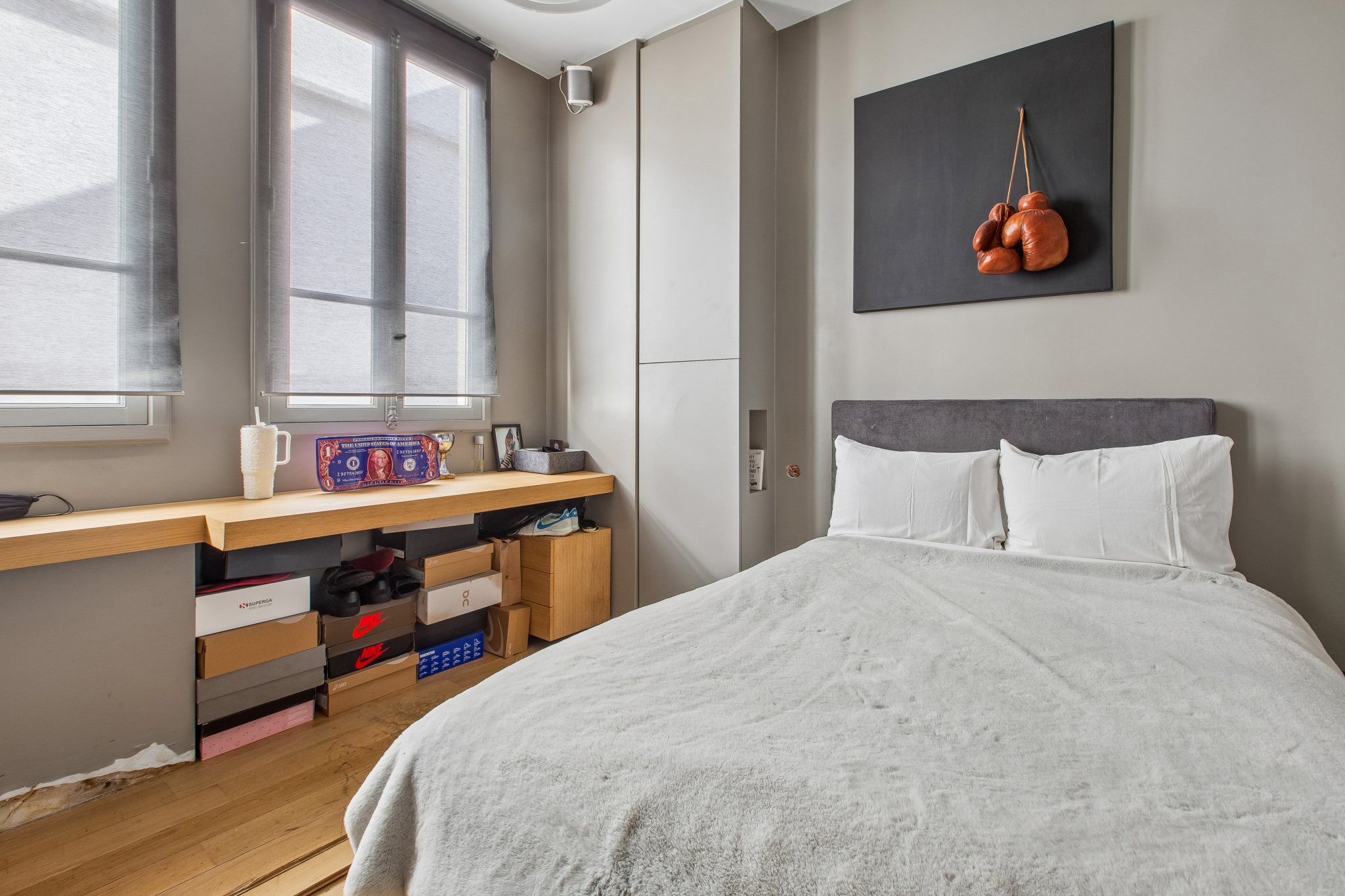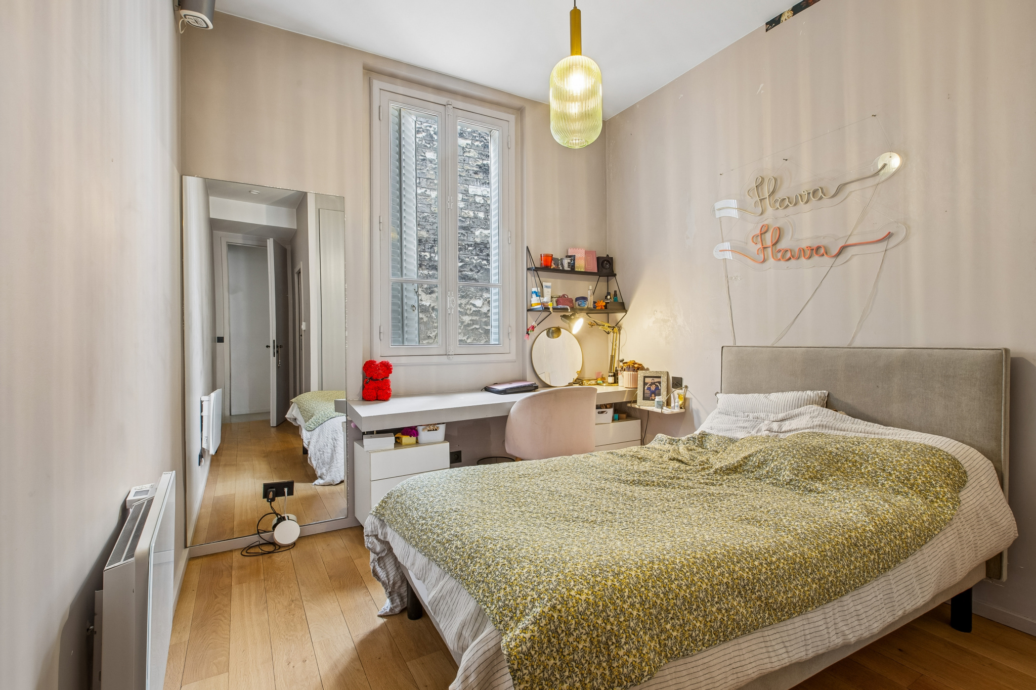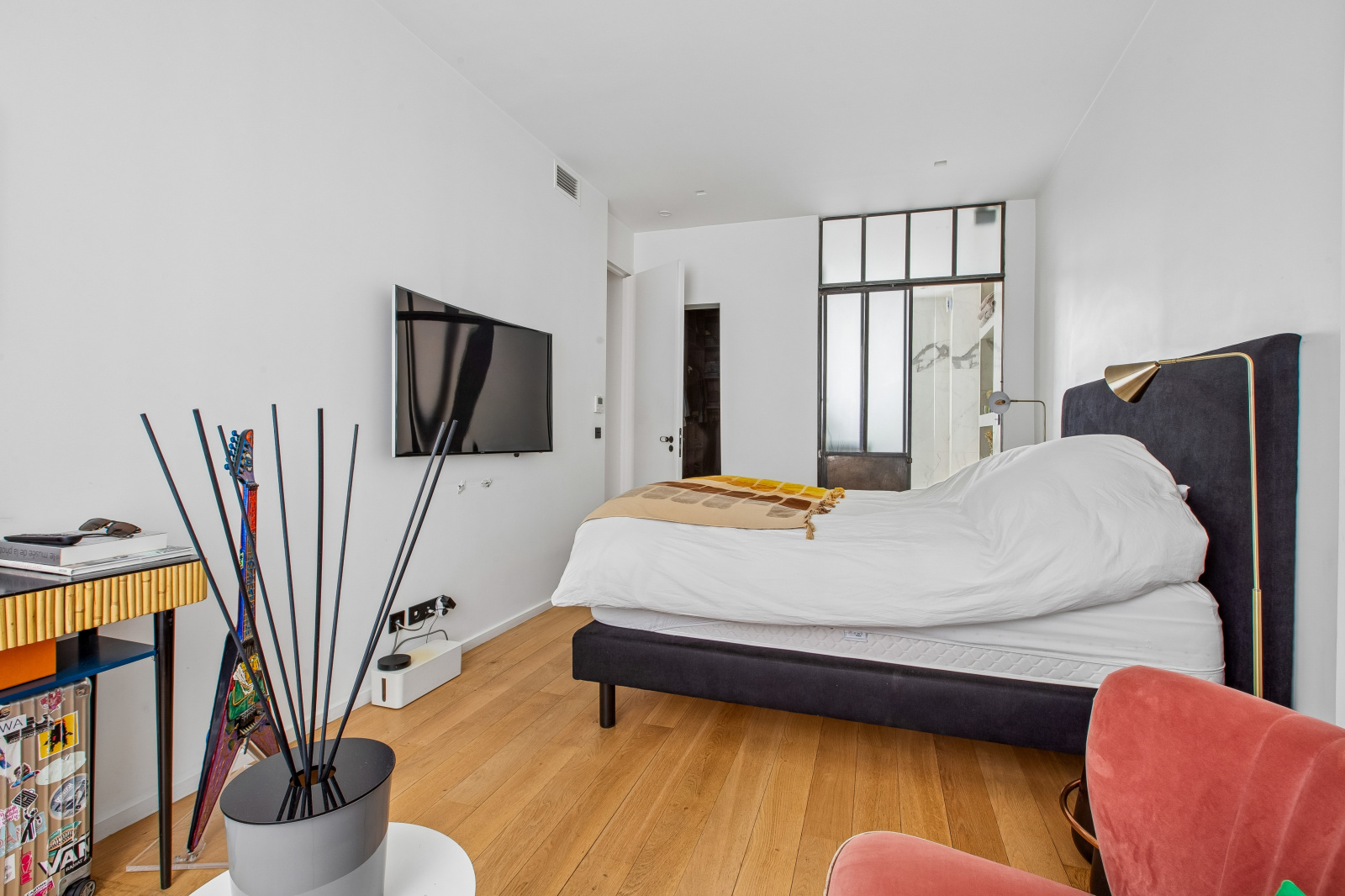 L’espace nuit, clairement dissocié, accueille quatre (4) chambres au calme absolu sur une belle cour, accompagnées de salles de bains et salles d’eau aux finitions soignées, dressings.