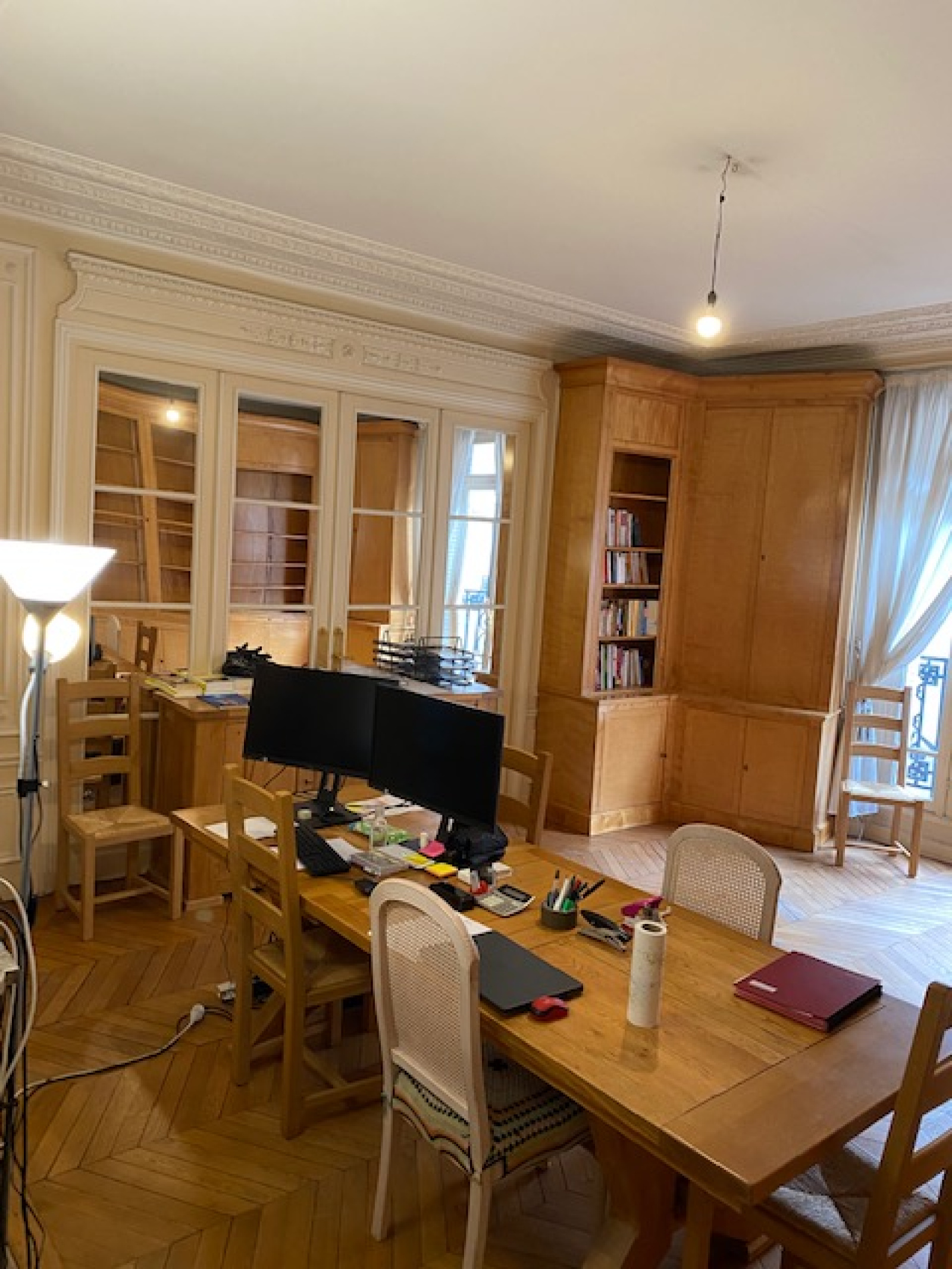Une grande cave complète ce bien. Les charges de copropriété s'élèvent à 3.550 € par trimestre et la taxe foncière est de 4.000 € par an. Le DPE est en cours.