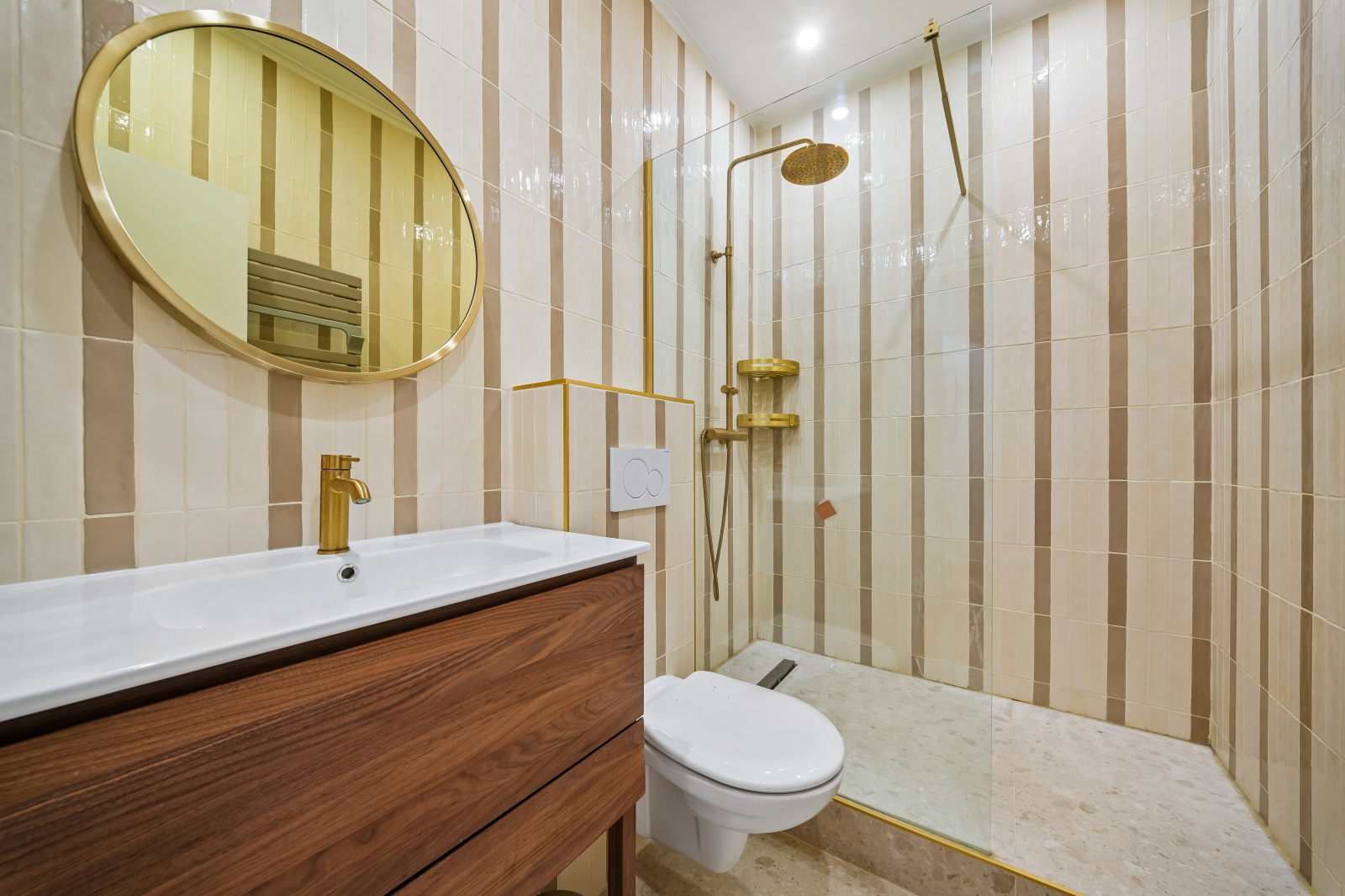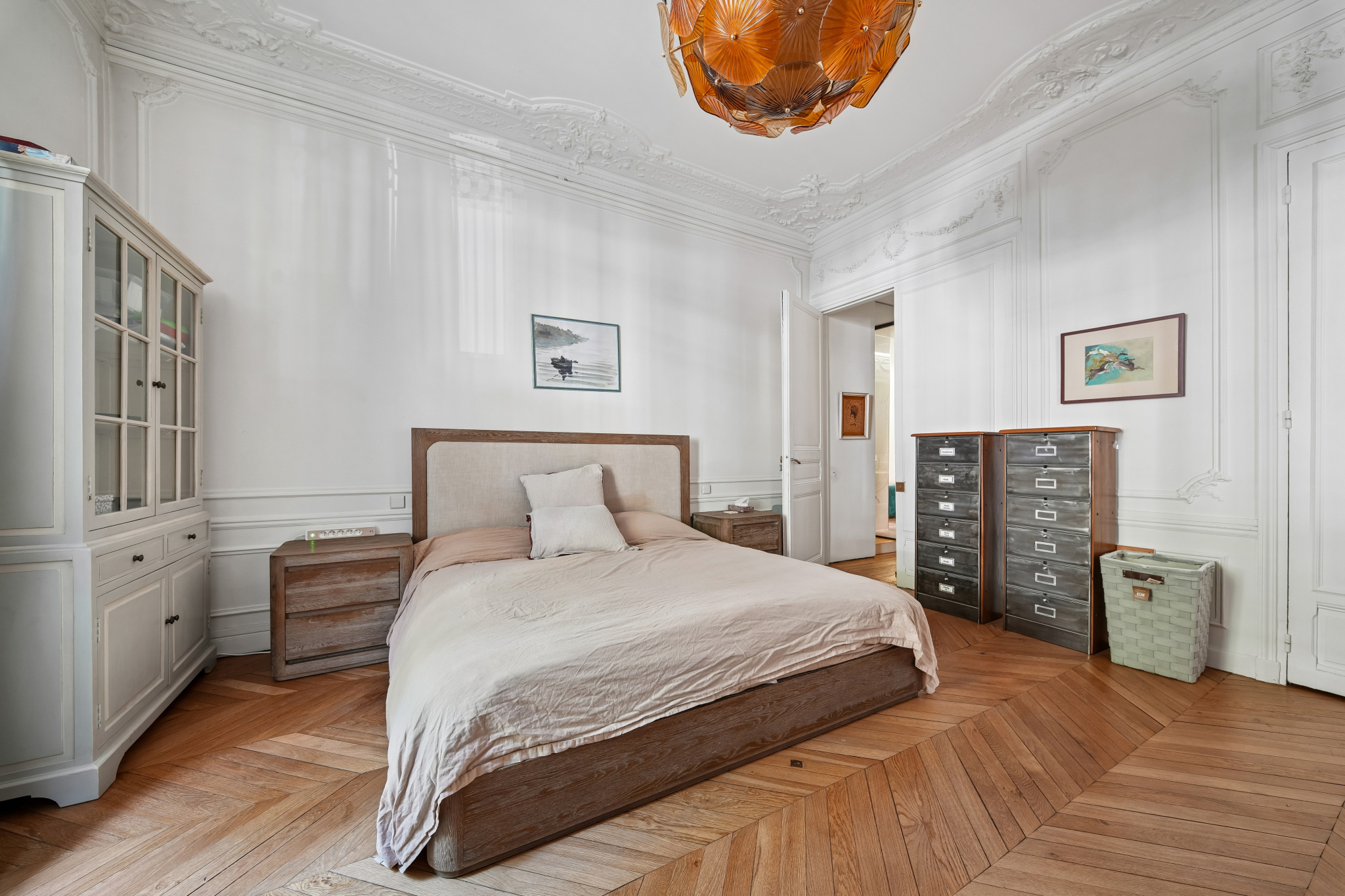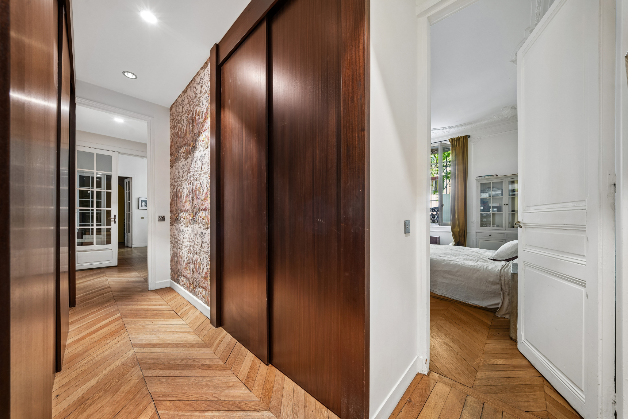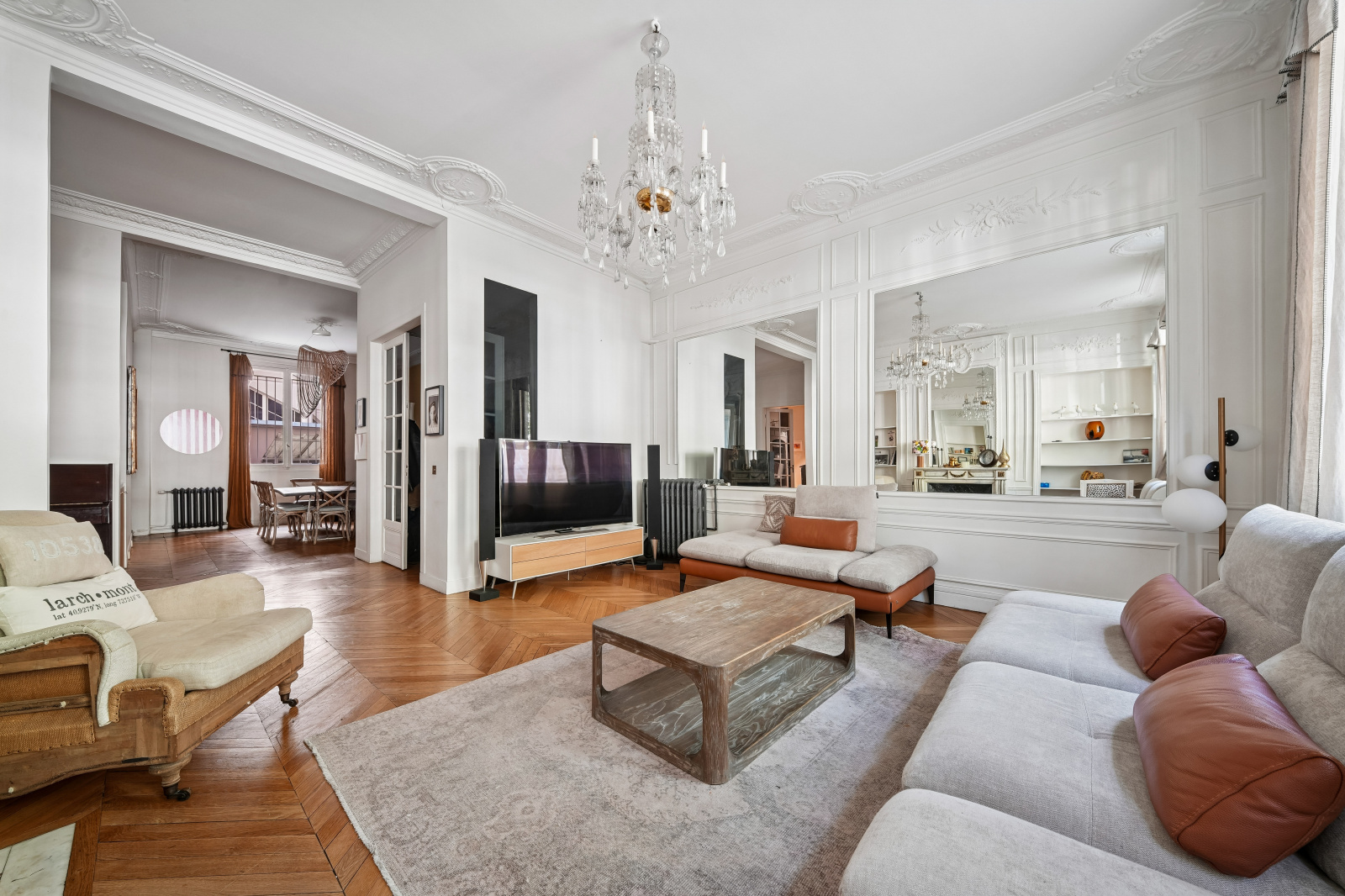 Dès l’entrée, les volumes impressionnent : 3,60 m de hauteur sous plafond, une distribution fluide et élégante, espace optimisé, sublimé par les codes du classique parisien, parquet, moulures et cheminées. La très belle luminosité pour un rez-de-chaussée, valorise chaque espace.