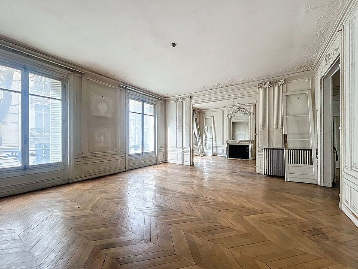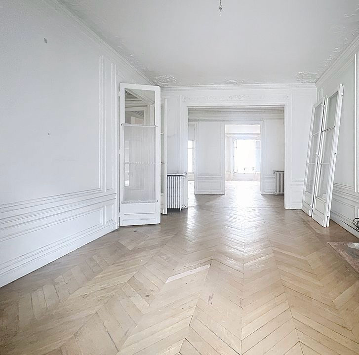 Au cœur du quartier prisé de la Plaine Monceau, à proximité immédiate du parc et des grandes artères du centre-ouest parisien, cet appartement de réception occupe l’intégralité du premier étage d’un élégant immeuble de 1905 d’inspiration Art nouveau. D’une surface de 260 m², il développe de magnifiques volumes sublimés par une hauteur sous plafond de 3,50 mètres, des parquets en point de Hongrie, des cheminées, ainsi qu’un remarquable décor de moulures, colonnes et ferronneries d’époque aux motifs floraux et végétaux. Les pièces de réception s’ouvrent sur rue, offrant une belle présence et une lisibilité parfaite, tandis que les espaces complémentaires se déploient côté cour, 5 chambres , 2 salles de bain, 1 cuisine L’ensemble nécessite une rénovation complète, offrant ainsi une liberté rare de réinterprétation, tant pour un usage résidentiel d’exception que pour l’installation d’une adresse professionnelle de prestige. L’immeuble, parfaitement entretenu, dispose d’un ascenseur et d’une gardienne. Une cave ainsi que des chambres de service complètent ce bien.