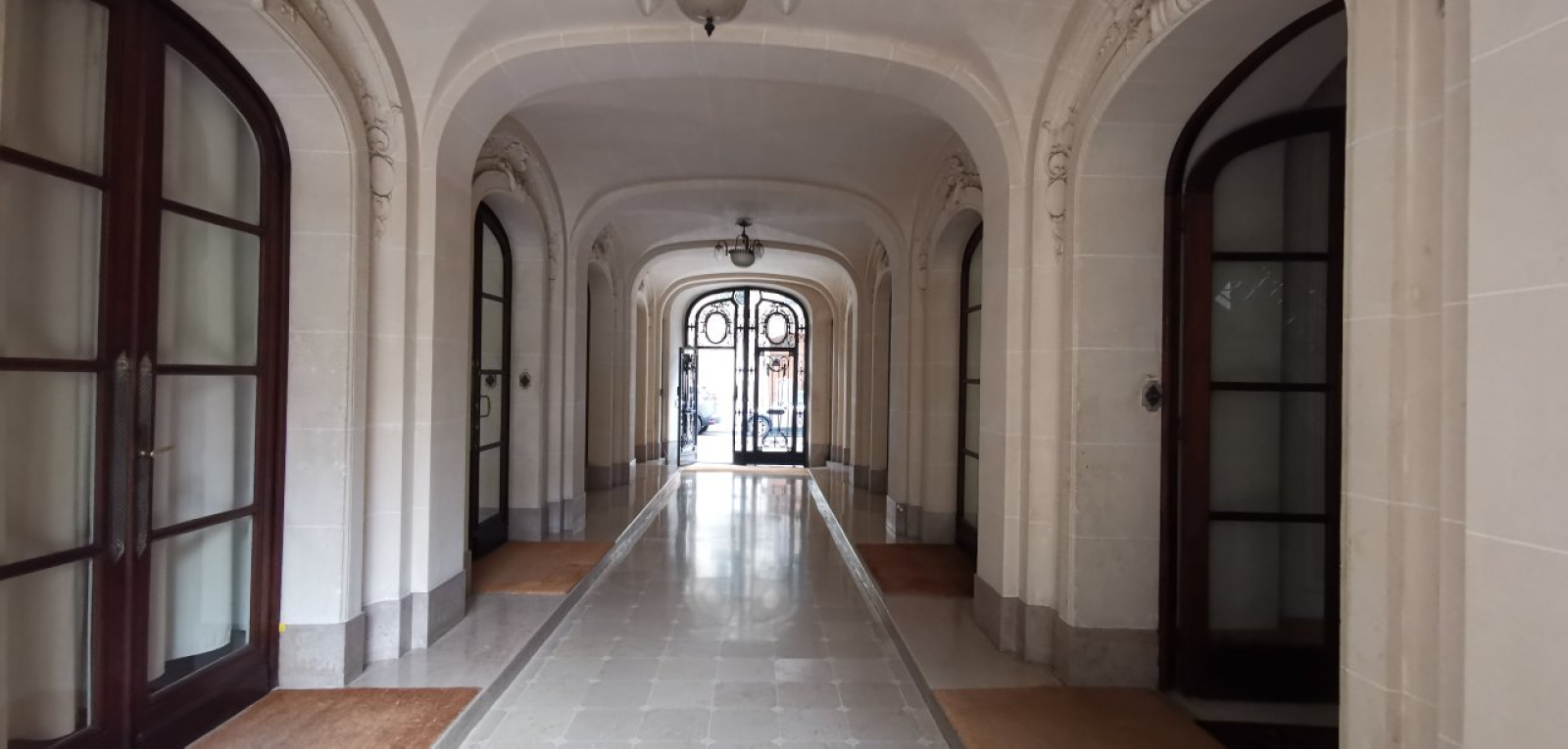 Au 3ème étage avec ascenseur d'un magnifique immeuble en pierres de 1911, situé dans une copropriété de prestige avec gardien à demeure, découvrez ce bel appartement familial et lumineux de 292 m² Loi Carrez.