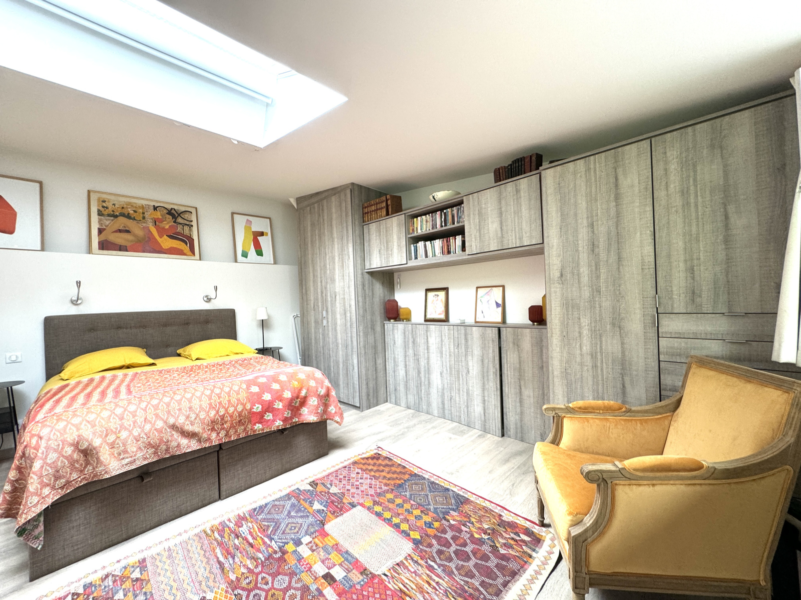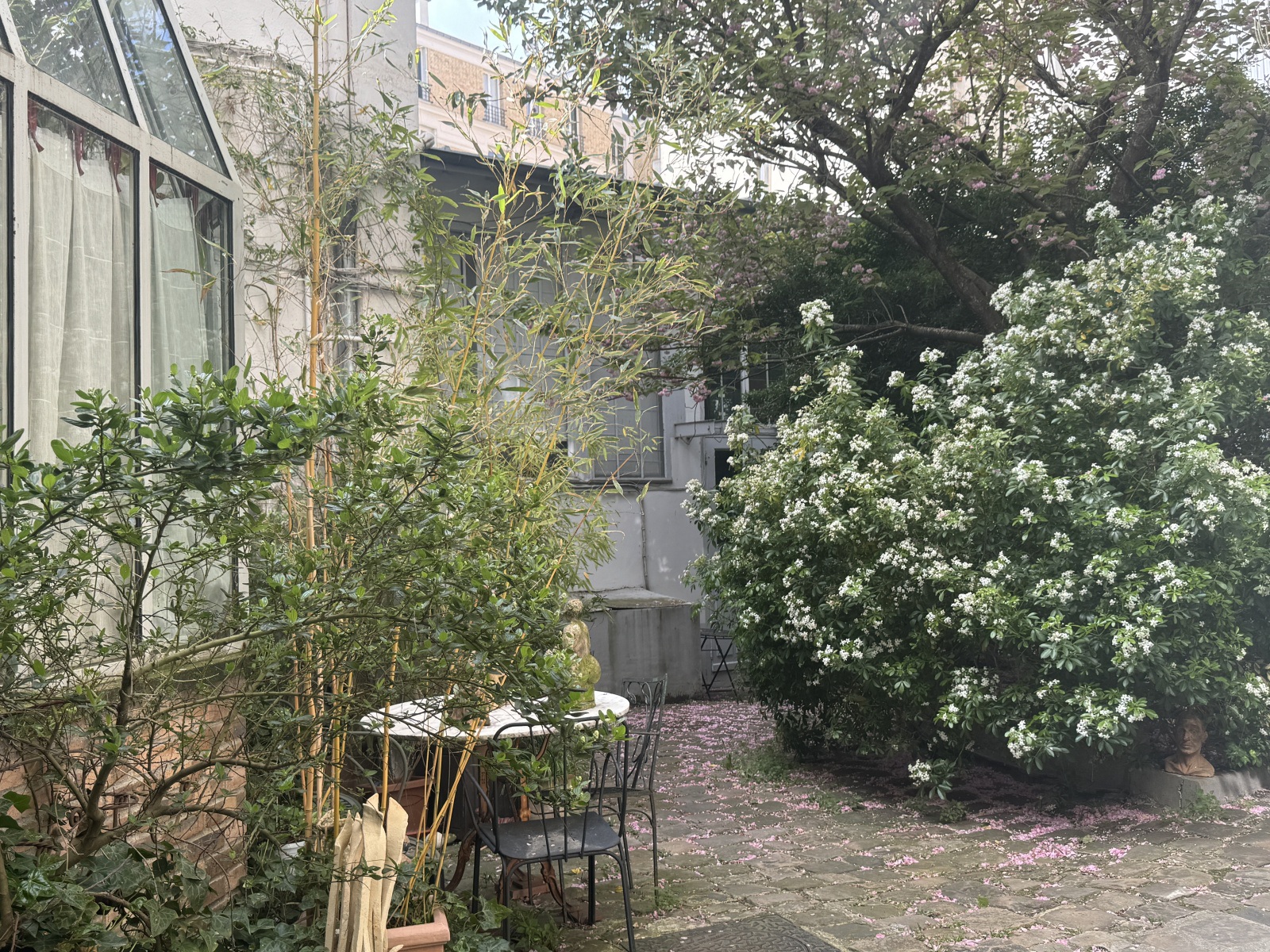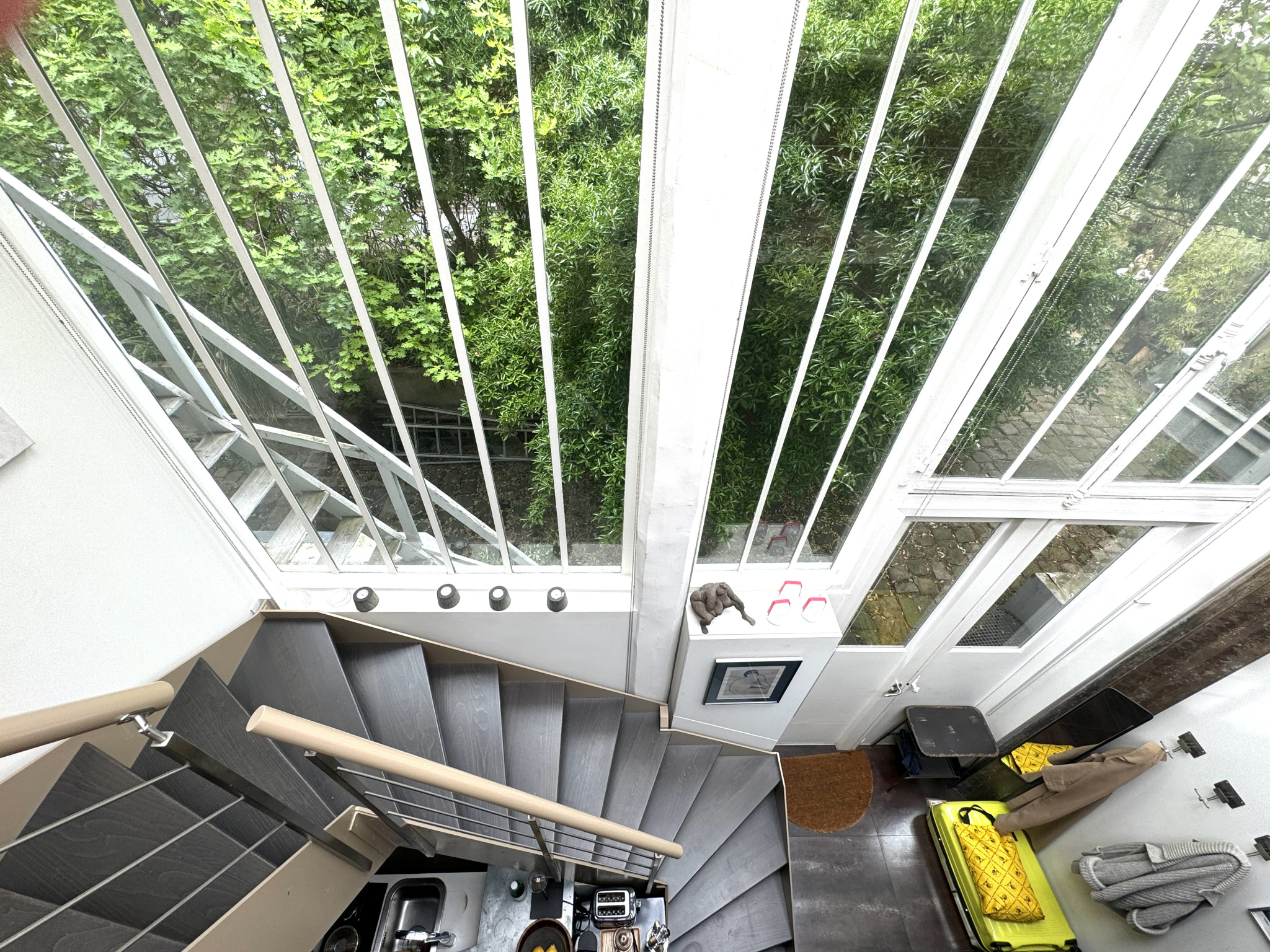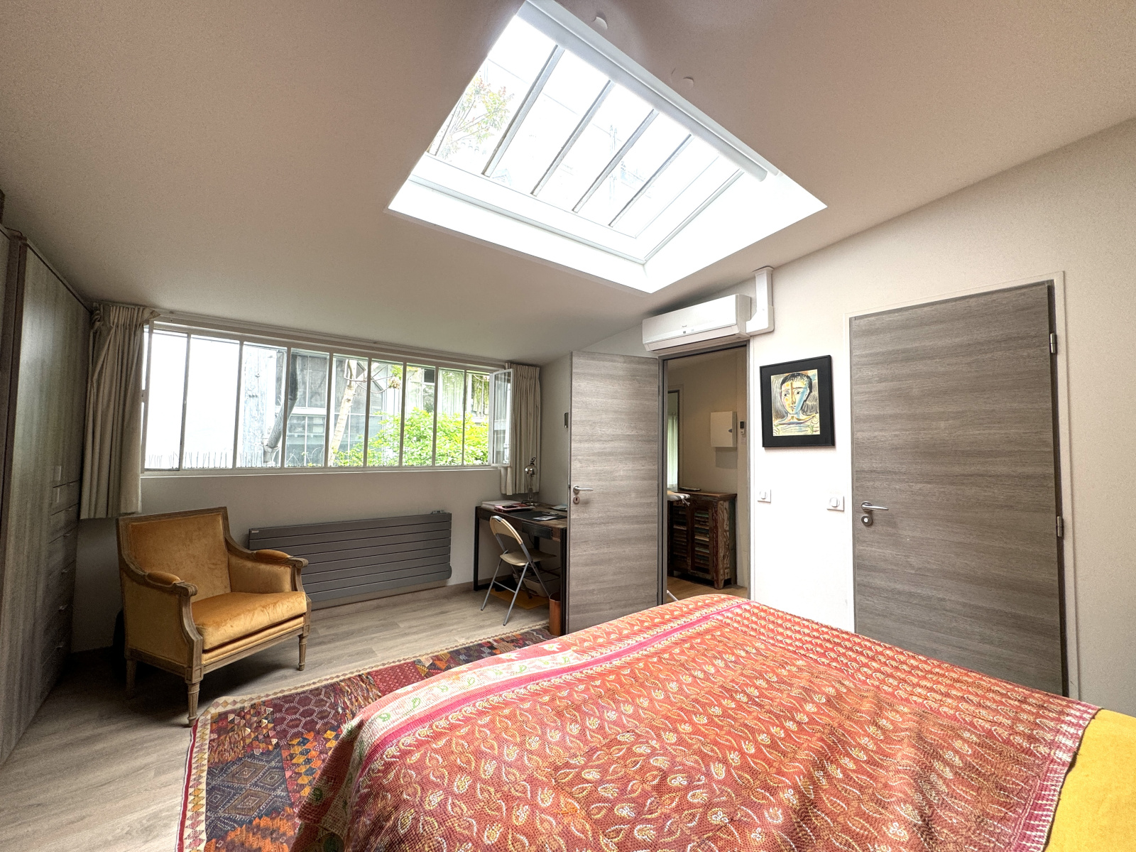 Cet atelier lumineux transformé en logement duplex (67 m2) après une belle rénovation en 2016, a su conserver le cachet et la poésie du lieu. (chauffage au sol, climatisation)