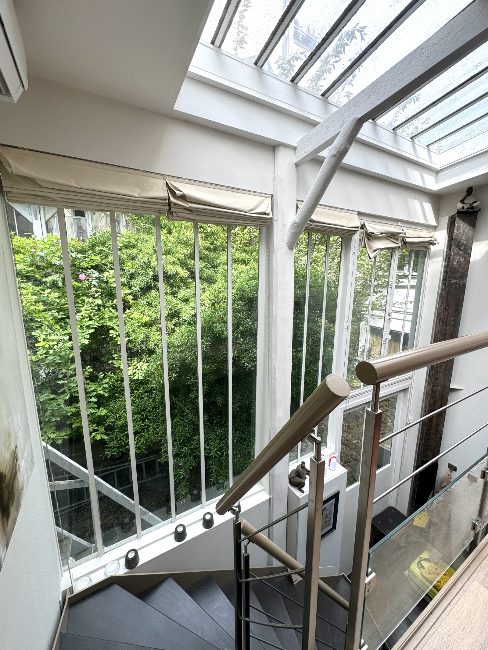 Situé au rez-de chaussée, doté de nombreuses verrières en façade et en toiture, il bénéficie d'une vue imprenable sur ce havre de paix et de verdure.