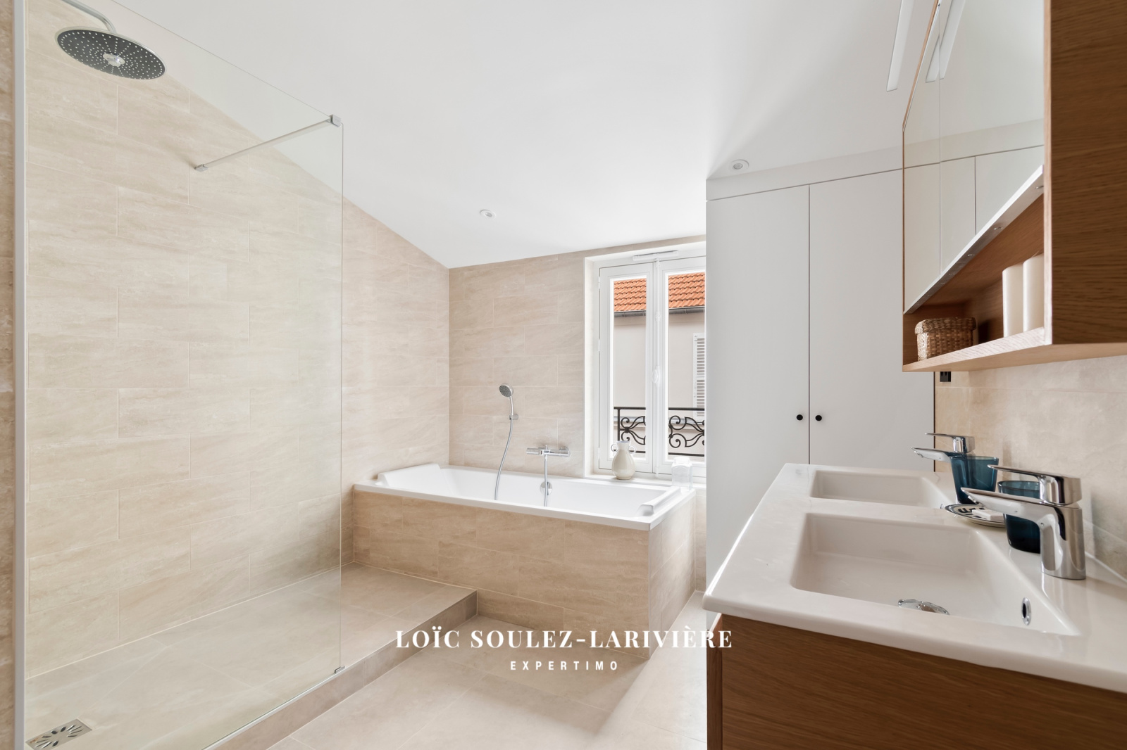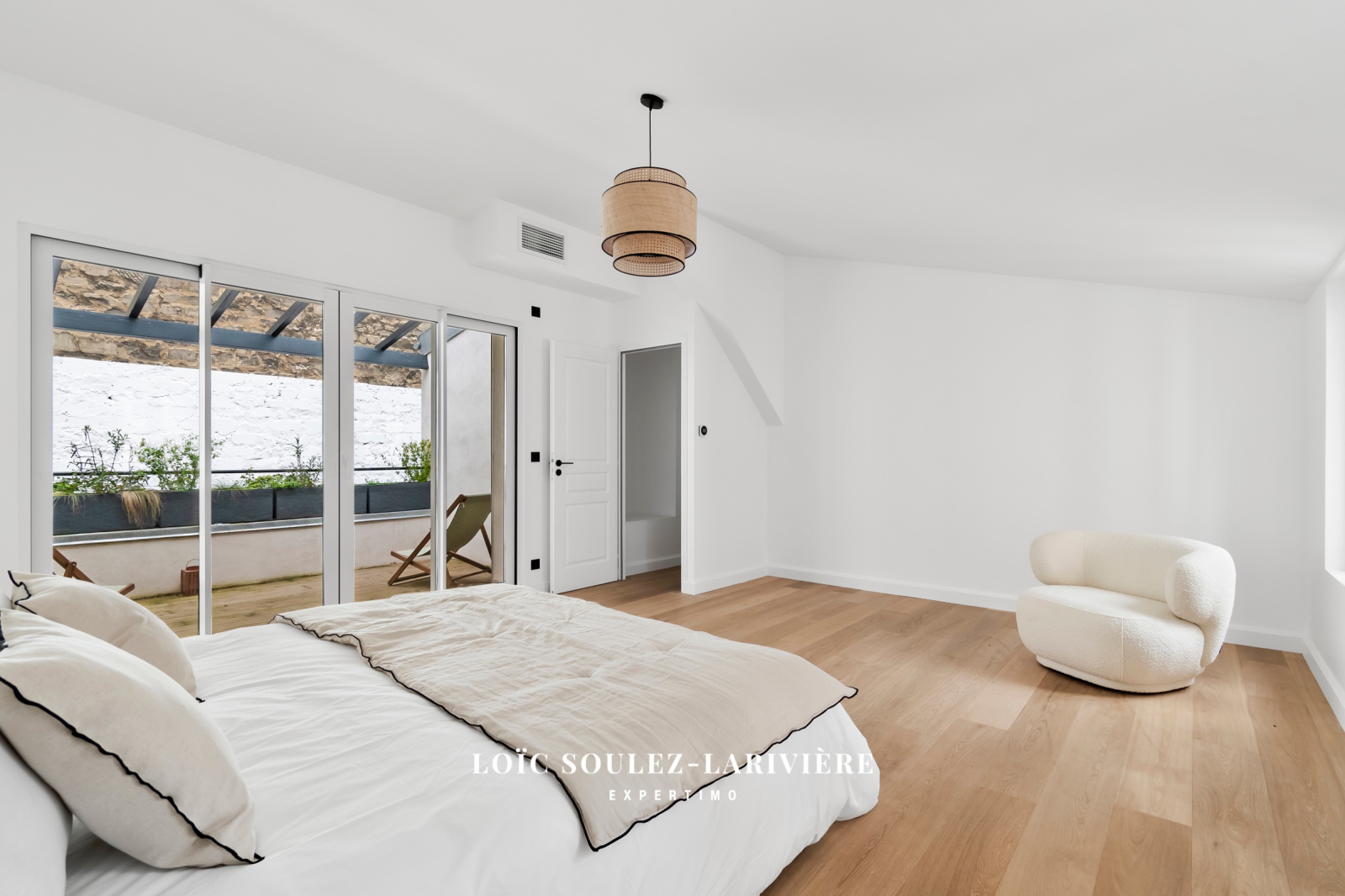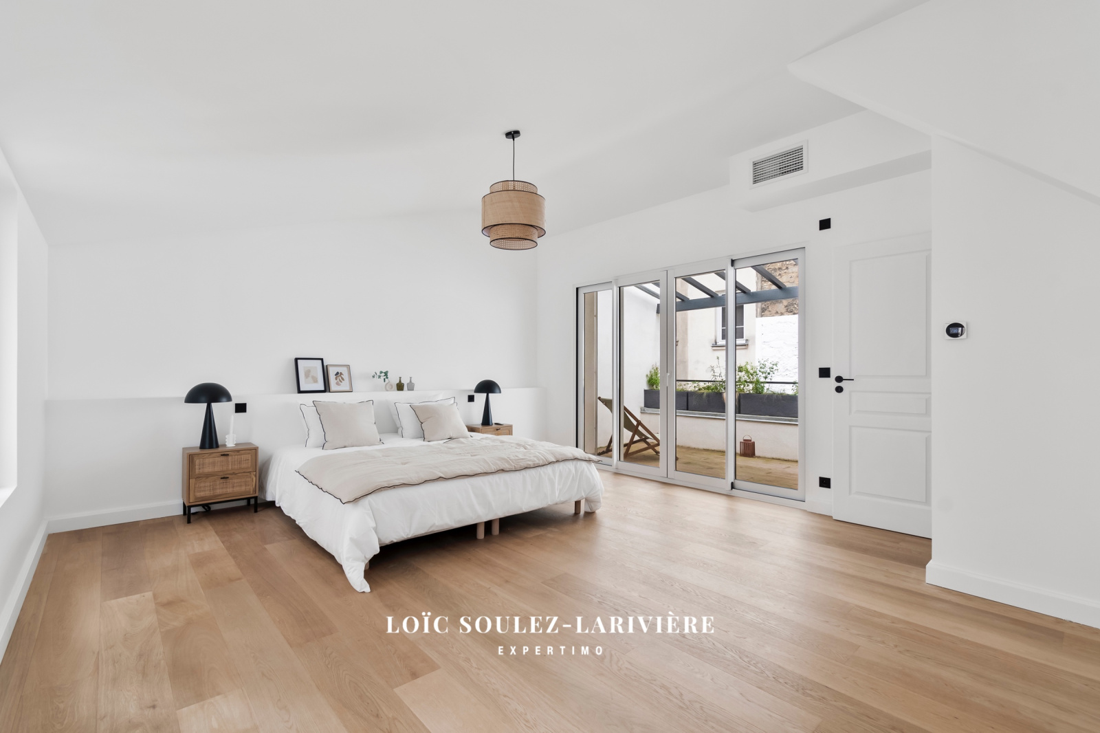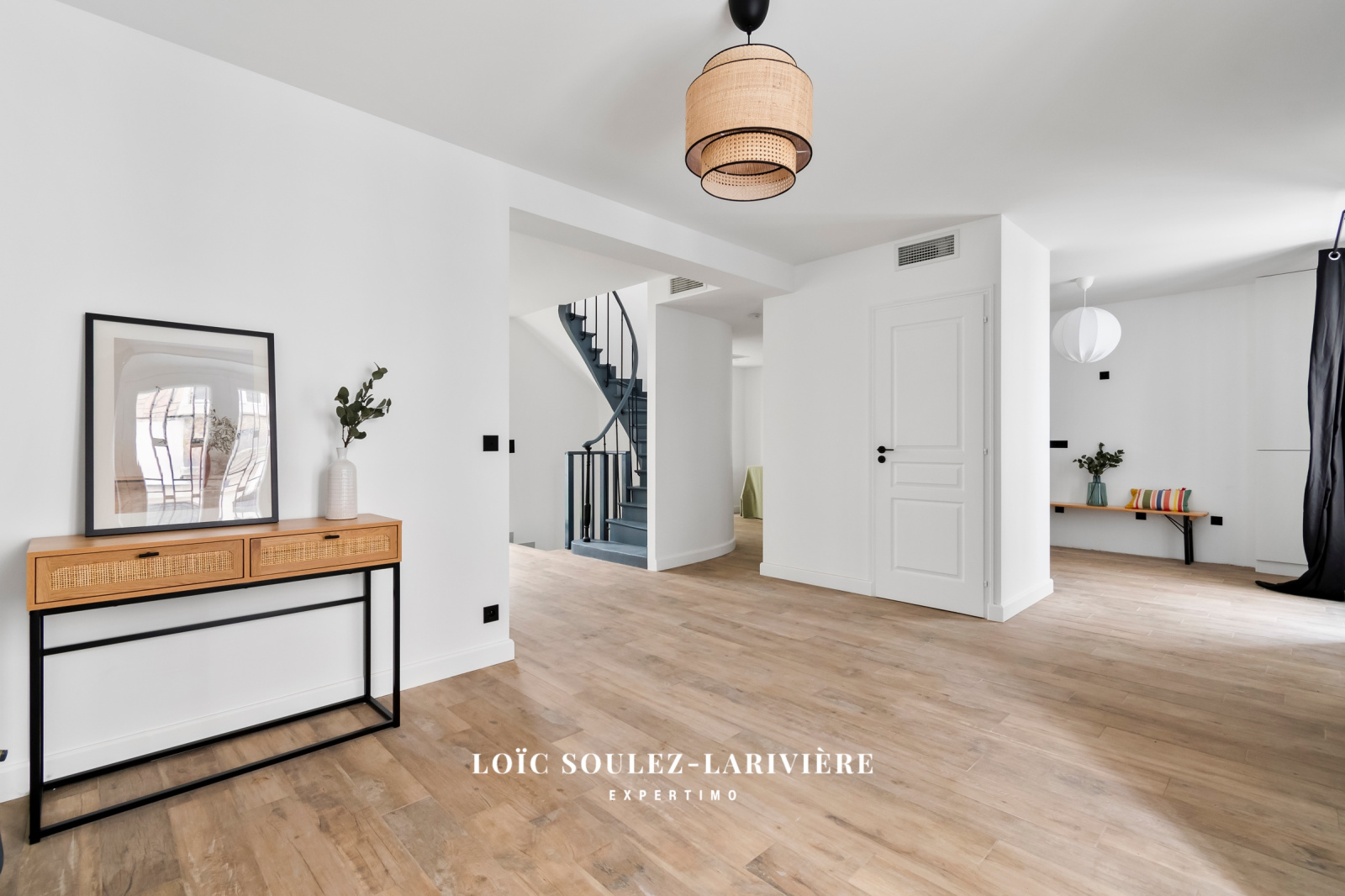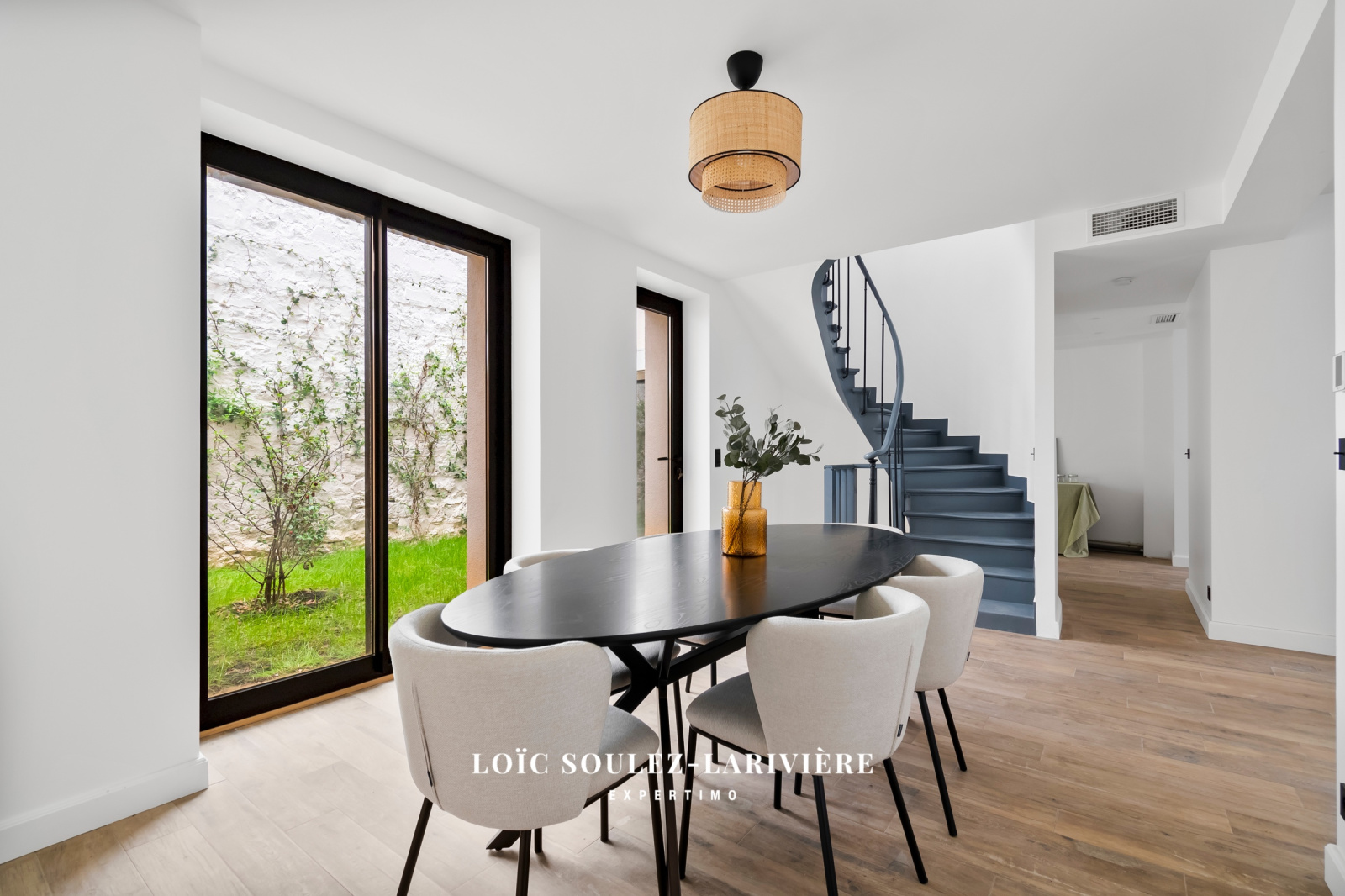 Actuellement, elle se compose d'une entrée avec réception, d'une salle à manger donnant le jardinet extérieur de 30m2, d'un espace cuisine (non aménagée et équipée), d'une deuxième pièce de réception donnant également sur le jardinet, WC d'invité avec lave main. Au premier étage, vous retrouverez un grand plateau traversant de plus de 50m2 avec une terrasse de 9m2 et un WC avec lave main. Au deuxième étage, vous retrouverez 3 chambres, une salle de bain avec double vasque et un WC indépendant. Au troisième étage, une grande suite parentale de 50m2 comprenant une chambre de 23m2, une salle de bain avec baignoire et douche ainsi qu'une double vasque, un espace dressing, rangements, et un WC indépendant ainsi qu'une terrasse sans aucun vis-à-vis.