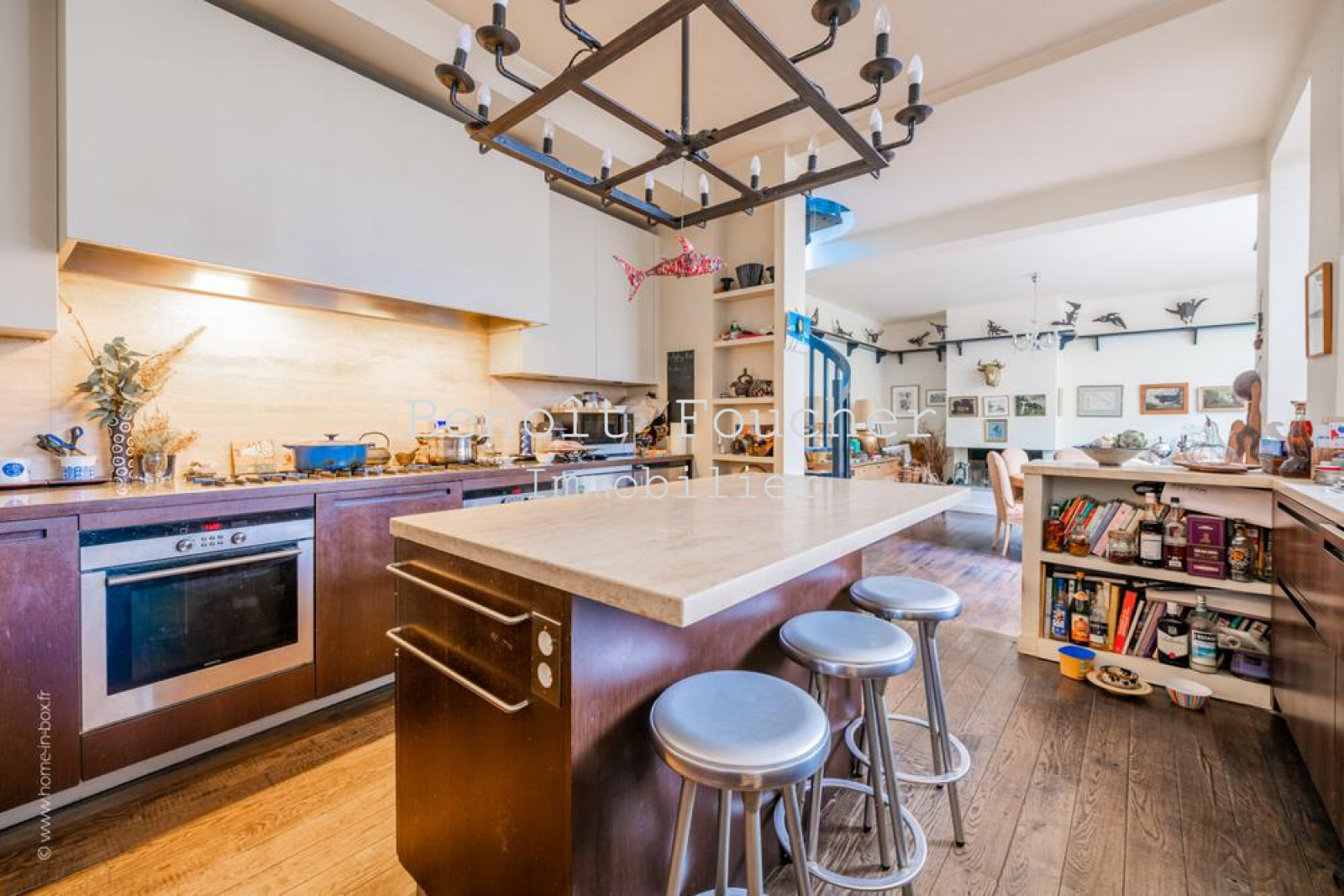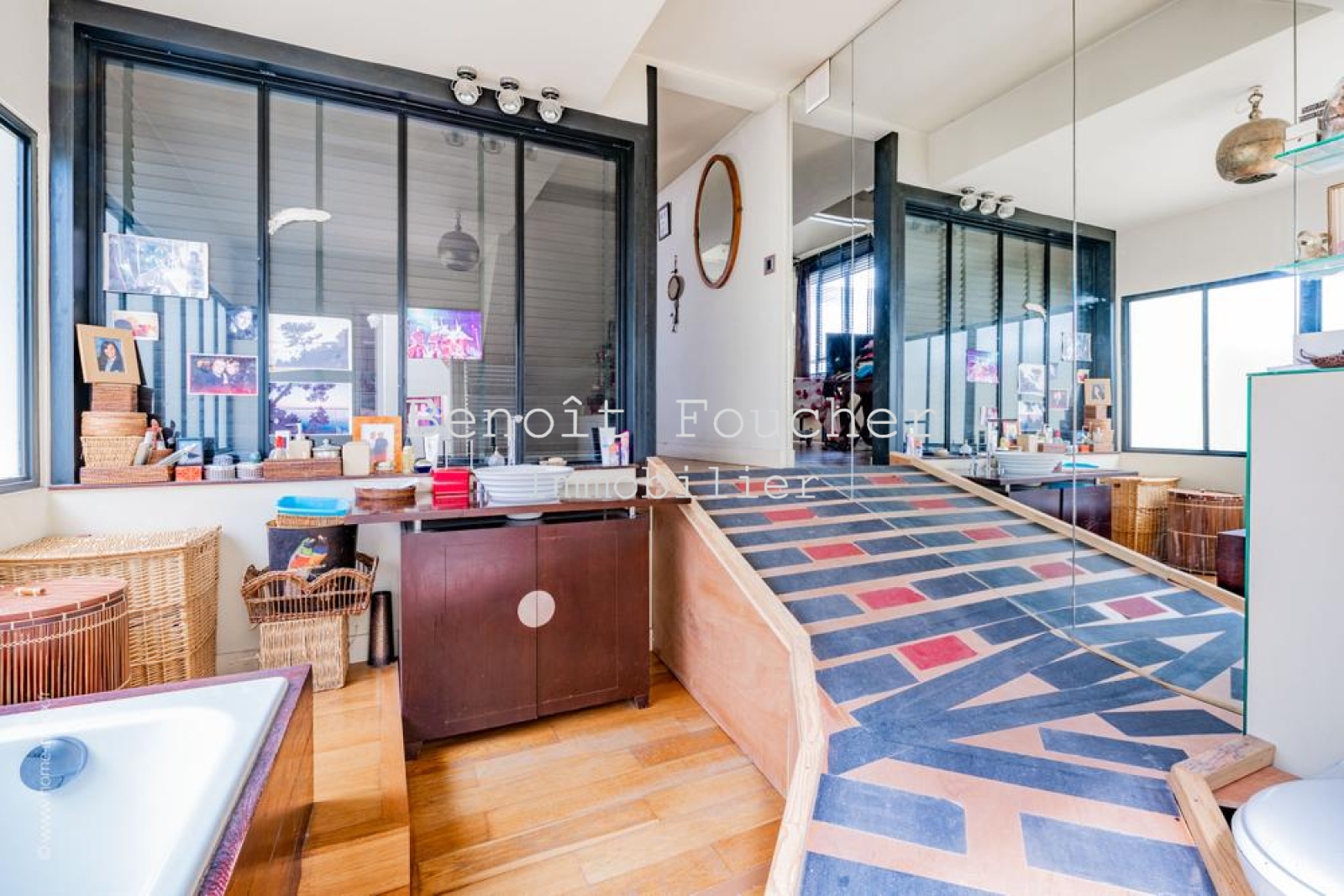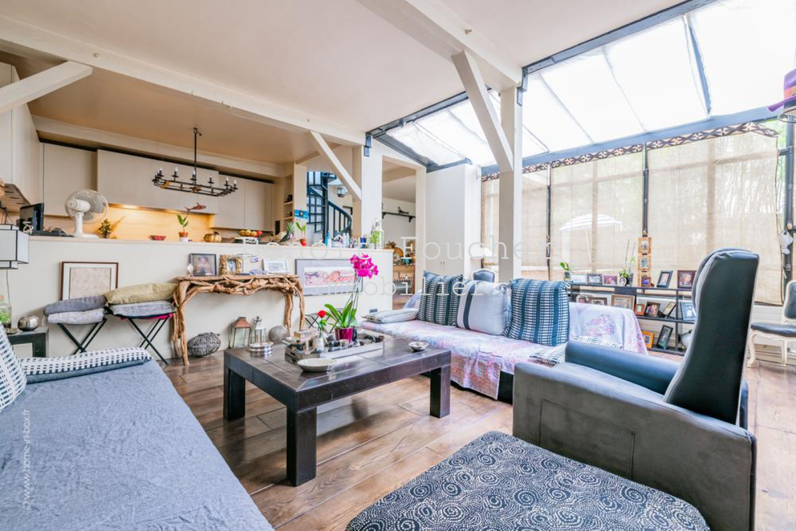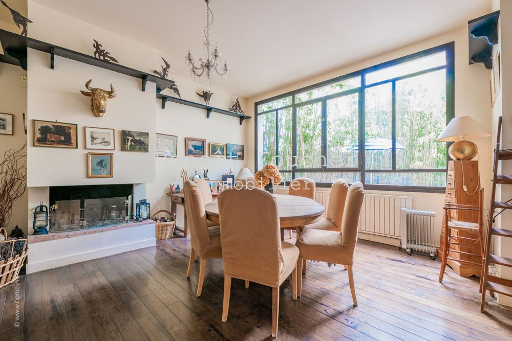 Cette maison de charme offre des prestations de qualité : verrières, parquet, poutres d’origine, cheminée, briques, très belle hauteur sous plafond, petit espace extérieur…