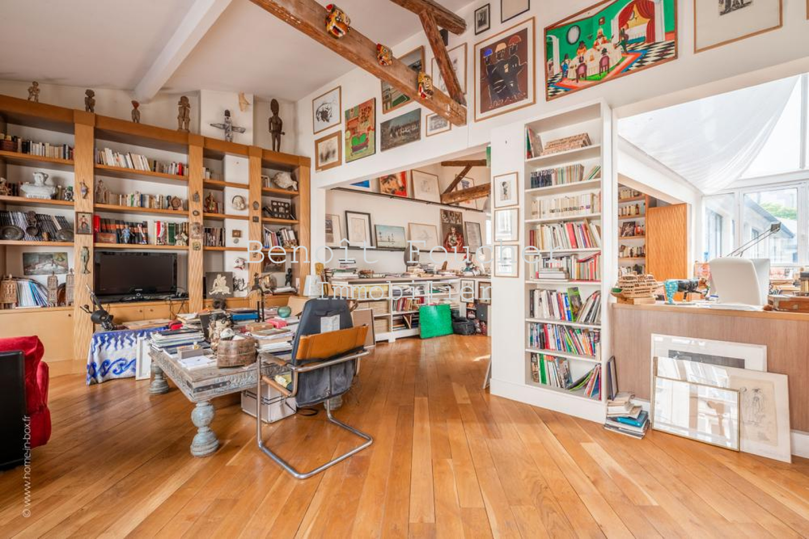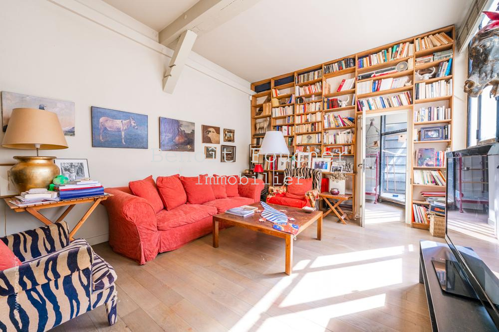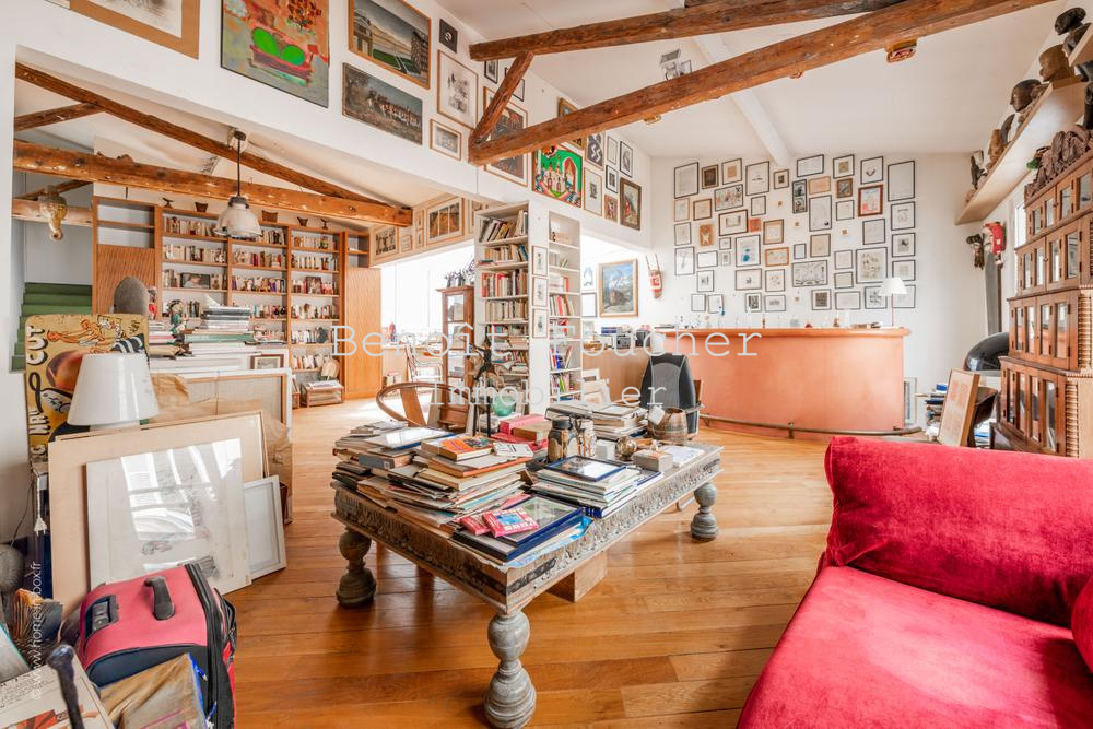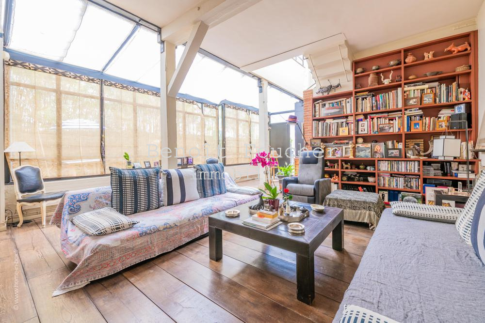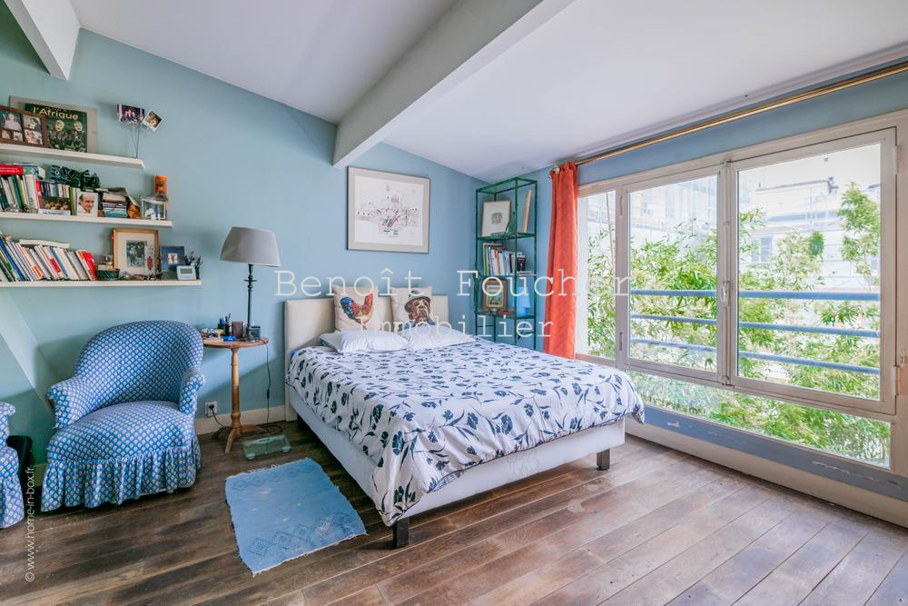 Au cœur de l’authentique quartier parisien de Ménilmontant, dans le 20ème arrondissement, limitrophe du 11ème (rue Oberkampf à proximité immédiate), belle maison d’artiste en « U » de 350m2 environ, au calme absolu et aux volumes impressionnants.