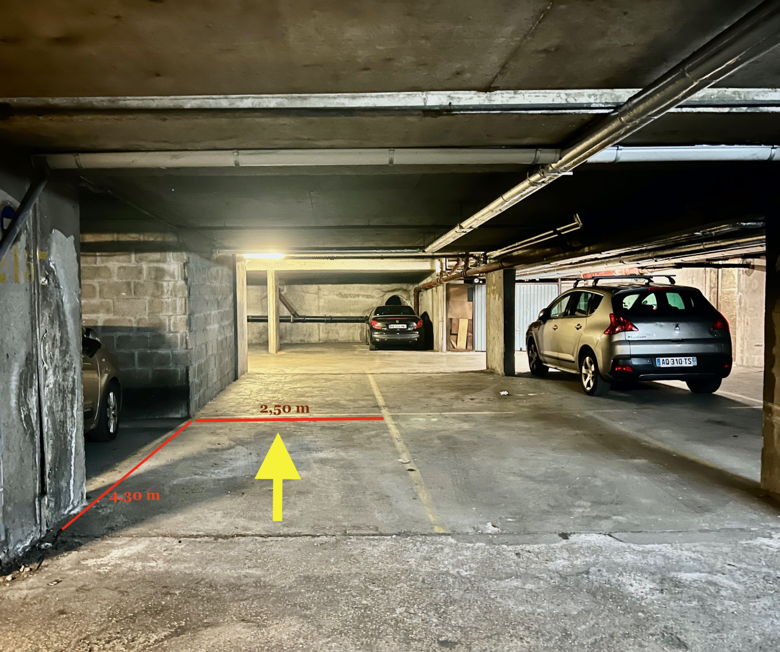 Paris 20ème, rue de Fontarabie, dans une copropriété très bien entretenue et sécurisée (badge d'accès, ouverture automatique, large accès véhicule) , emplacement de parking (4,30 x 2,50 m soit 10,75 m2) au premier sous-sol très bien placé immédiatement à l'arrivée de la rampe d'accès véhicule.