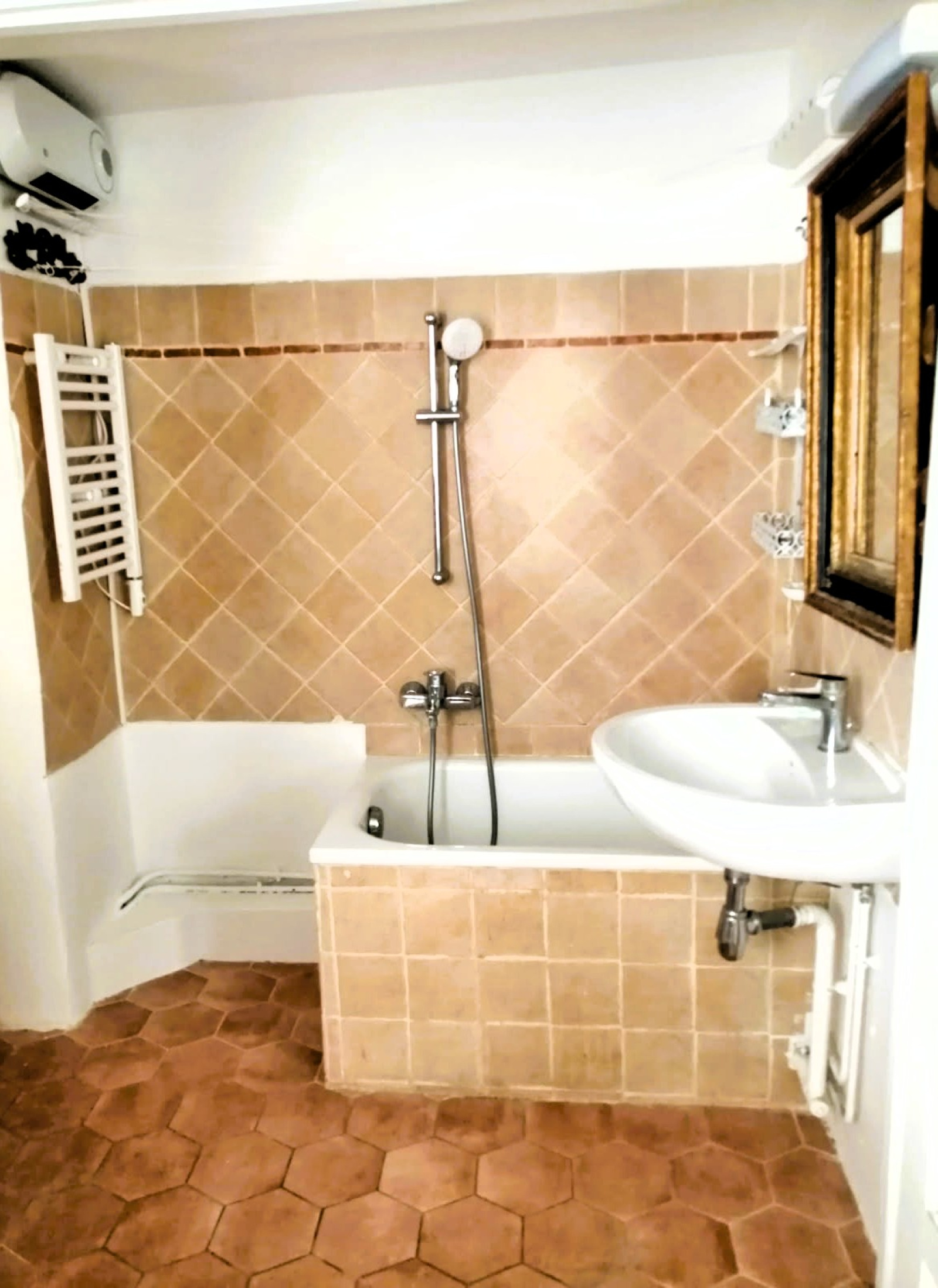 Calme et lumineux, dans un immeuble ancien datant de 1800, studio en parfait état, entièrement rénové, d’une surface de 29,04 m² Loi Carrez situé au 4ème étage par un escalier en galerie.Il est composé d’une pièce principale avec des tomettes en terre cuite contemporaines, des poutres anciennes, dotée d’une fenêtre sur cour orientée ouest, un coin cuisine est surplombé par un fenestron qui offre comme un clin d’oeil, une charmante petite vue sur la cathédrale à l’est, une salle de bain avec WC et petite fenêtre.Chauffage et eau chaude individuels électriques. Volets électriques. Porte blindée. Digicode.
