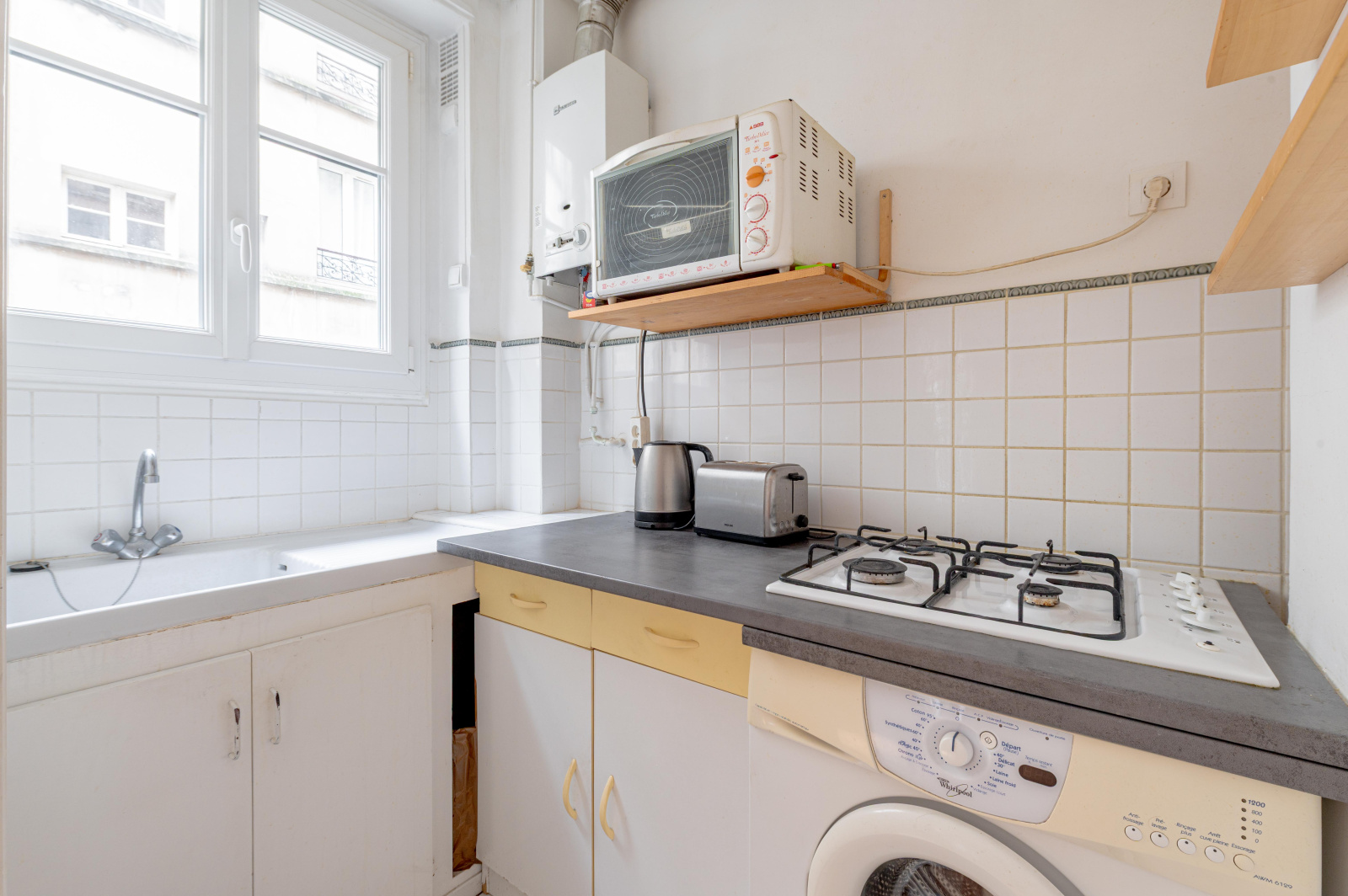 Paris 11e - Père Lachaise. En exclusivité. Au pied du métro (lignes 2 et 3) et des commerces. Au sein d’un immeuble de 1860, au calme absolu sur cour, ce studio bien agencé de 31,38 m² LC, est situé au 2ème étage par escalier. Il bénéficie d’une exposition Est. Il se compose d’une entrée, d’un séjour de 25 m² doté de deux fenêtres, d’une cuisine séparée avec fenêtre, d’une salle d’eau avec WC sanibroyeur. Chauffage électrique. Chauffe-eau au gaz.