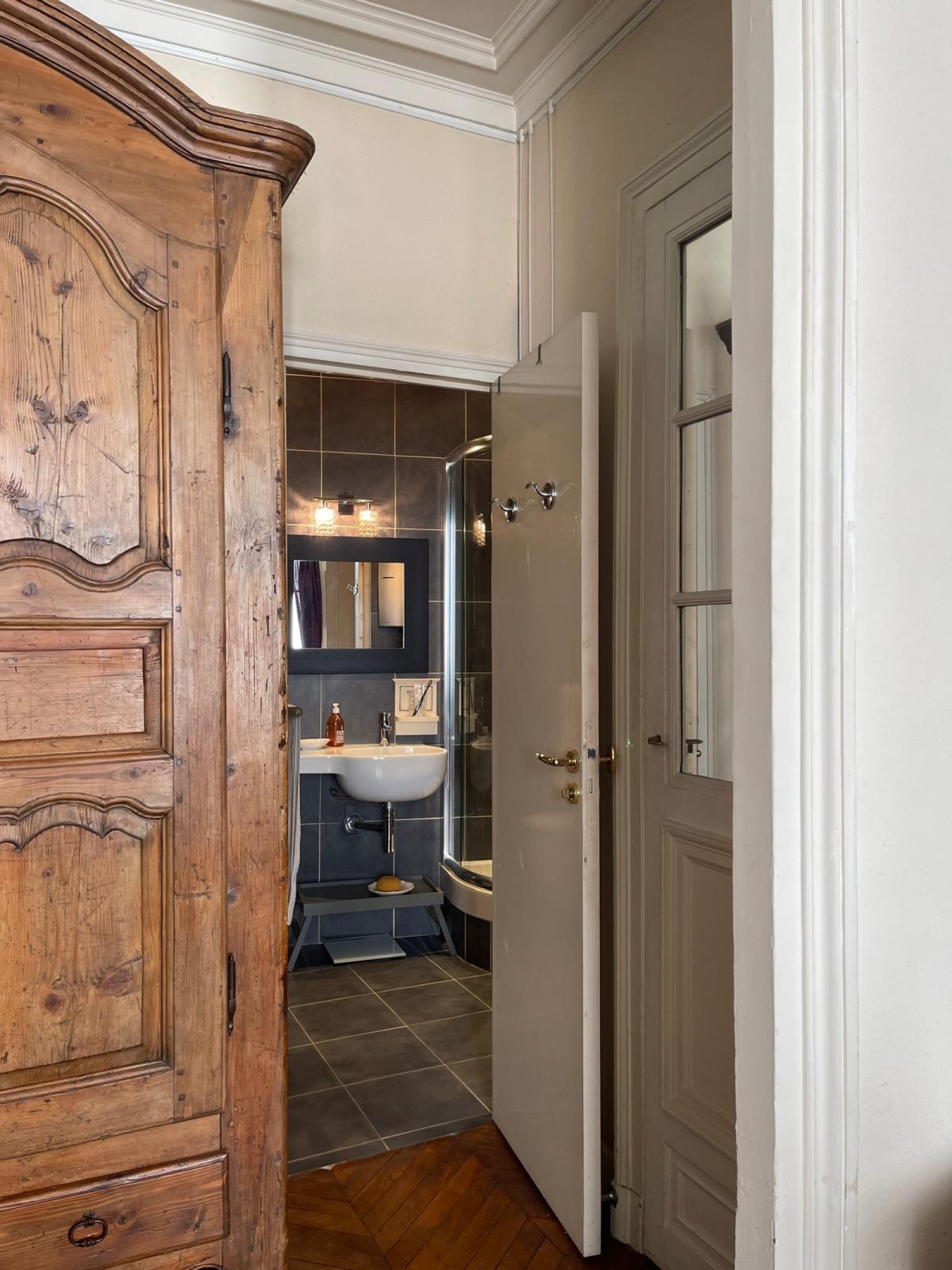 Belles prestations. Cheminée, moulures et parquet d'origine. Chauffage individuel électrique. Porte blindée.