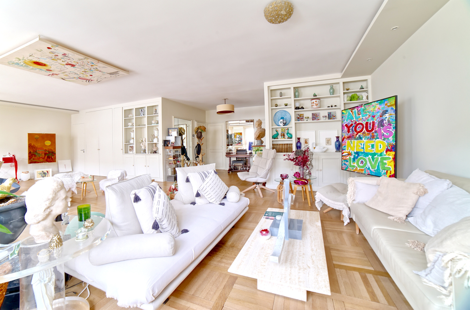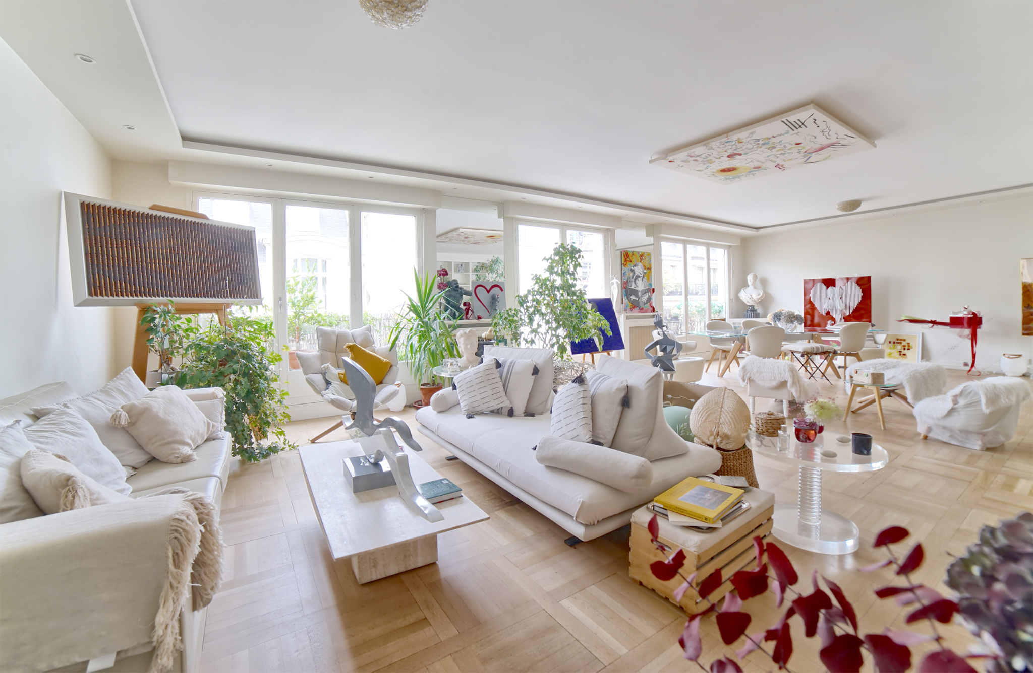 • une pièce de réception de 63 m2 ouverte sur 2 balconnets,