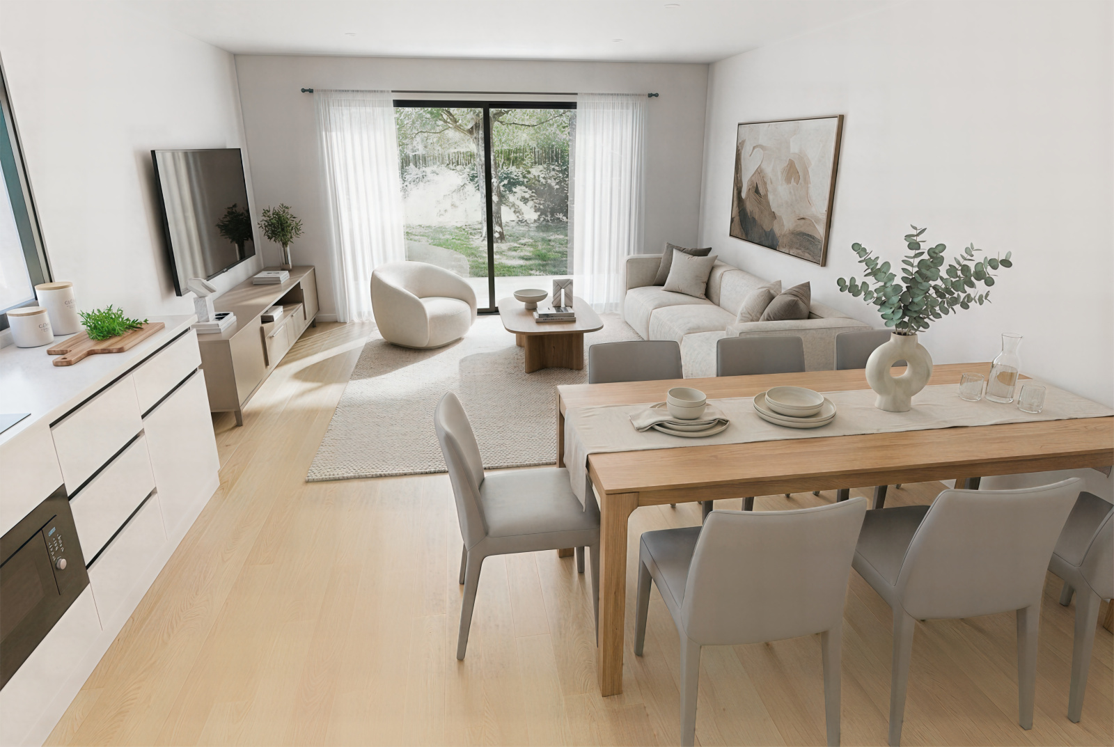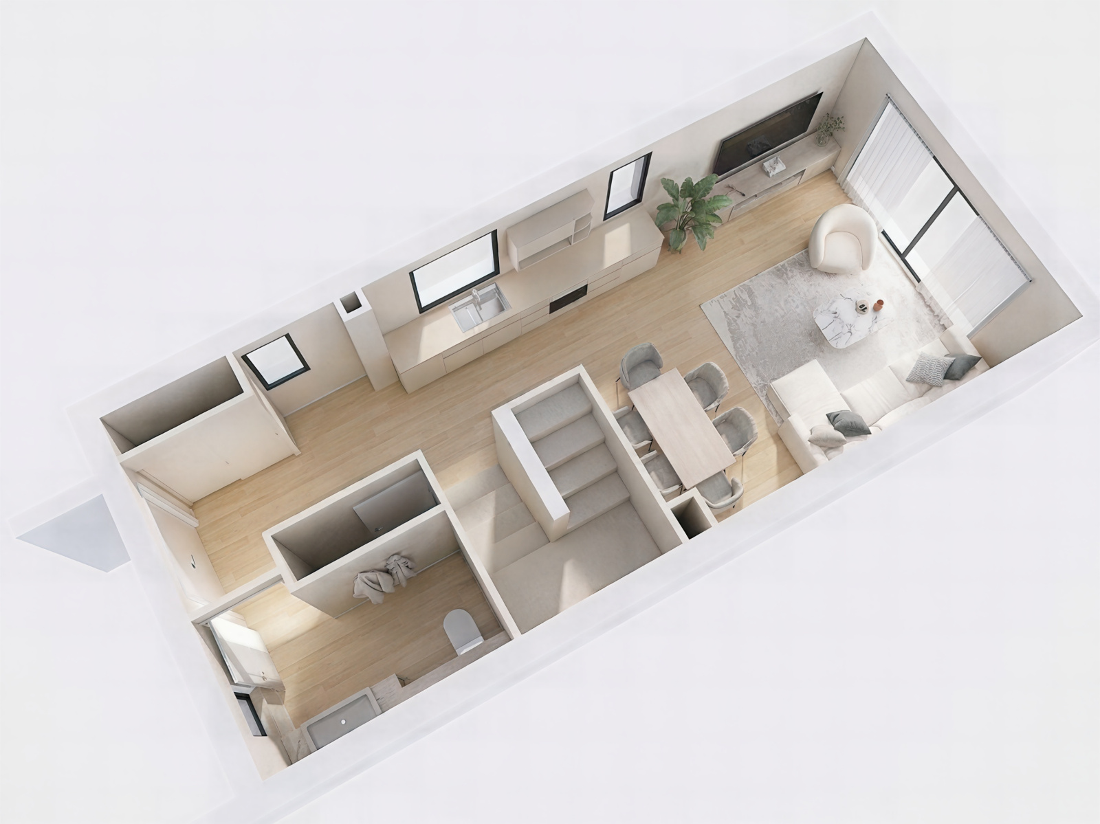Au rez-de-chaussée, vous découvrirez un beau séjour lumineux avec baie vitrée donnant accès à un jardin exposé plein sud, une cuisine ouverte, ainsi qu’une buanderie.