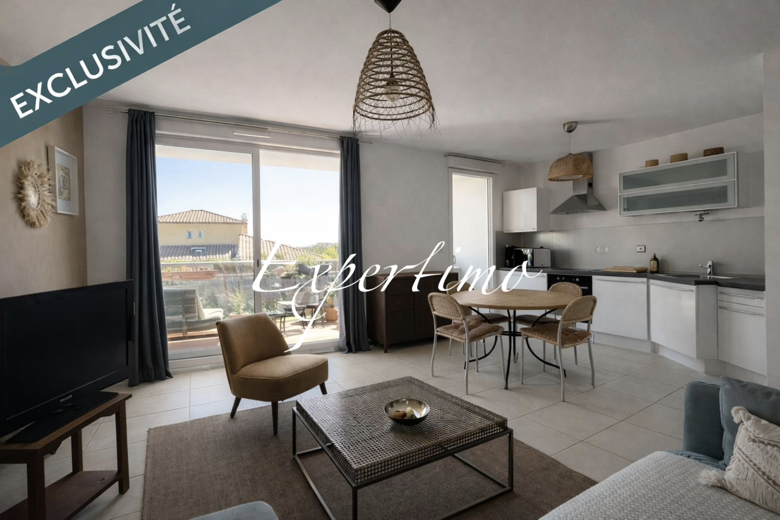 L’espace de vie, harmonieux et convivial, se compose d’un séjour lumineux avec cuisine ouverte entièrement équipée, prolongé par une agréable terrasse couverte de 11m², véritable pièce de vie extérieure à l’abri des regards.