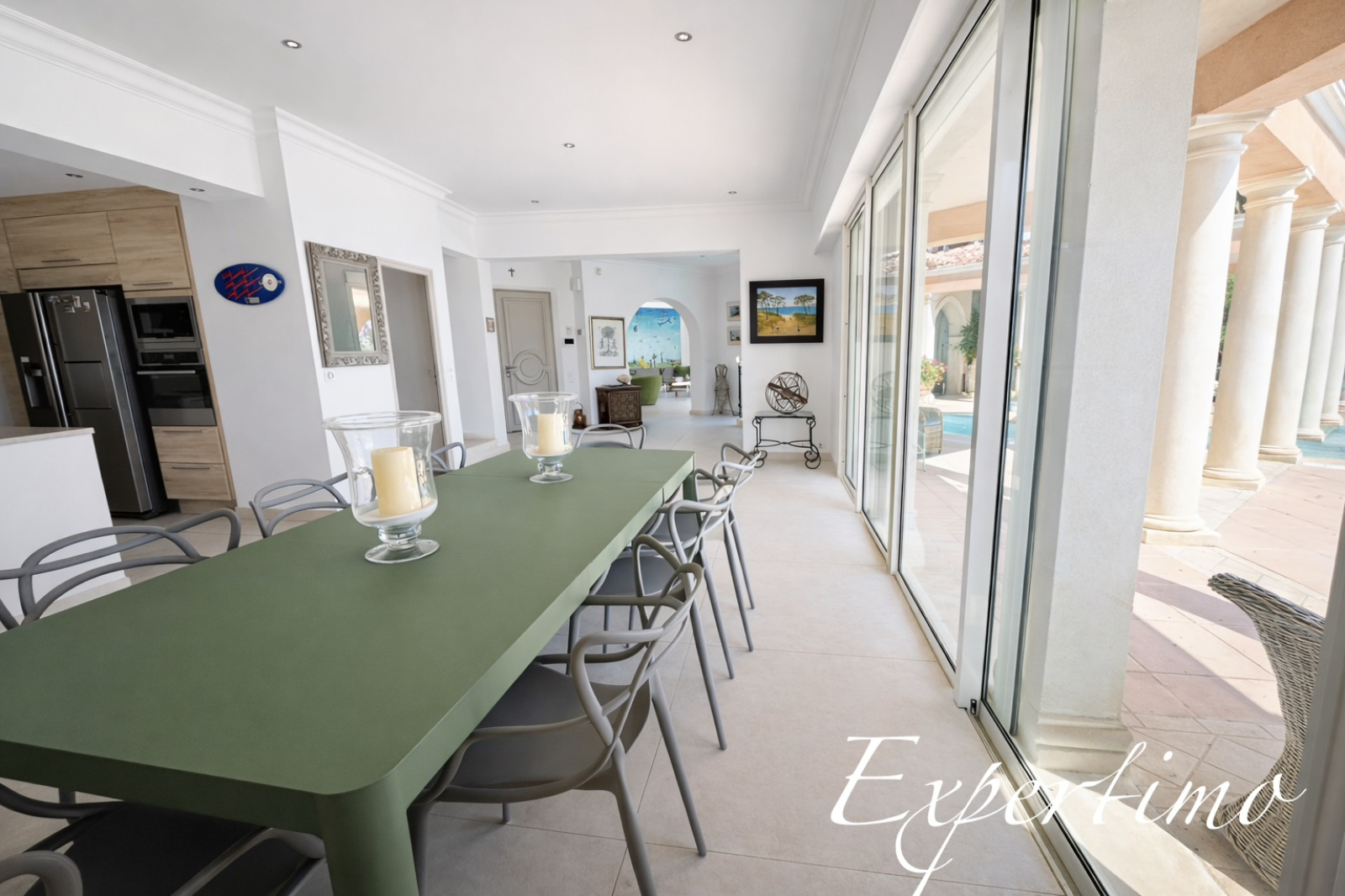 Développant près de 360m² habitables, la villa séduit par son élégance intemporelle, rythmée par des colonnades, des arches et de vastes ouvertures offrant une parfaite continuité entre intérieur et extérieur.