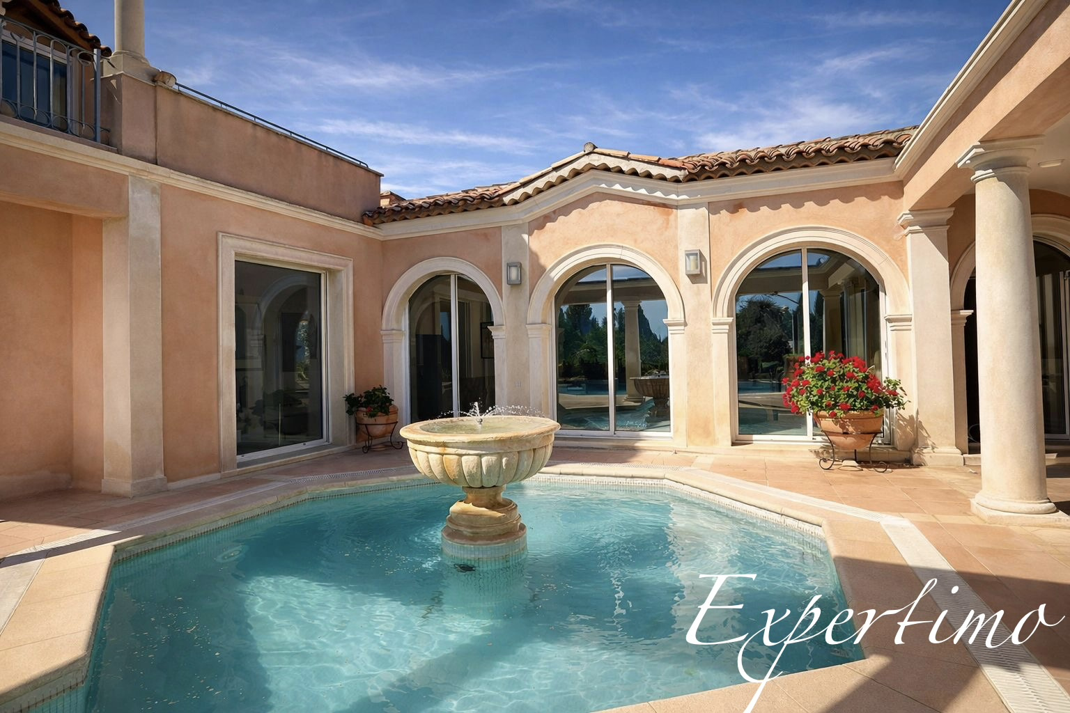 patio central, fontaine, espace piscine, larges terrasses, pool house d'ambiance, invitant à un art de vivre élégant et contemplatif.