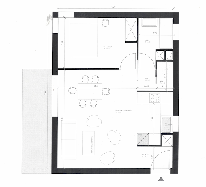 Il se compose d’une agréable pièce de vie avec cuisine ouverte, d’une salle d’eau et d'un WC séparé.