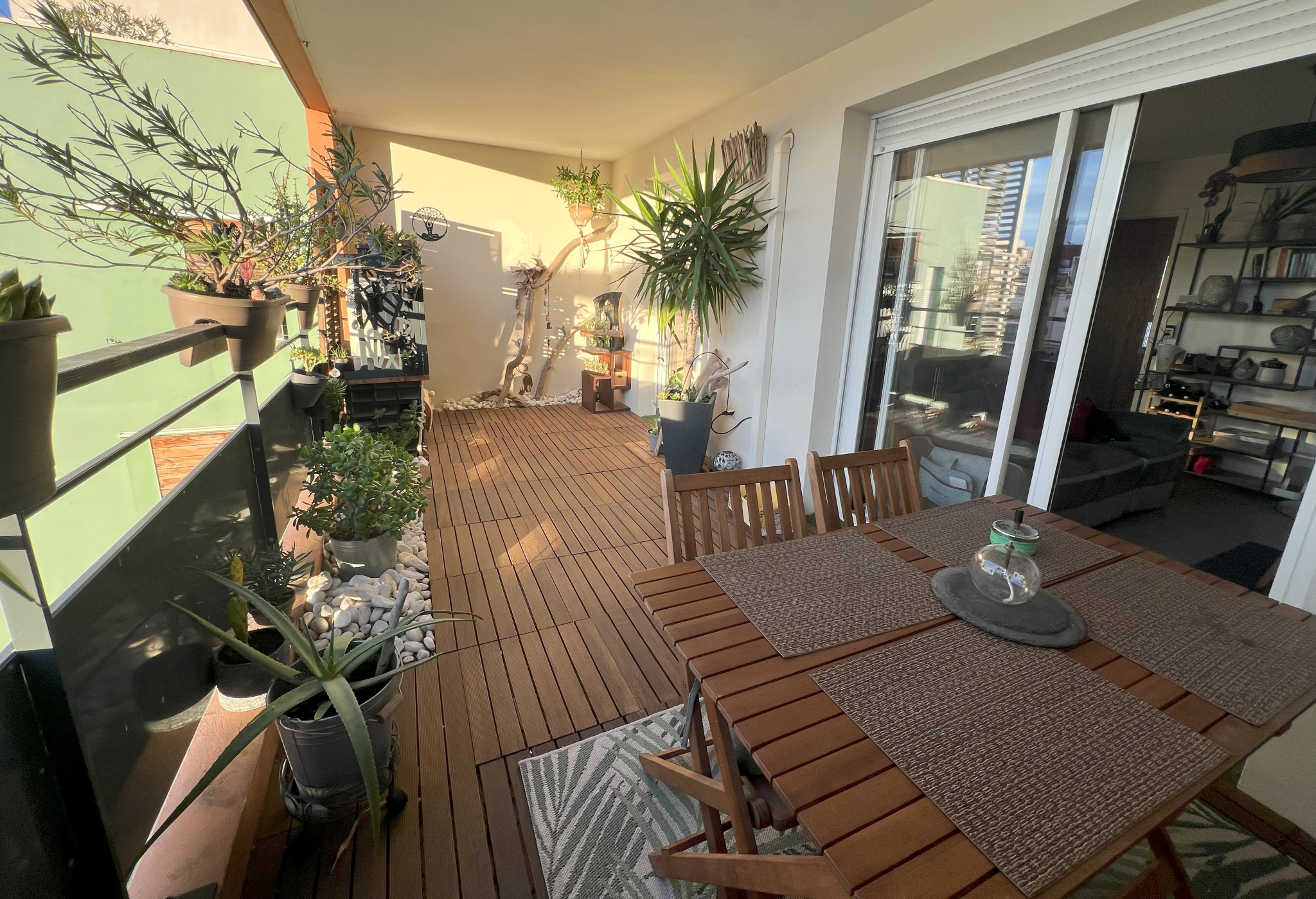 Avec ses 15 m², elle prolonge naturellement l’espace de vie et devient presque une pièce à part entière : petits-déjeuners au soleil, repas entre amis, coin lecture ou télétravail… Un espace extérieur rare, exploitable une grande partie de l’année et qui apporte ce supplément d’âme que recherchent les acquéreurs.