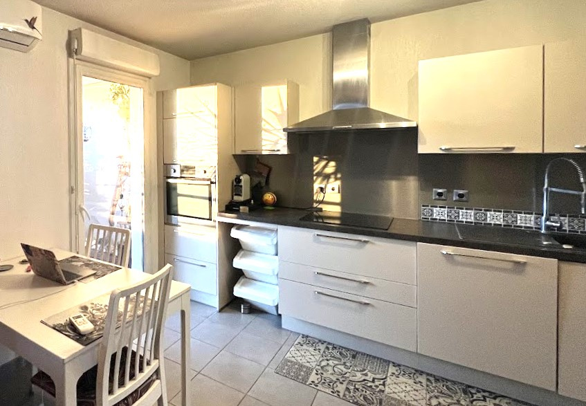 un séjour lumineux ouvert vers l’extérieur, une belle cuisine équipée, deux chambres agréables, le tout dans un environnement calme et résidentiel