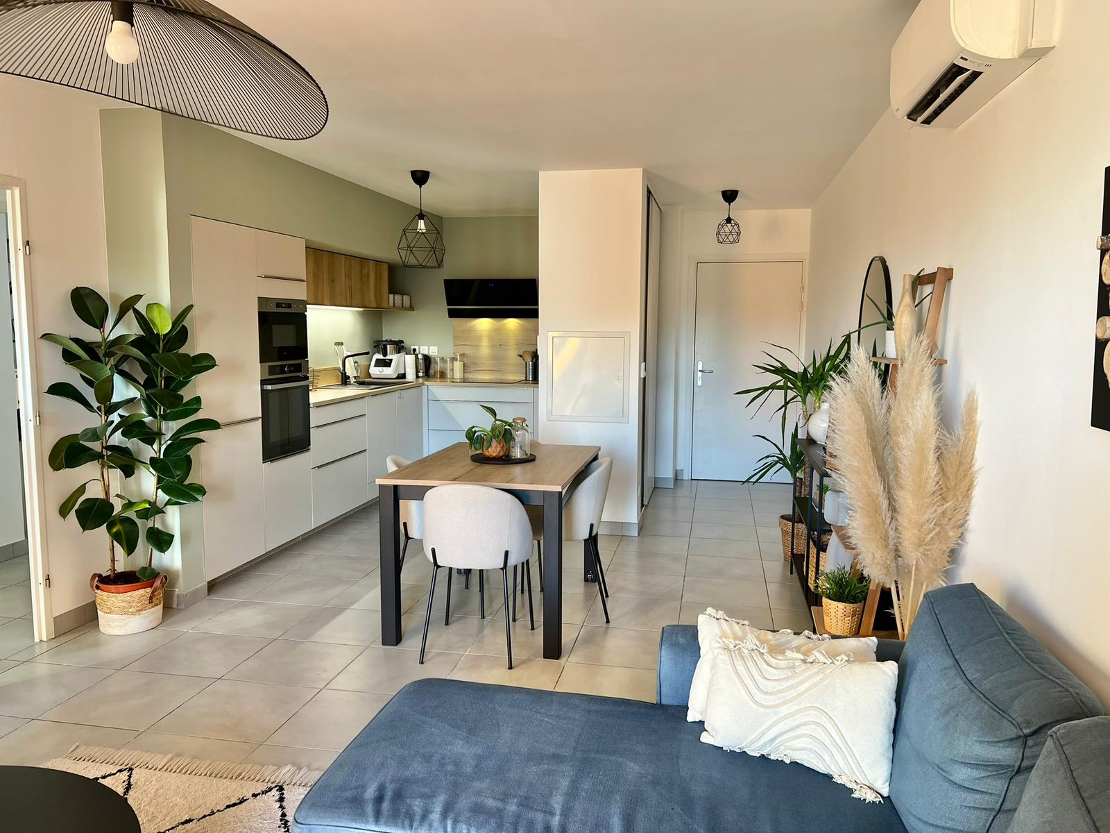 Au 3éme et dernier étage d'une résidence sécurisée, appartement de type T3 de 65m2 avec terrasse sans vis à vis et ensoleillée.L'intérieur est formé d'une entrée avec placard, un espace salon de 32m² avec cuisine equipée, 2 chambres, 1sde avec WC. Des fenêtres à double vitrage et des volets roulants garantissent la tranquillité des occupants. Ascenseur. Climatisation reversible. Faibles charges comprenant l'eau froide et l'eau chaude. Possibilité d'acquerir un garage privatif en sus du prix si souhaité.
