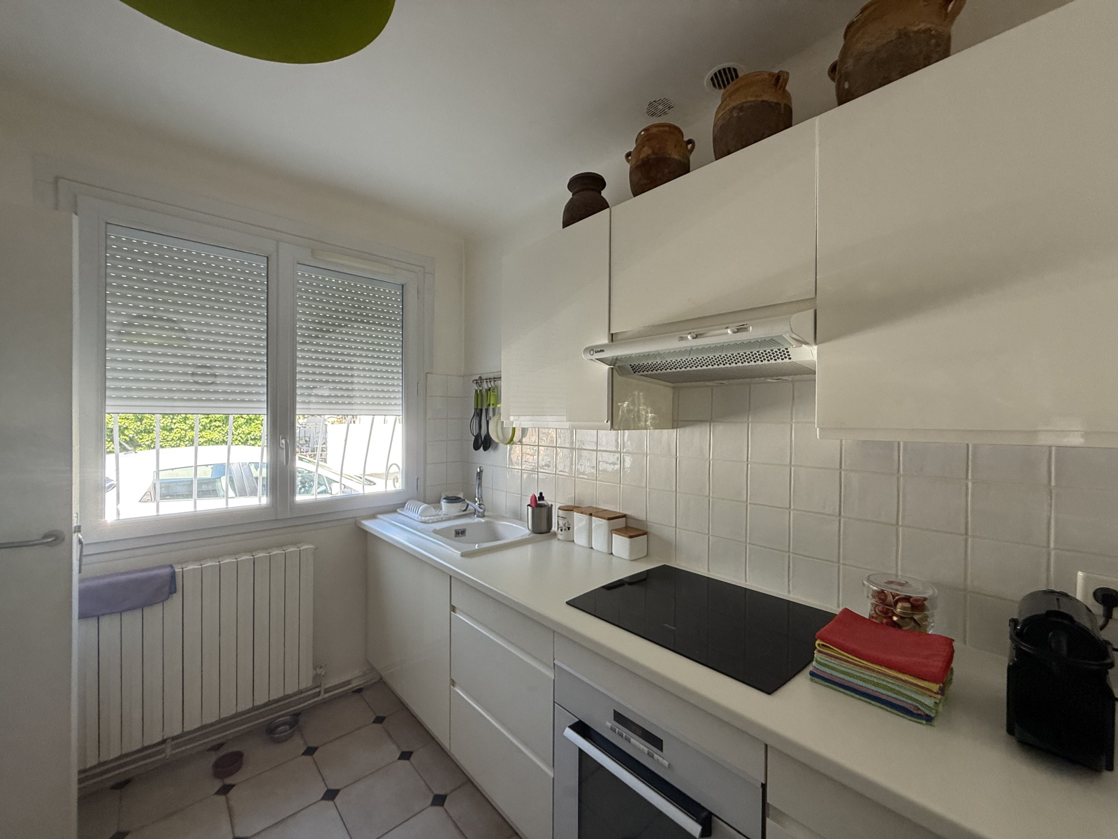 Elle se compose d’une belle pièce de vie traversante, lumineuse, offrant une agréable double exposition rue/jardin. La circulation est fluide grâce à un couloir desservant les différentes pièces.