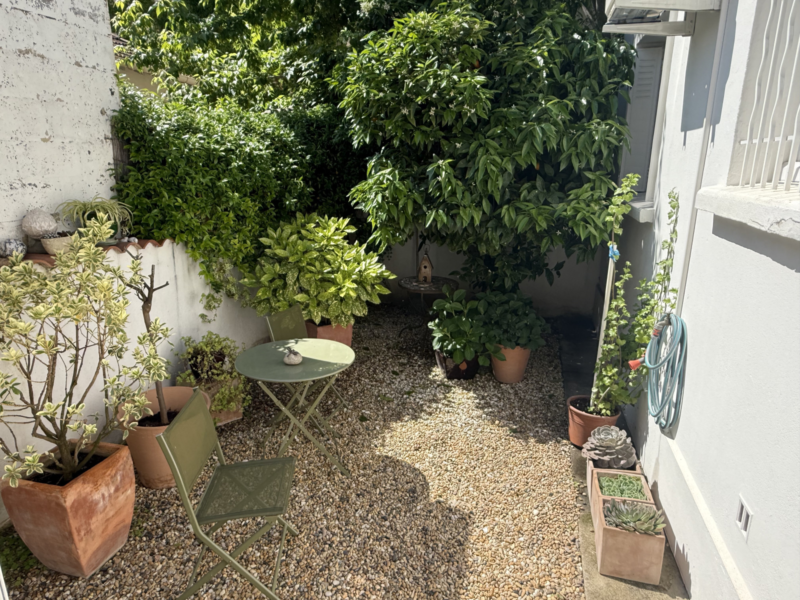 À l’extérieur, vous serez séduit par un ravissant jardin de curé, intime et arboré, véritable havre de paix. Un petit cabanon permet de stocker facilement outils et équipements du quotidien.