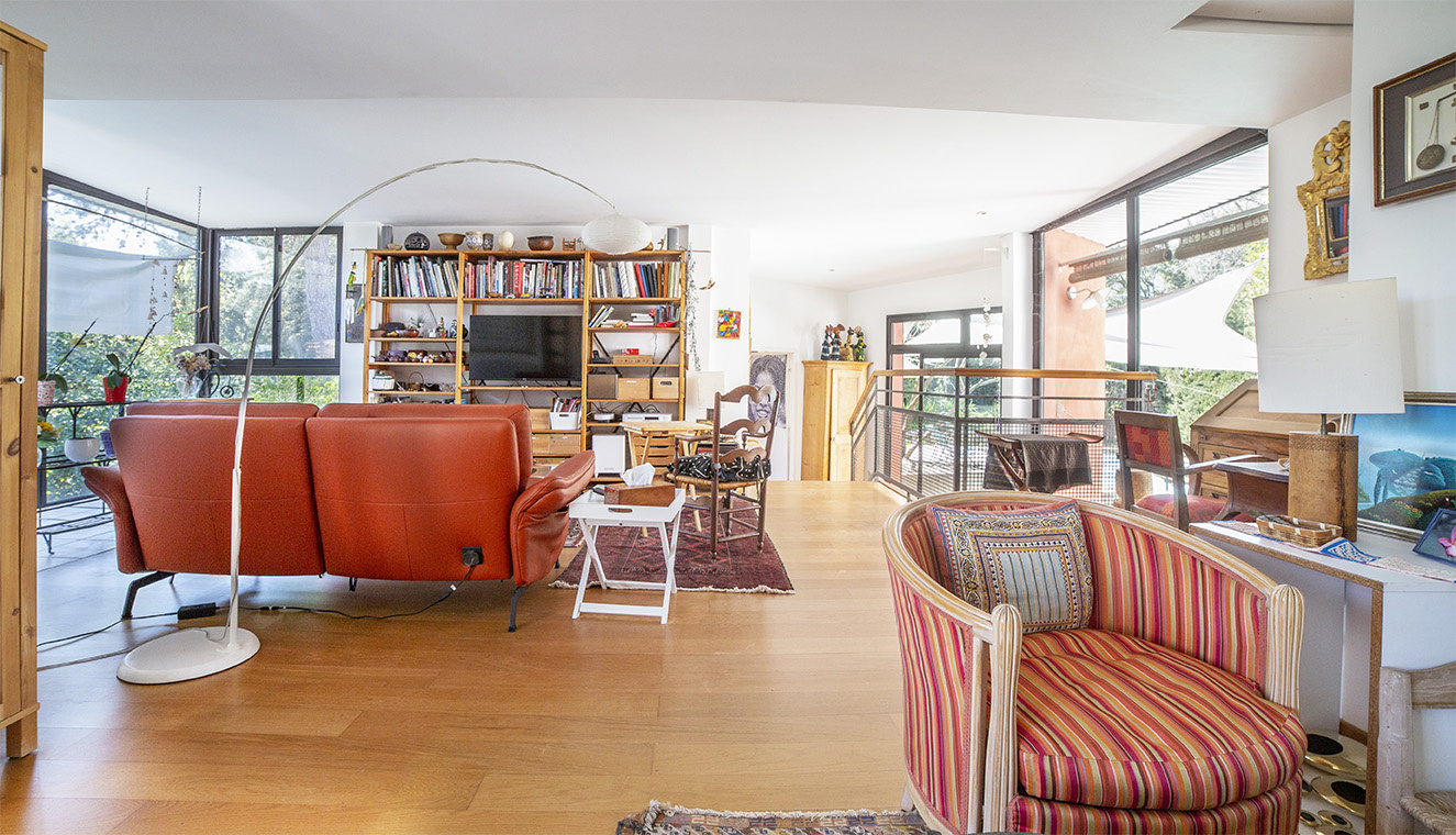 Construite dans les années 60, cette maison bénéficie d’une extension conçue par un architecte en qui apporte une belle continuité entre extérieur et intérieur et lui donne un caractère atypique remarquable.