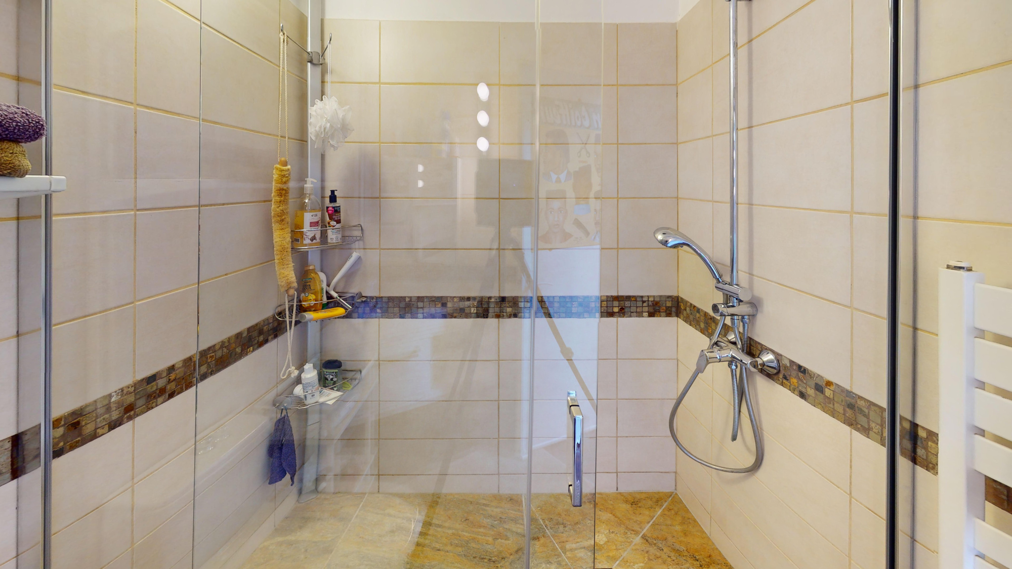 Au rez-de-chaussée, on trouve une entrée, un bureau ou une chambre, une salle de bain, des WC séparés, une grande buanderie et un petit appartement indépendant qui pourrait éventuellement pourrait être transformé pour une activité professionnelle.
