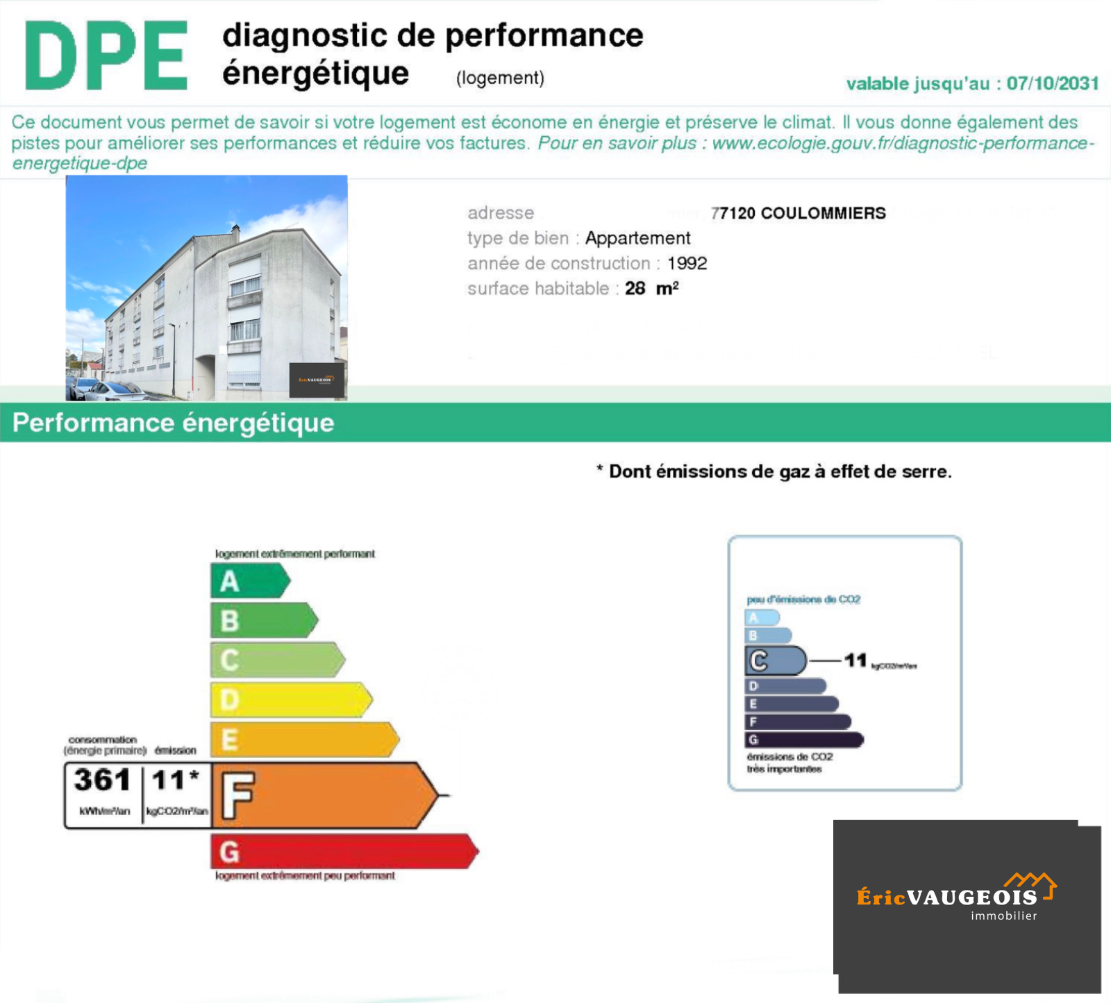 NOUVEAUTÉ en EXCLUSIVITÉ de l'agence Eric VAUGEOIS immobilier à Coulommiers au milieu de la rue piétonne. Eric VAUGEOIS vous propose cet appartement de 28 m² environ dans un immeuble de 1992 tout proche du centre vile de Coulommiers. Il comprend : Entrée avec grand placard - Cuisine américaine - Séjour lumineux - Salle de bains avec WC. Une place de parking privée. Vendu loué avec locataire sérieux depuis 28 ans. Taxe foncière de 550 E/an. Fenêtres double vitrage. Ballon d'eau chaude électrique. Chauffage indépendant par convecteurs électriques. A visiter sans tarder ! -------