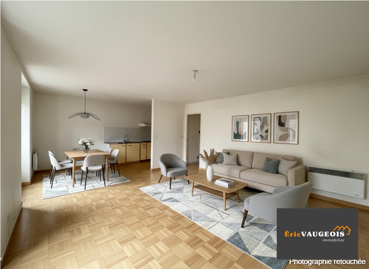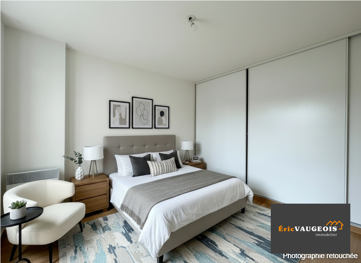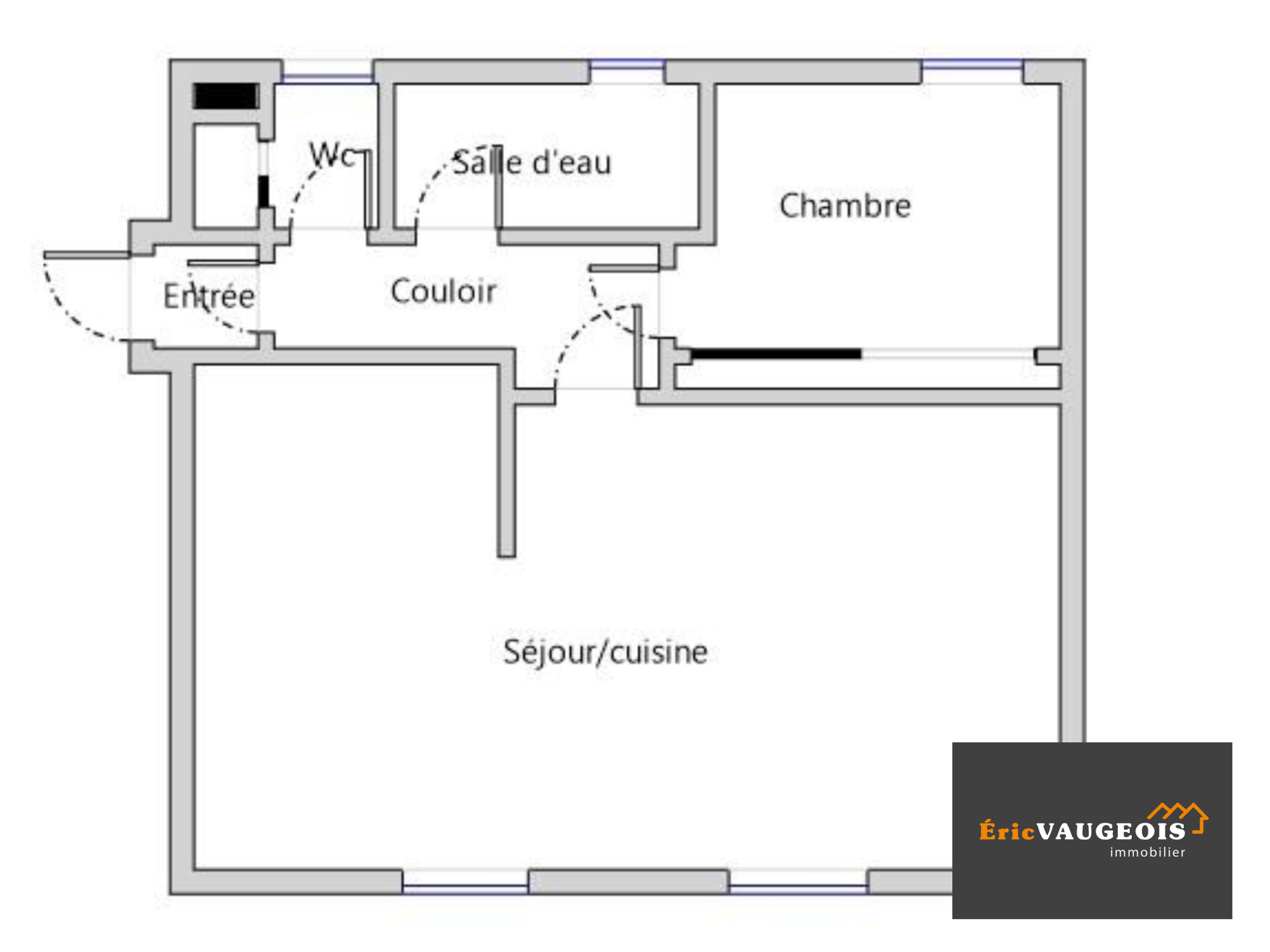 Il se compose : Entrée - Dégagement - Séjour lumineux de 30 m² environ - Cuisine ouverte aménagée et équipée - Chambre avec grand placard - Salle d’eau - WC indépendant avec grand placard.
