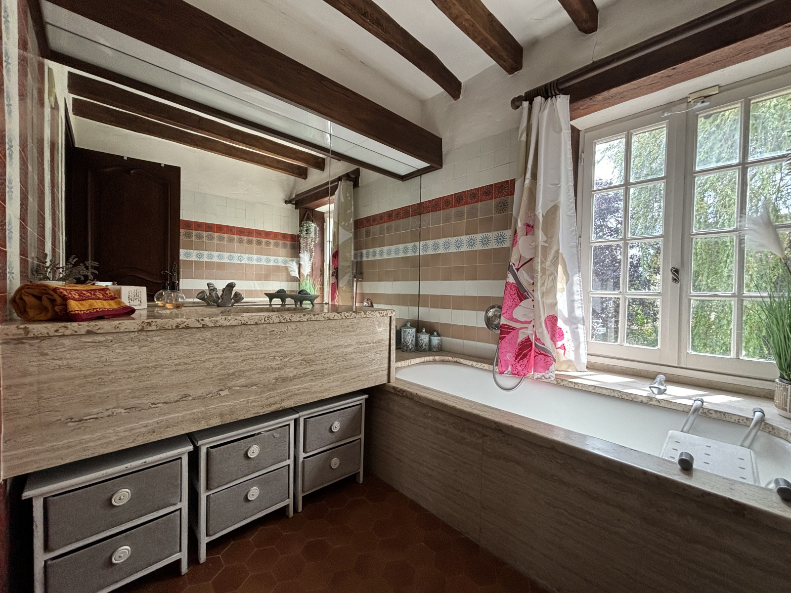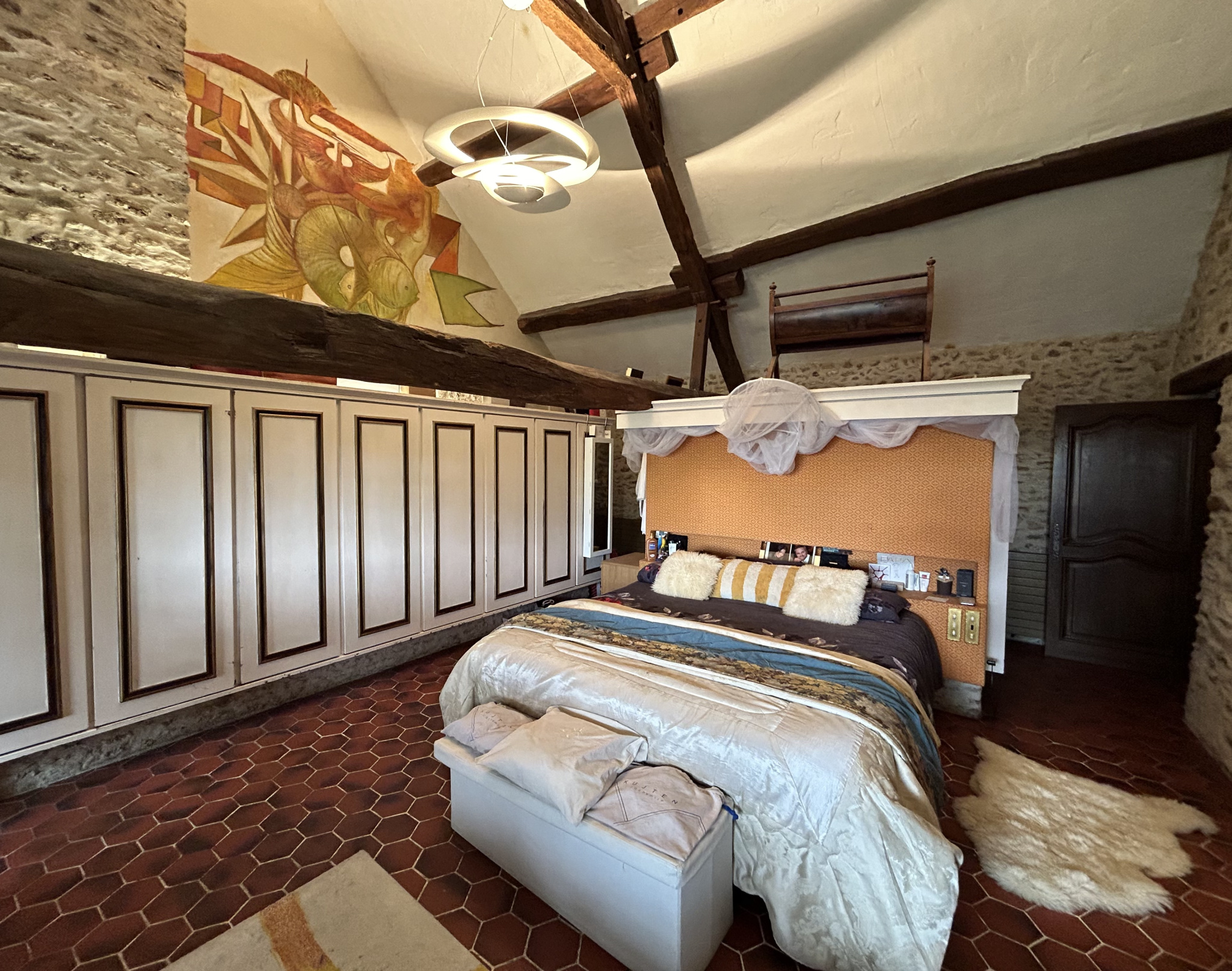 A l'étage palier de 25m² donnant sur une chambre de 14m² avec mezzanine, une chambre de 40m² avec salle d'eau, une chambre de 32m² avec salle d'eau et wc, une suite parentale avec dressing, salle de bains, wc de plus de 90m² donnant sur une terrasse de 8m² avec une vue bucolique. Au grenier vous trouverez une salle cinéma et une salle d'eau.