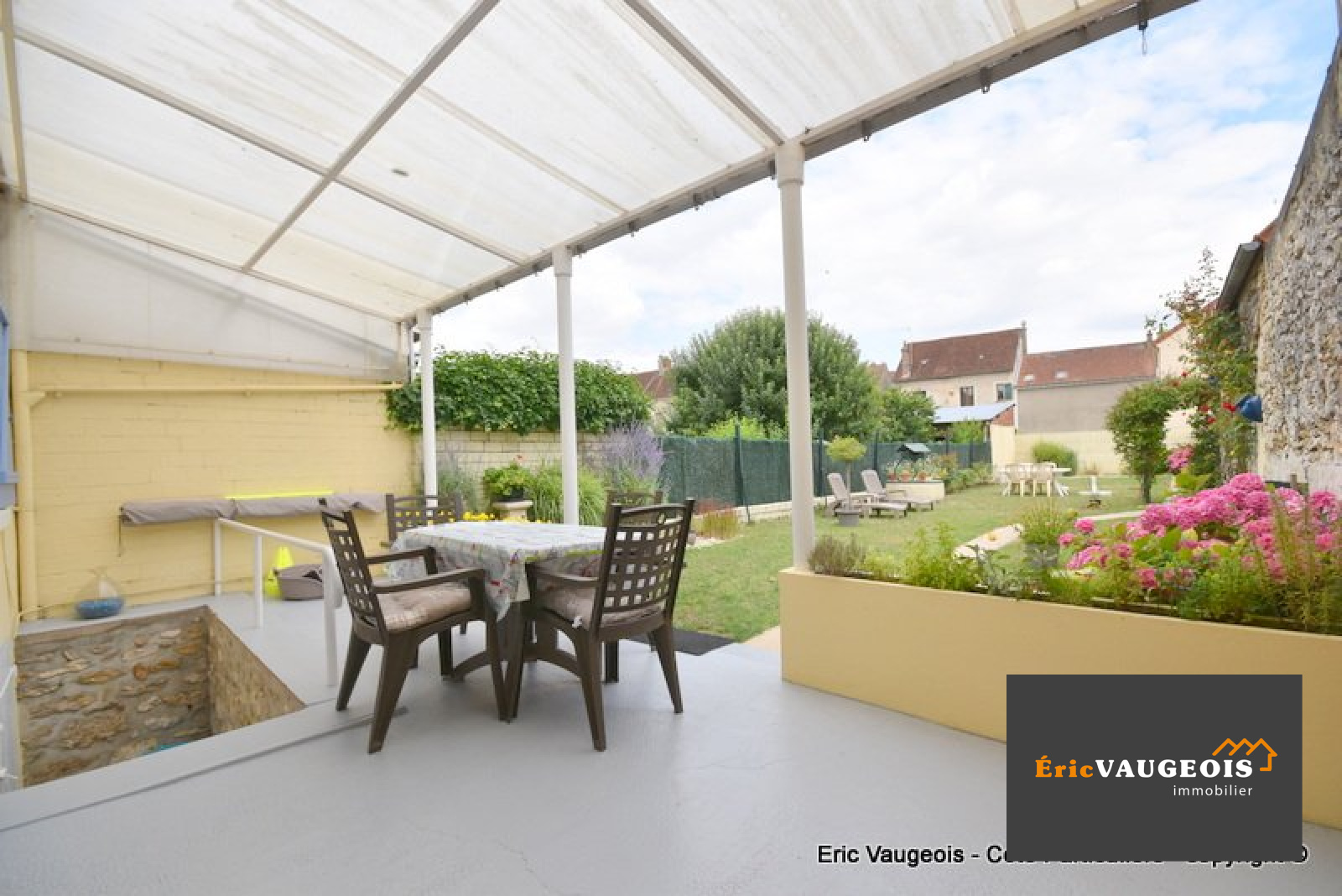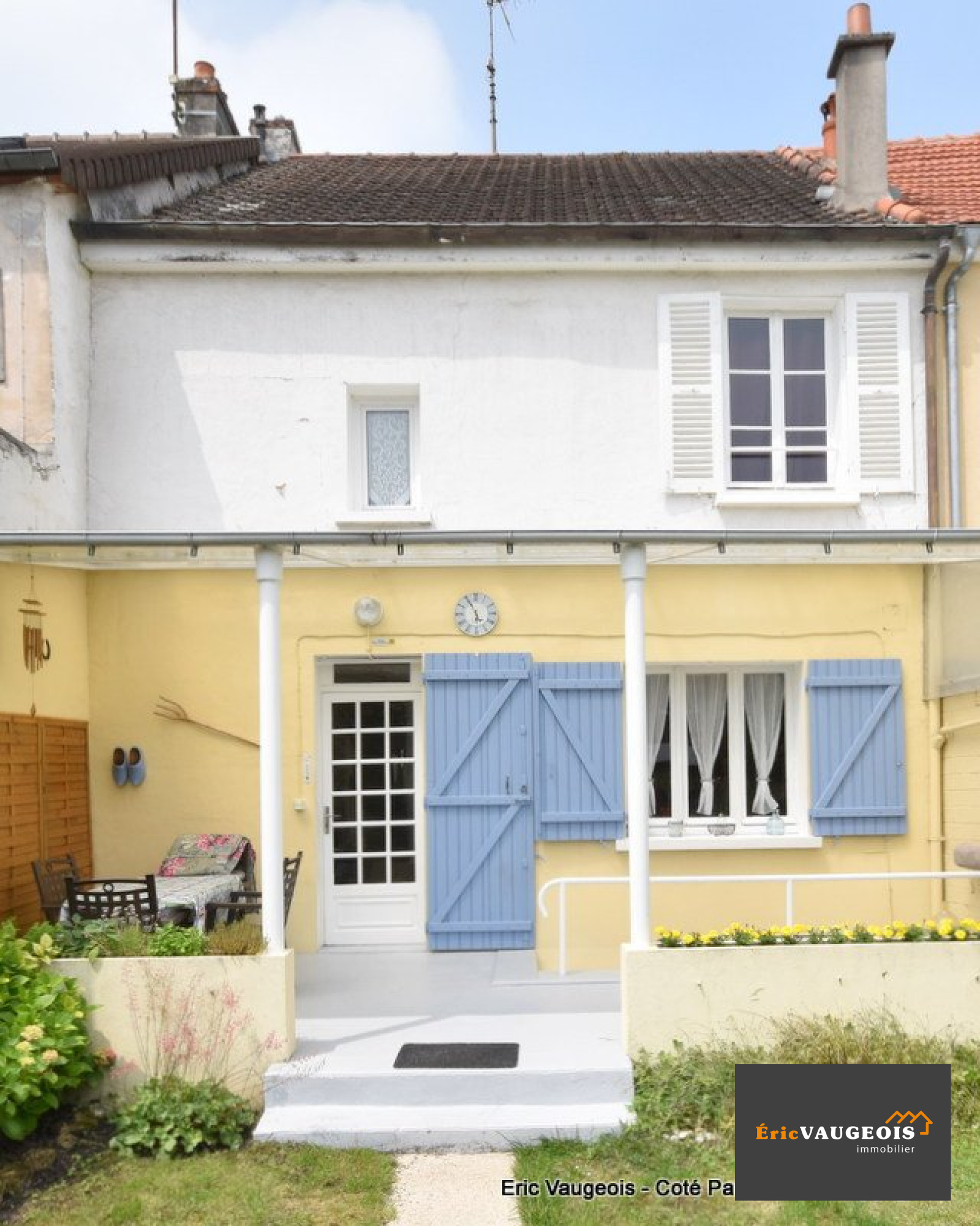 EXCLUSIVITÉ de l'agence Eric VAUGEOIS immobilier à Coulommiers au milieu de la rue piètonne, Éric VAUGEOIS vous propose (à 10 minutes de la gare de Coulommiers) au centre ville de Jouy sur Morin 77320 cette jolie maison de ville d'environ 80 m². Elle se compose : Entrée - Séjour - Cuisine aménagée et équipée - Grande buanderie avec coin chaufferie et possibilité de mettre un WC facilement. A l'étage : Dégagement - WC séparée - Salle de bains + douche Italienne et meuble vasque - 2 Chambres. Combles aménageables d'environ 36 m². Cave en sous-sol. Terrasse équipée d'un abris de 20 m² donnant sur un terrain de près de 300 m² clos, au calme et joliement fleuri. Chauffage gaz de ville avec production d'eau chaude. Raccordé au tout-à -l'égout conforme. Taxe foncière seulement 548 E/an. En face, vous disposez d'un grand garage de 32 m² pouvant servir d'atelier pour artisans (compteur EDF indépendant) + grand grenier. Maison en excellente état, vous aurez juste à poser vos valises. Ecoles maternelles et primaires sur place, arrêt bus pour collèges et lycées à 100 m. Commerces à deux pas : Boulangerie-Patisserie, Pharmacie, Café-Tabac, Poste, Coiffeur, Alimentaire et médecin.