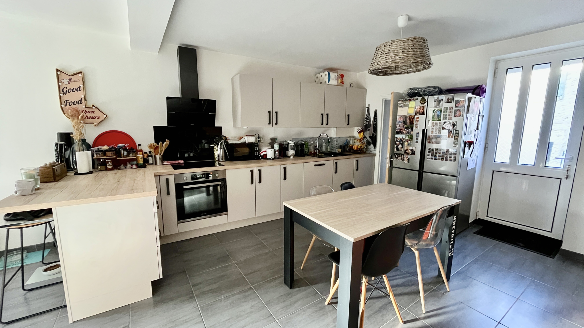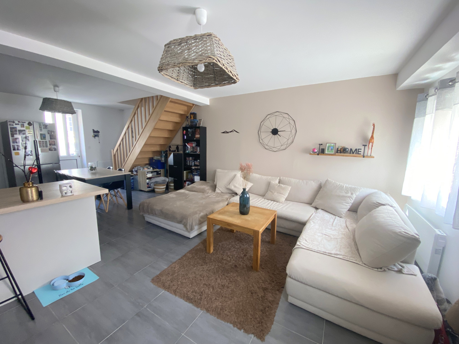 Elle comprend au rez de chaussée un séjour ouvert sur cuisine aménagée et équipée, buanderie avec wc.