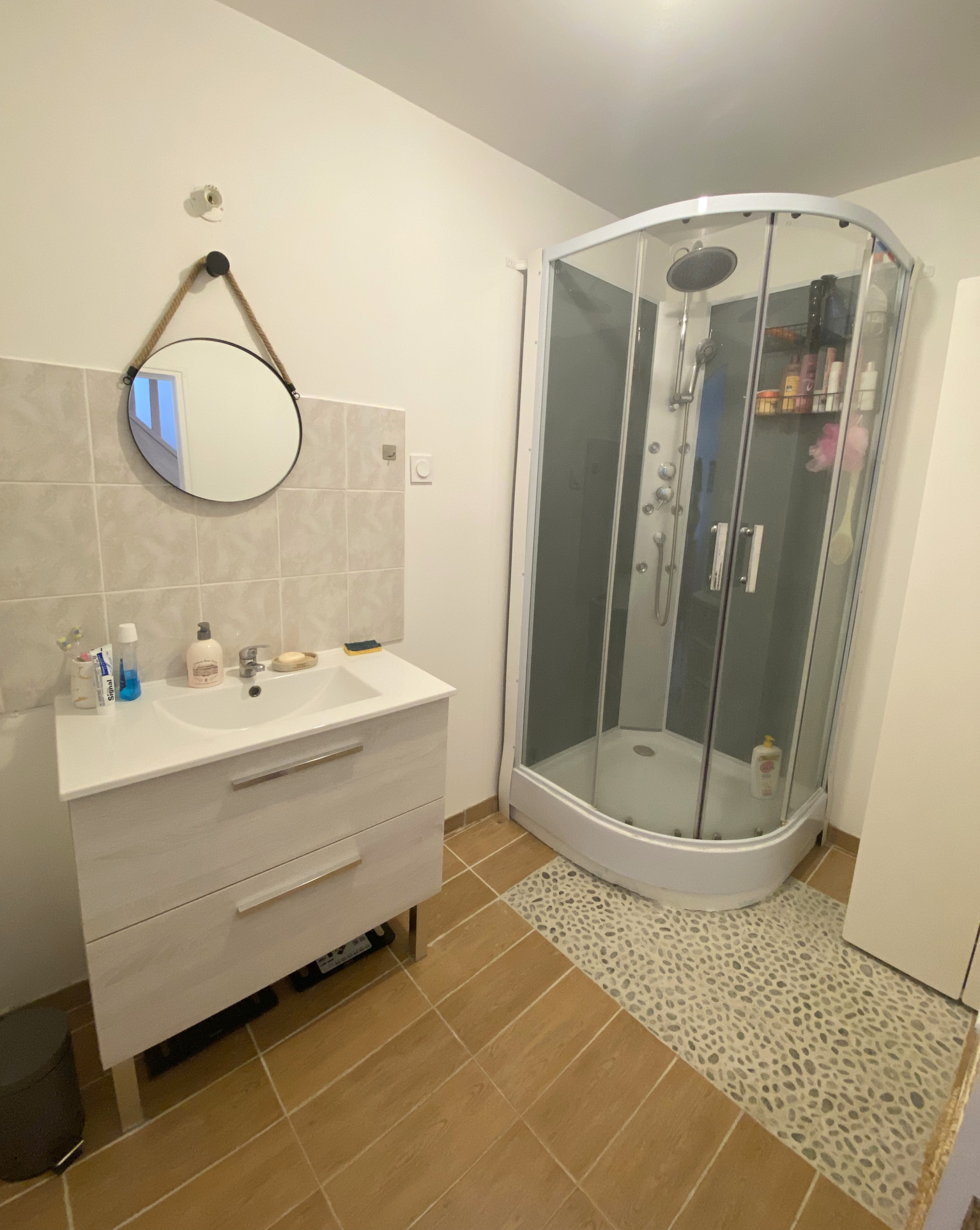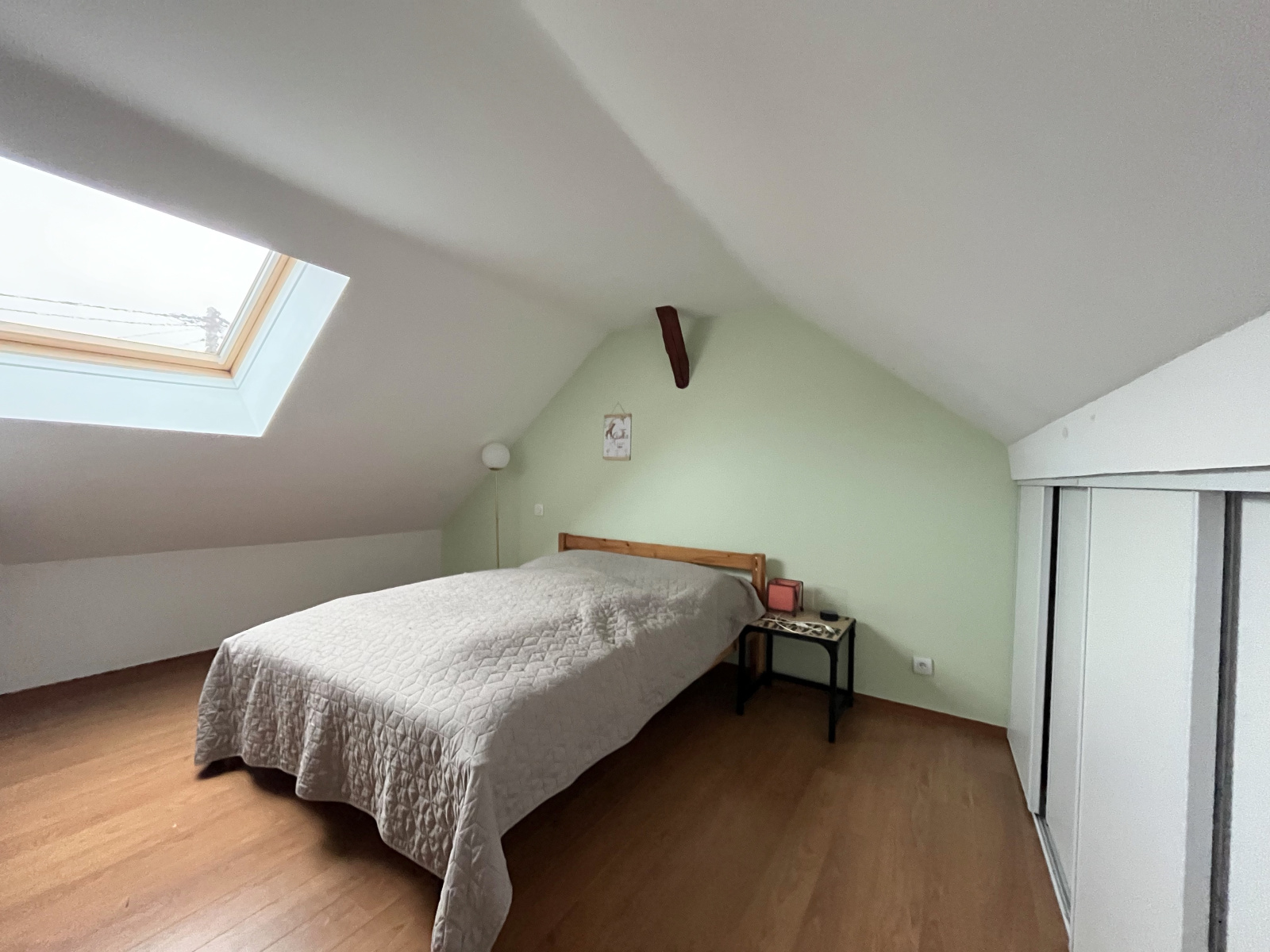 A l'étage : grand palier desservant une chambre spacieuse, une salle d'eau et un wc.