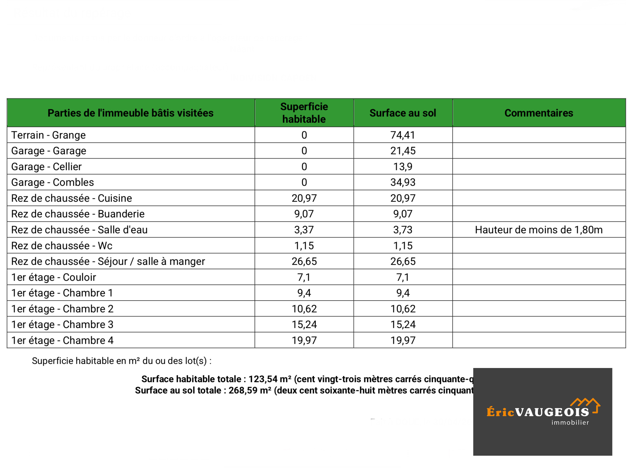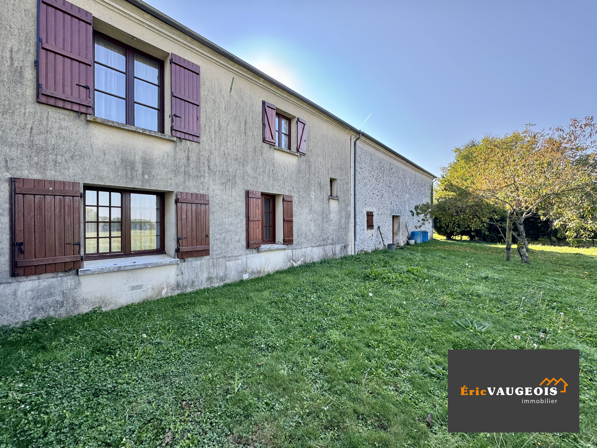 NOUVEAU PRIX ! Eric VAUGEOIS vous propose sur la commune de Doue 77510 cette authentique maison briarde de 124 m² environ avec un grand potentiel et une surface au sol totale : 269 m² environ . Elle se compose : au RDC : Entrée sur grande Cuisine aménagée et équipée - Séjour lumineux double exposition est/ouest. Buanderie. Salle d'eau. WC séparé. A l'étage : Dégagement central - 4 Grandes Chambres. Sous combles : Grand gernier aménageable avec accès par escalier. Équipements : Fenêtres double vitrage. Chauffage par convecteurs électriques. Cheminée avec insert. Production d'eau chaude par ballon électrique. Internet par fibre très haut débit. Extérieur : Grande Terrasse. Joli jardin fleuri et arboré sur terrain de plus de 2100 m² environ plat, clos, au calme et sans vis-à -vis. Puits. Garage de 22m² environ + Cave et Grenier à l'étage. Grange avec une surface au sol de 75 m² environ. Taxe foncière de 963 E/an. A visiter sans tarder !