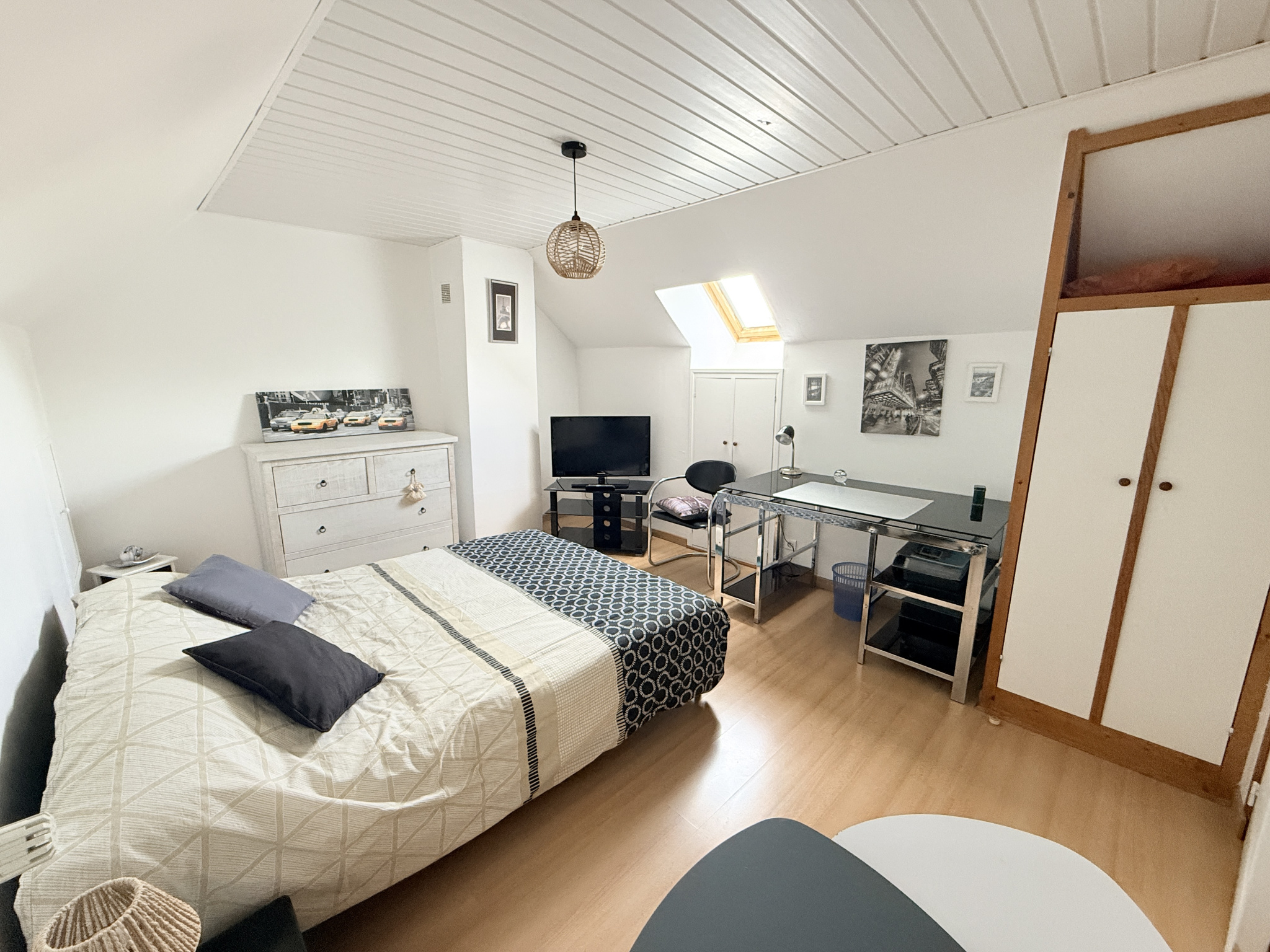 A l'étage : la pièce palière pouvant faire office de bureau dessert 2 chambres spacieuses.