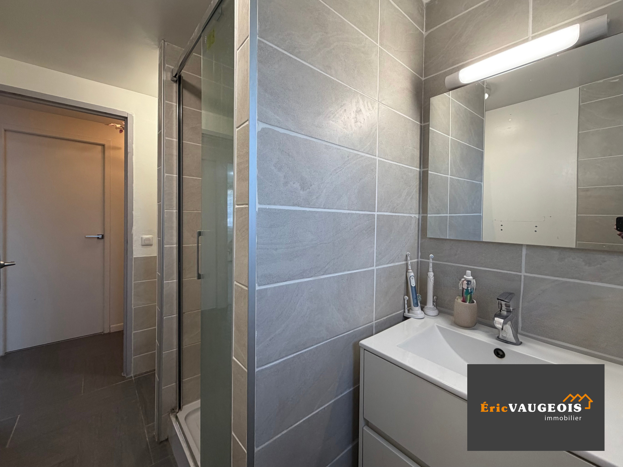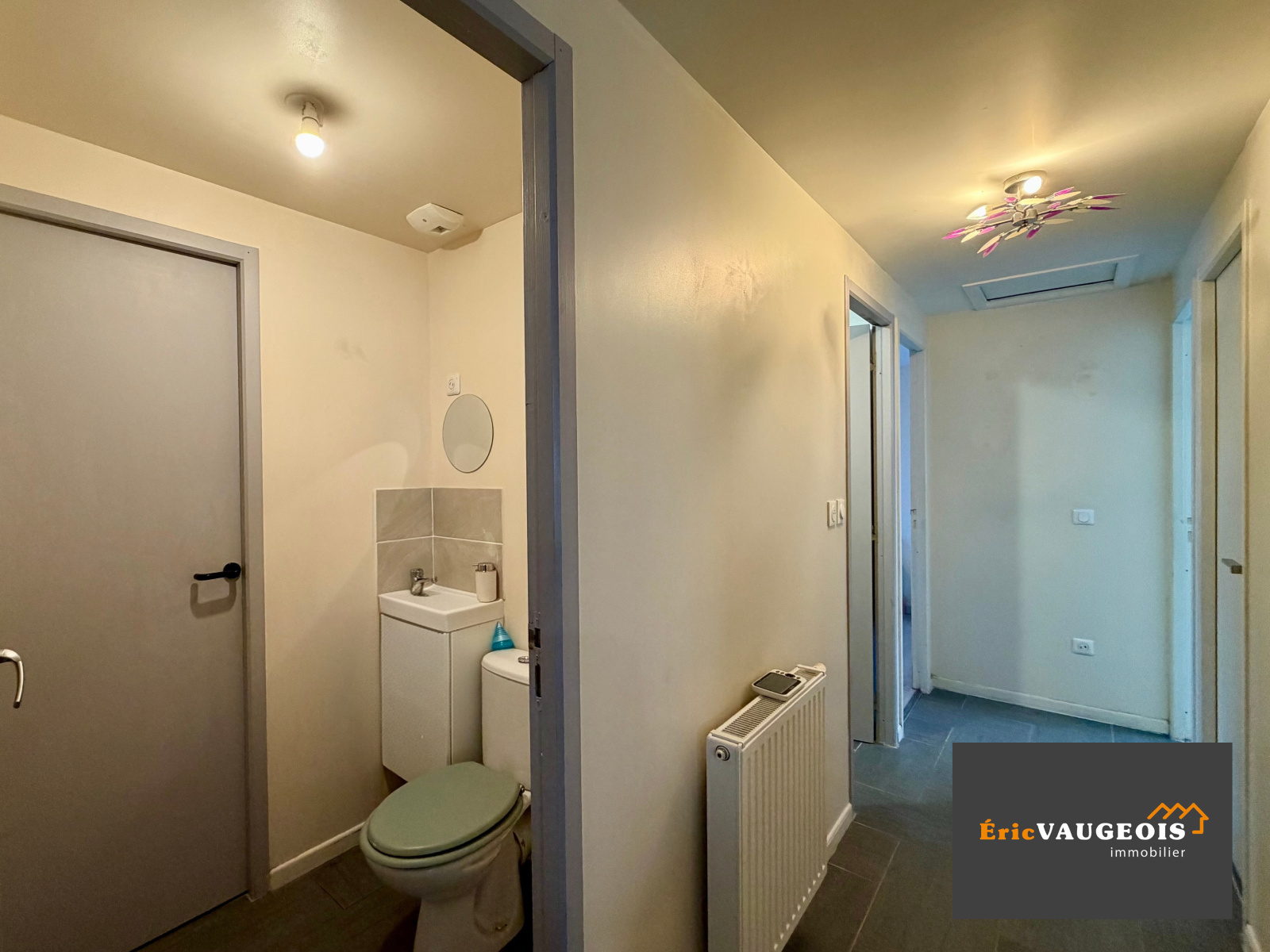 Elle se compose ; Entrée sur Séjour lumineux, cuisine aménagée ouverte, Dégagement, WC séparé, Buanderie, 3 belles chambres avec placard, salle de bains avec douche et baignoire, WC et meuble vasque.