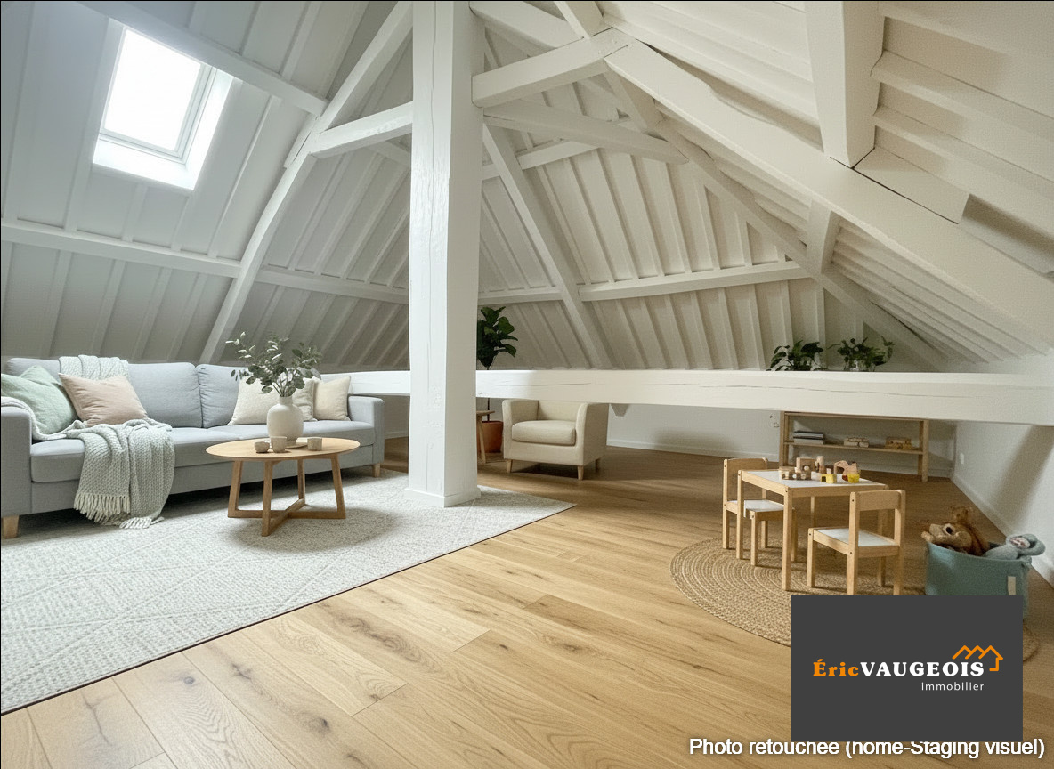 À l’étage : Dégagement, 2 belles chambres, WC et salle d’eau, Grenier aménageable (possibilité de chambres supplémentaires)