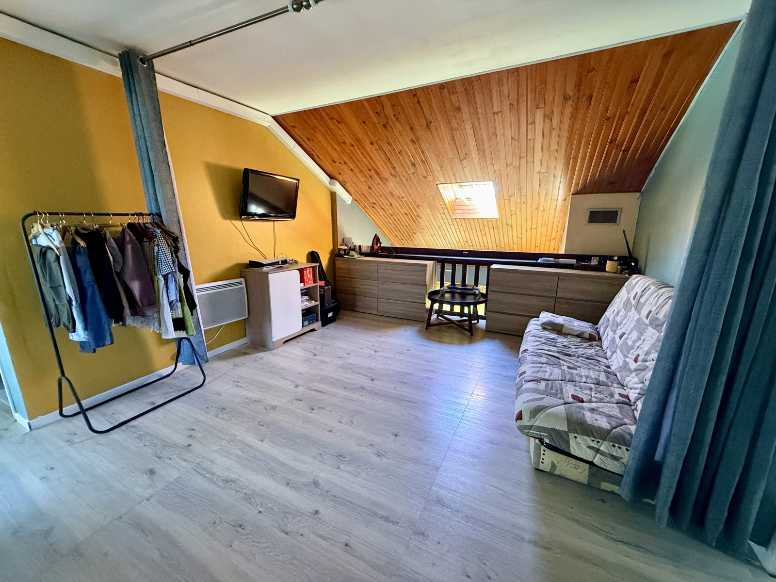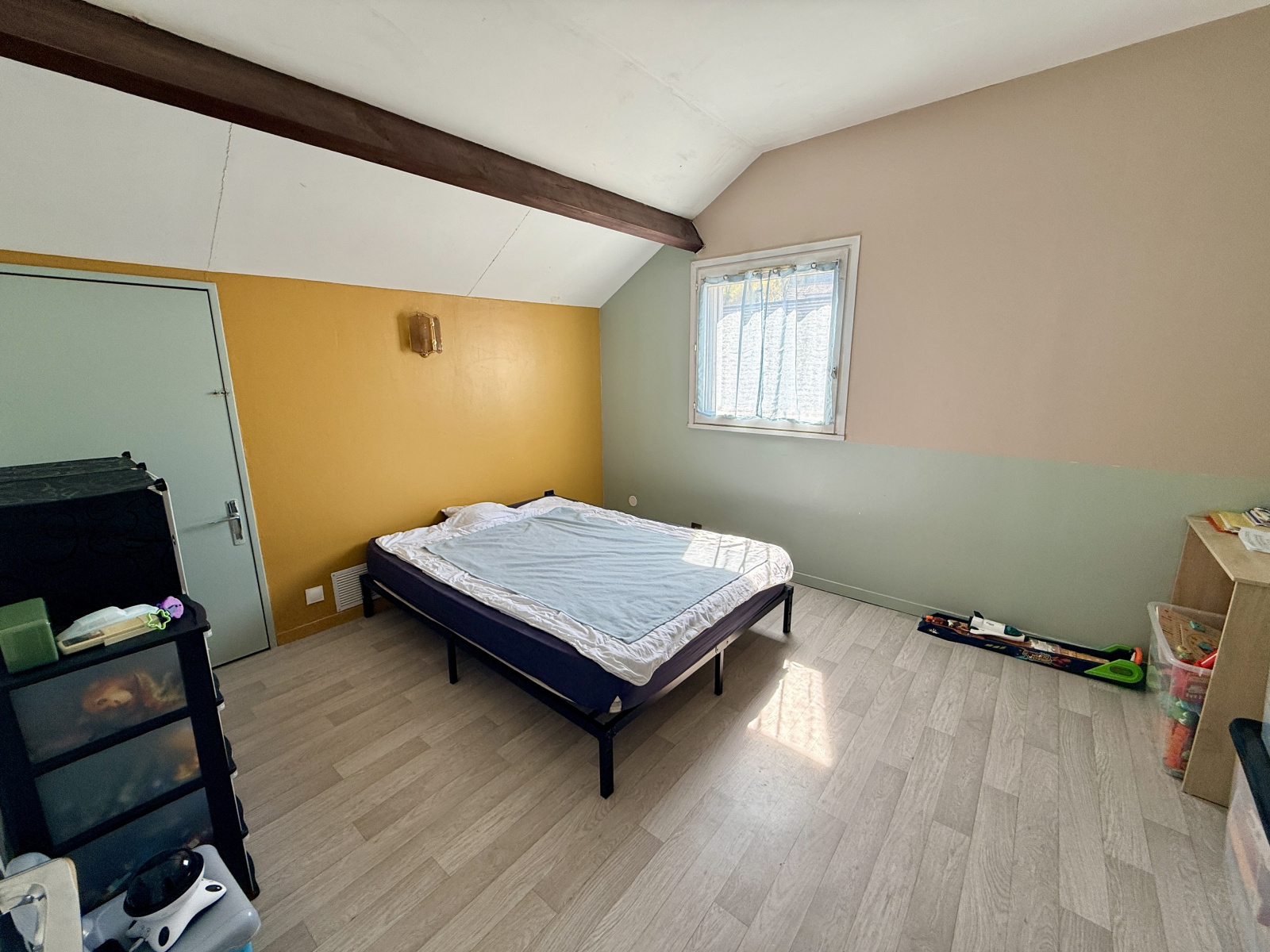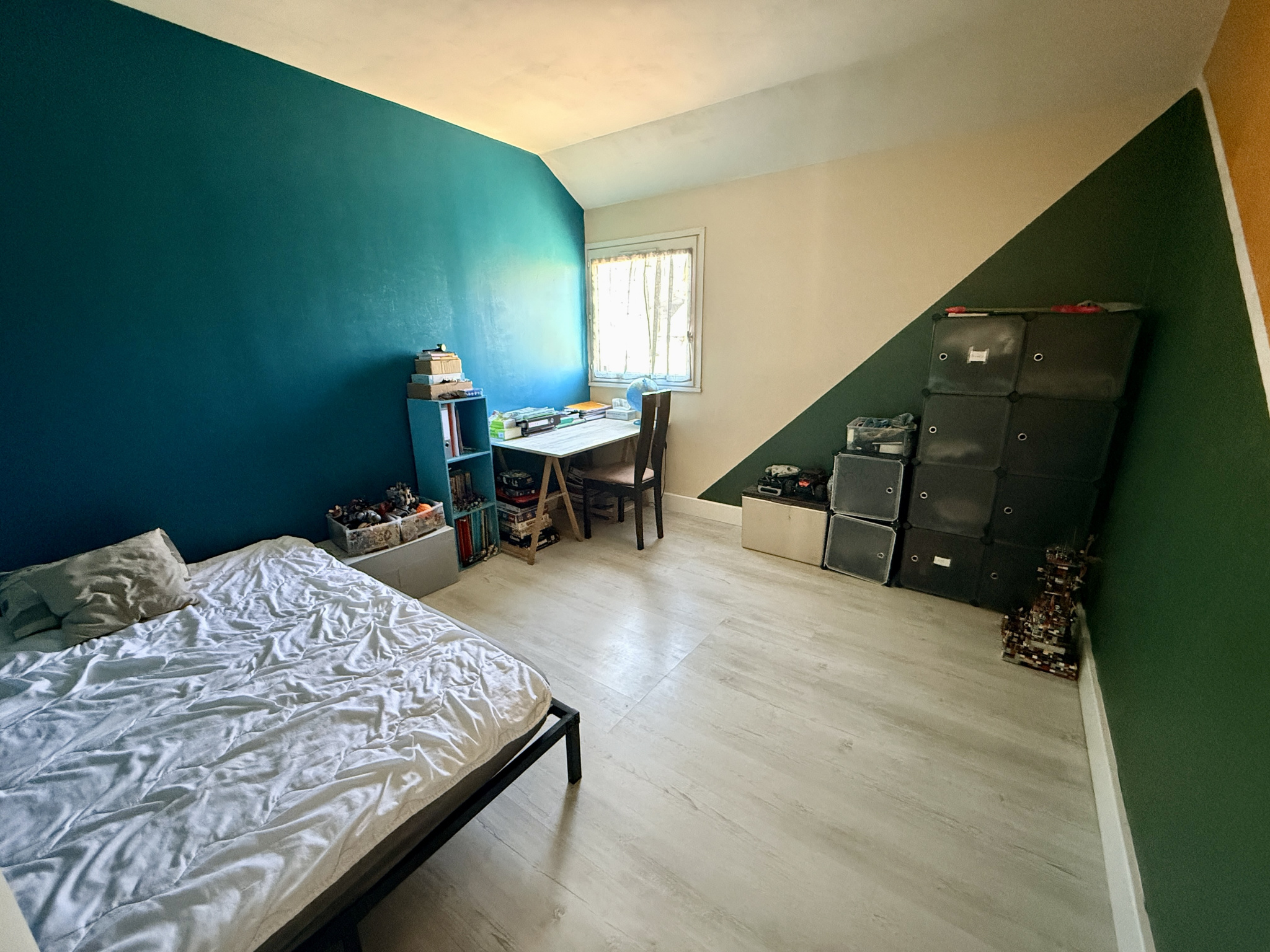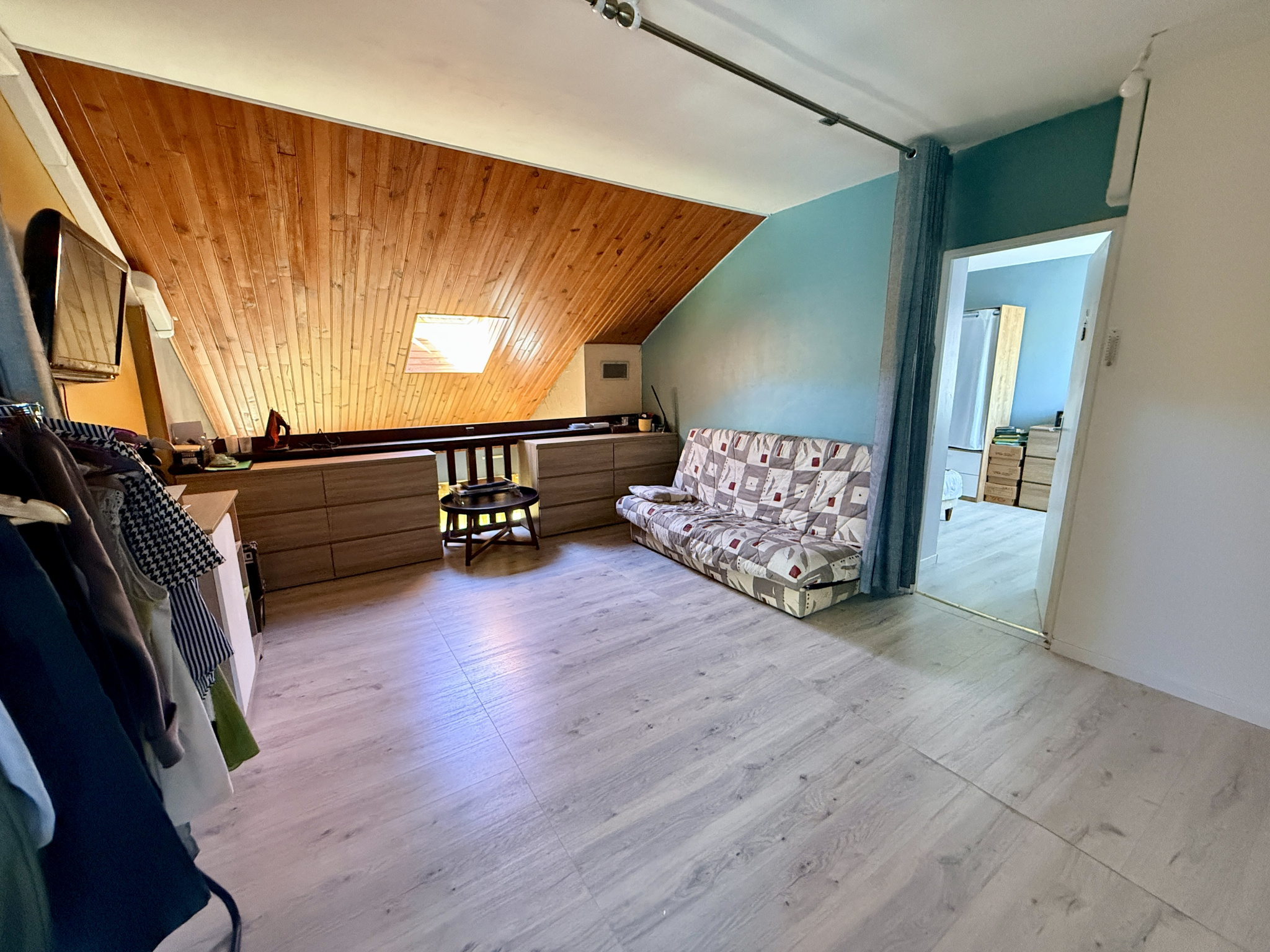 À l’étage, une pièce palière pouvant faire office de salle de jeux distribue trois belles chambres, une salle d’eau ainsi qu’un second WC, offrant un agencement pratique pour toute la famille.