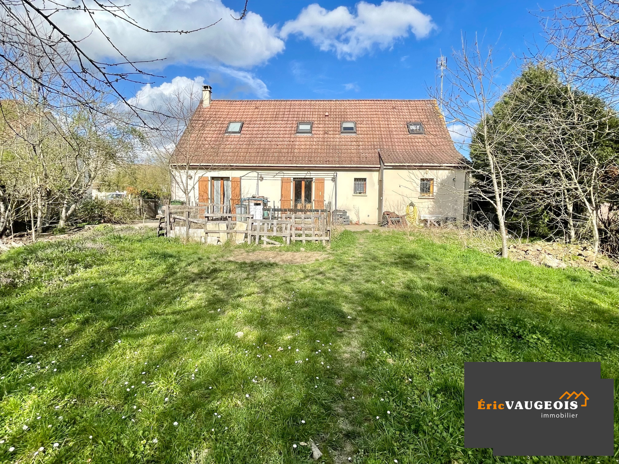 EXCLUSIVITÉ de l'agence Eric VAUGEOIS immobilier à Coulommiers au milieu de la rue piétonne. Eric VAUGEOIS vous propose à moins de 10 minutes de Coulommiers, dans un village très calme, cette maison individuelle édifiée en 2001 de 125 m² environ. Elle se compose : Entrée sur Grand séjour lumineux - Cusine aménagée et équipée ouverte - WC séparé - Chambre parentale avec sa salle de bains. Étage : Palier - 3 Chambres - Bureau - Salle de bains - WC séparé. Vous disposerez d'un Garage et d'une Chaufferie. Equipements : Chauffage centrale par chaudière gaz de ville avec production d'eau chaude + Poêle à granulés mécanique (fonctionne sans courant). Raccordé au tout-à -l'égout conforme. Fenêtres double vitrage. Internet très haut débit par FIBRE (raccordable). Grande terrasse de 60 m² environ. Grand terrain de plus de 2400 m² clos, plat, arboré, au calme et sans vis-à -vis. Taxe foncière de 1093 E/an. A visiter sans tarder ! (Toutes les photos intérieures uniquement sur demande téléphonique, prévoir rafraichissement) ------------------------------------------------------------