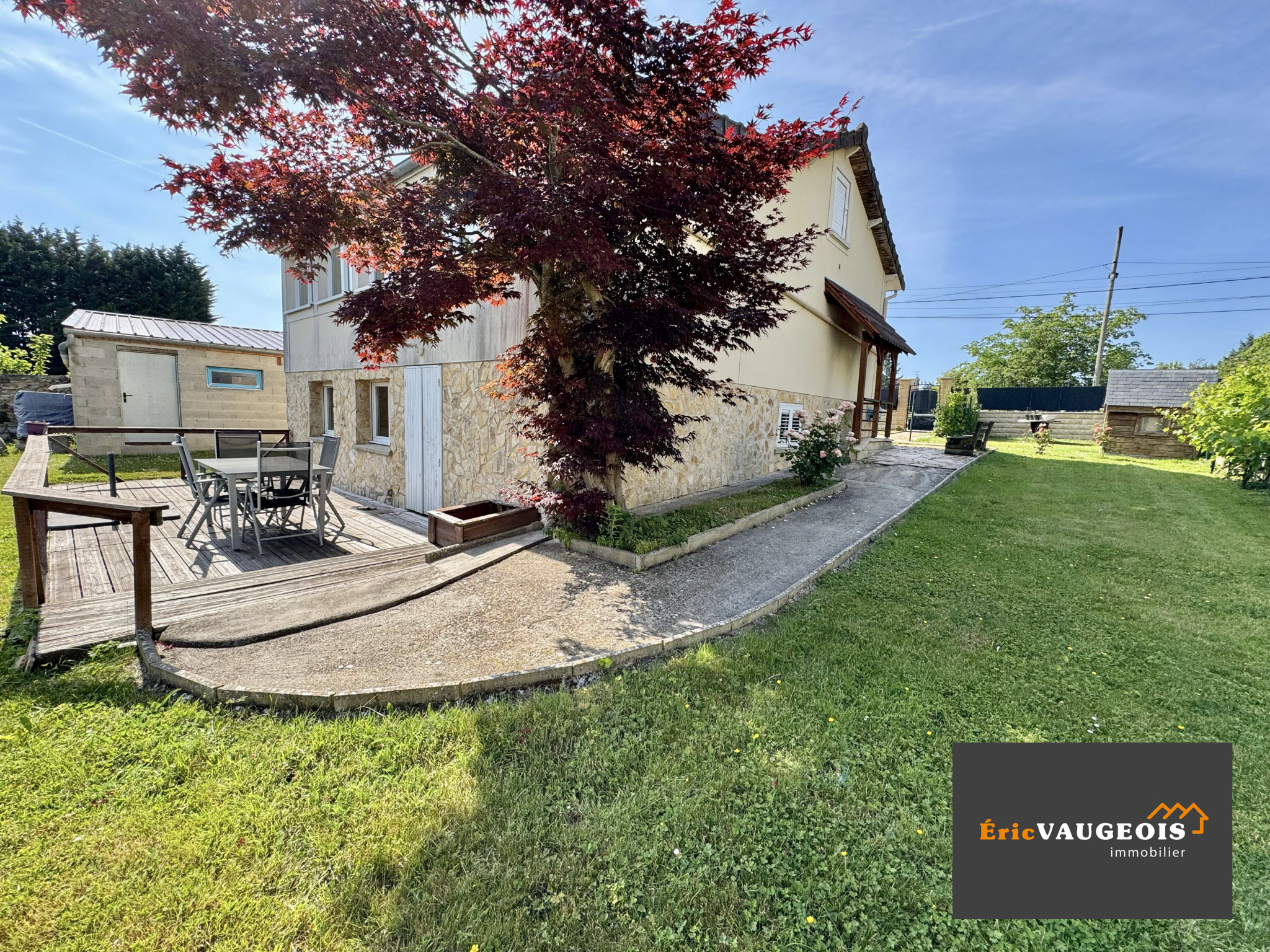 Maison 132m². DPE en C. Terrain 669m². Garages