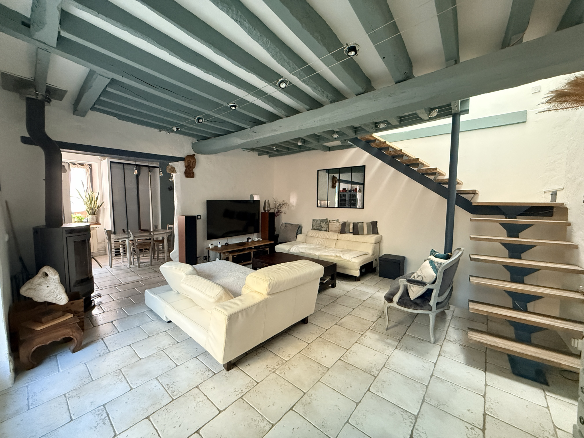 un séjour chaleureux agrémenté d’un poêle à bois,