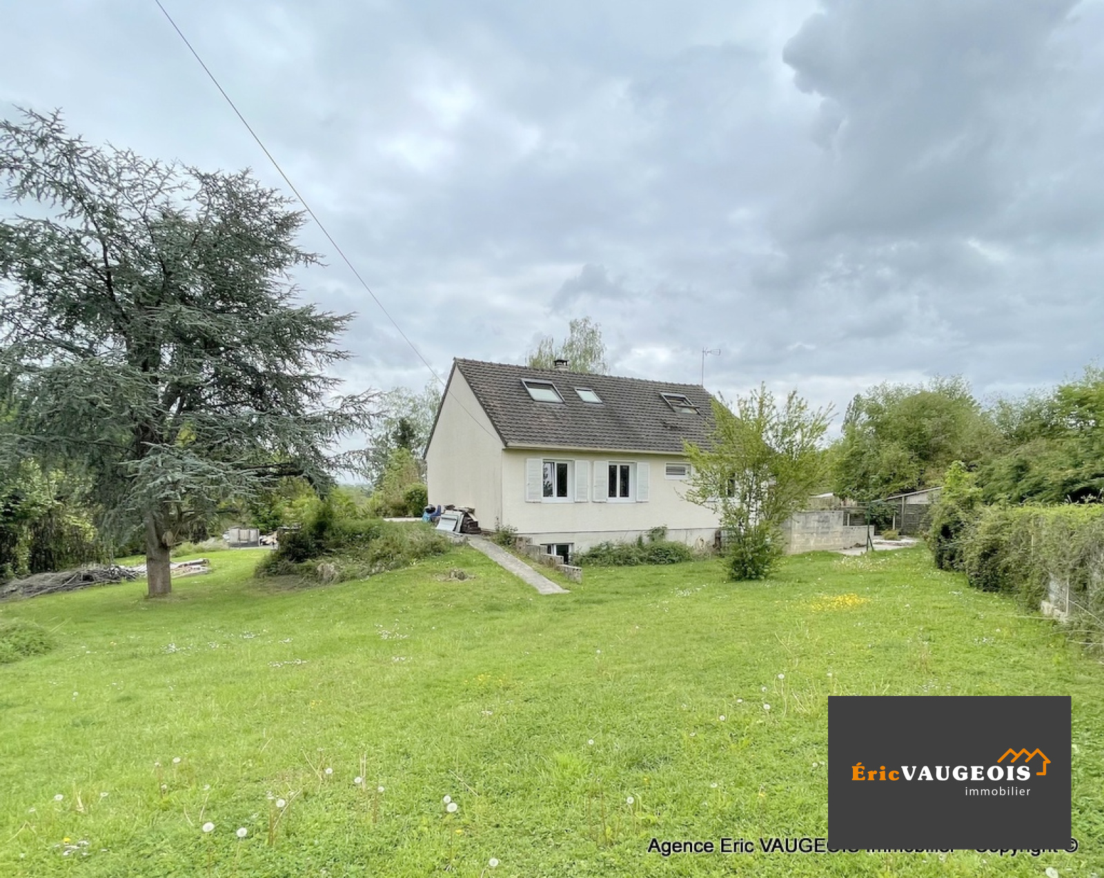 EXCLUSIVITÉ de l'agence Eric VAUGEOIS immobilier à Coulommiers, au milieu de la rue piétonne. Eric VAUGEOIS vous propose sur Saint Rémy de la Vanne (77320) cette maison indépendante T5/6 de + de 100m². Elle comprend : Entrée sur grand séjour lumineux - Cuisine aménagée et équipée - Chambre - Salle de bains - WC séparé. Étage totalement aménagé en 2016 par le constructeur d'origine : Palier - 3 Chambres dont une grande. Sous-sol total avec garage, atelier, buanderie, cave et une belle chambre. Terrain de 1850m² environ clos, arboré, sans vis-à -vis et au calme ! Porte d'entrée et fenêtres double vitrage PVC récents. Tout-à -l'égout conforme. Ballon d'eau chaude électrique de 200L. Chauffage par convecteurs électrique type éco récents + poêle à bois dans le séjour. Taxe foncière de 980€/An. A visiter sans tarder !