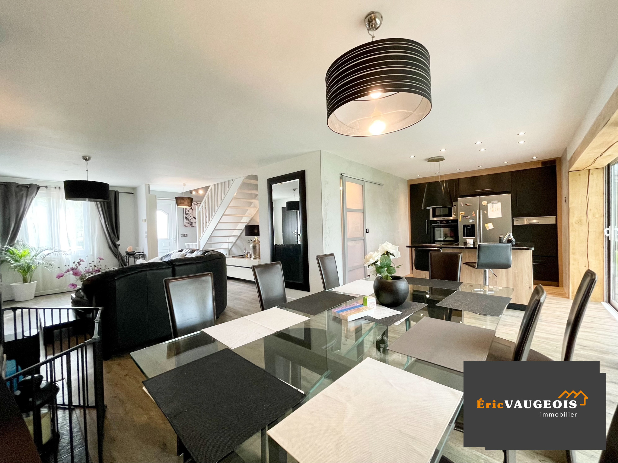 L'agence Éric VAUGEOIS Immobilier à Coulommiers, au milieu de la rue piétonne. Christophe BRET vous propose à moins de 10 minutes de la gare de Coulommiers dans un jolie village tranquille à coté de Mauperthuis (77120) cette belle maison individuelle T6 de 130m² environ entièrement et récemment rénovée sur un terrain de 640m² environ. Elle comprend : Entrée sur double séjour lumineux équipée d'un superbe poêle à granulés - Cuisine américaine aménagée et équipée - Grande baie vitrée et véranda (climatisée) donnant sur jardin - Chambre avec placards - Salle d'eau avec meuble vasque et wc - Placard pour Lave-Linge. A l'étage : Pièce palière avec rangements - Grande chambre avec nombreux placards - Salle d'eau avec meuble vasque avec wc - Chambre avec rangements - Dégagement avec placards - Chambre avec rangements + mezzanine. 3 Garages. Jardin plat, clos, arboré, fleuri, sans vis-à -vis et au calme. Fenêtre double-vitrage. Radiateurs électriques Eco. Ballon d'eau chaude électrique. Tout-à -l'égout conforme. Internet très haut débit par fibre. Taxe foncière de 904 E/an. Etat impeccable - A visiter sans tarder!
