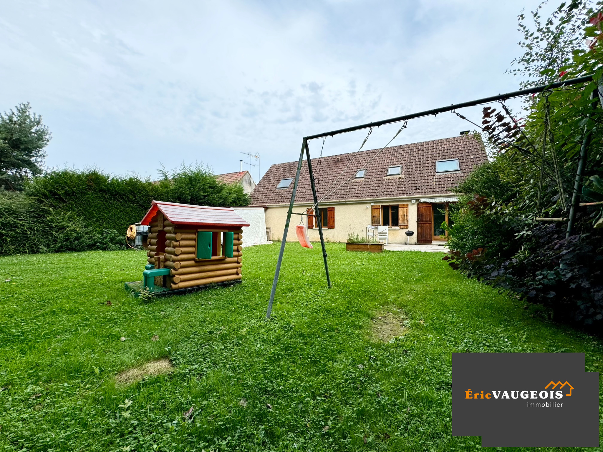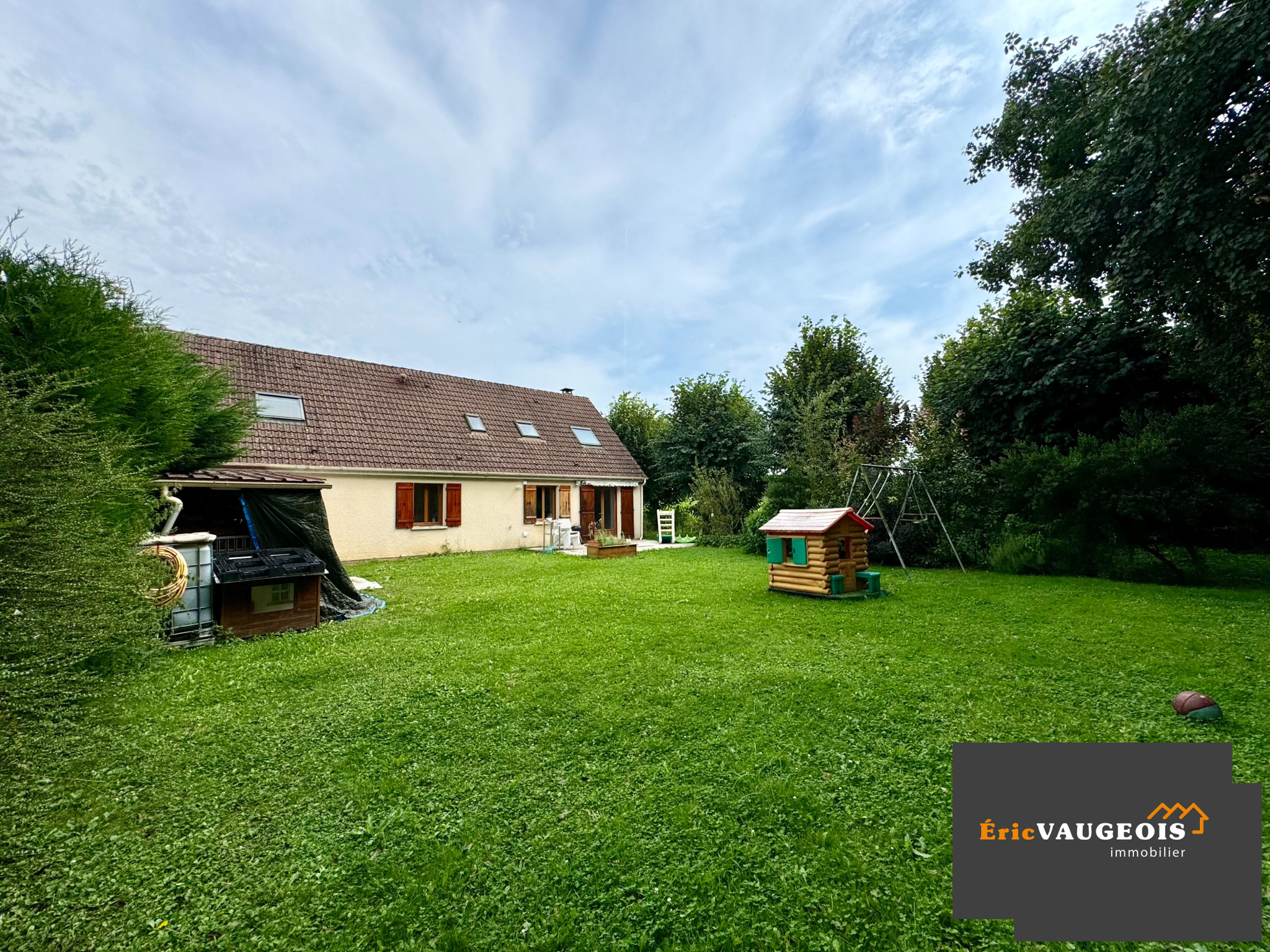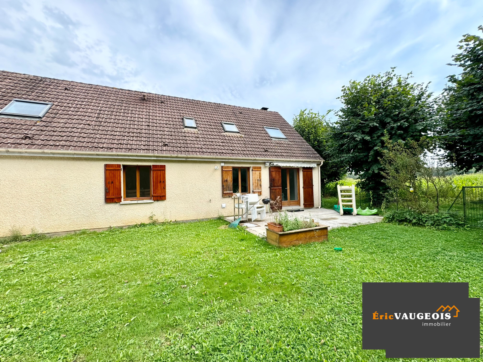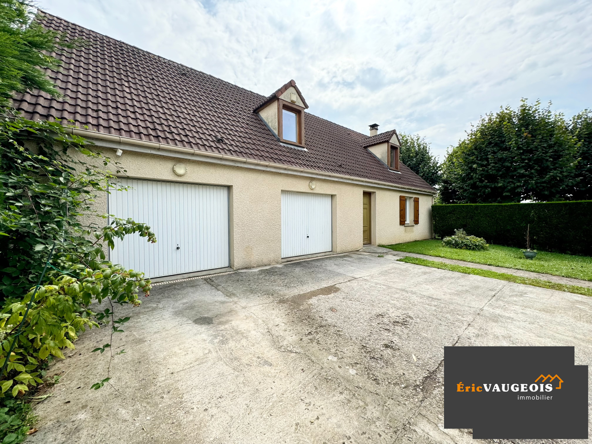 SOUS COMPROMIS DE VENTE !!! Eric VAUGEOIS immobilier à Coulommiers au milieu de la rue piétonne. Eric VAUGEOIS vous propose dans un village proche de Coulommiers et de la N4 cette grande maison indépendante (DPE : C) de 132 m² environ édifiée en 2000 dans un quartier résidentiel calme. Elle se compose : Entrée - Grand séjour lumieux - Cuisine ouverte aménagée et équipée - WC séparé - Suite parentale avec sa salle d'eau et meuble vasque. Etage : Dégagement central - 4 chambres - Salle de bains avec meuble vasque - WC séparé. 2 Garages. Equipements : Fenêtres double vitrage. Chauffage central avec production d'eau chaude par chaudière gaz. Poêle à bois. Raccordé au tout-à -l'égout conforme. Internet très haut débit par FIBRE. Extérieurs : Terrasse. Terrain de 669 m² environ plat, clos, au calme et sans vis-à -vis. Taxe foncière de 1500 E/an. À visiter sans tarder !