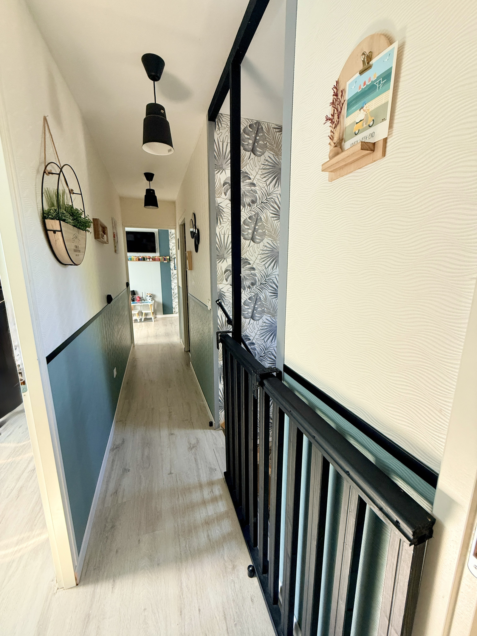 A l'étage : le palier dessert 3 chambres et un wc.