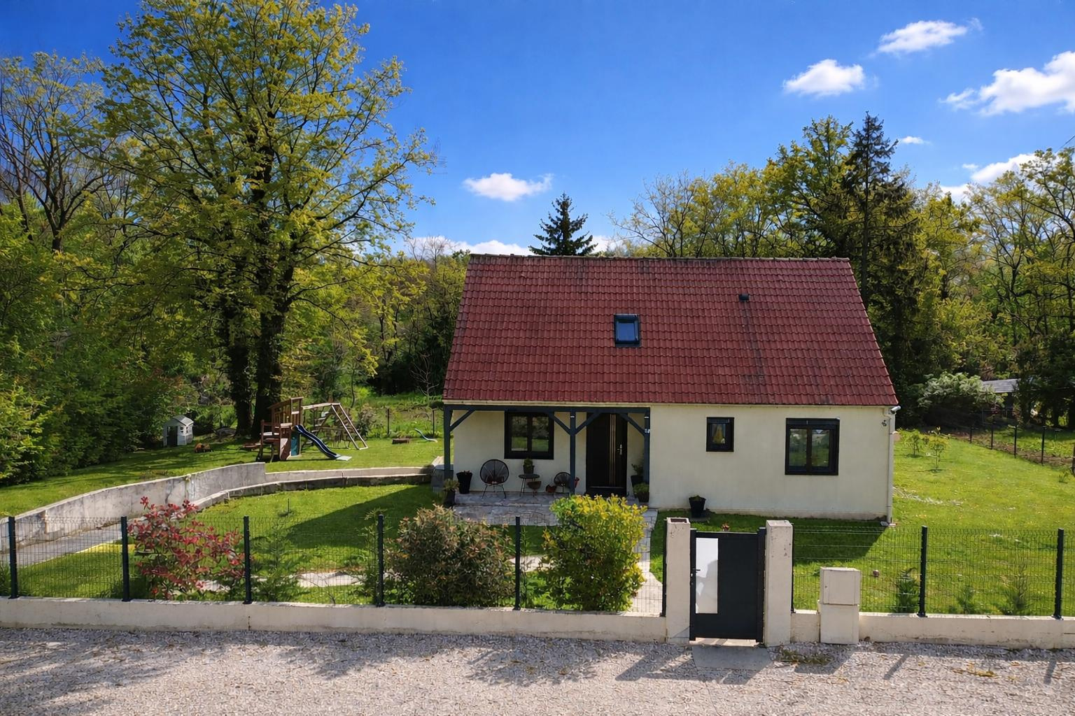 EIRL Virginie MARTIN au 06.58.84.85.23 vous propose en EXCLUSIVITE sur la commune de SAINT DENIS LES REBAIS cette maison individuelle édifiée sur sous sol total dans un cadre calme et boisé.