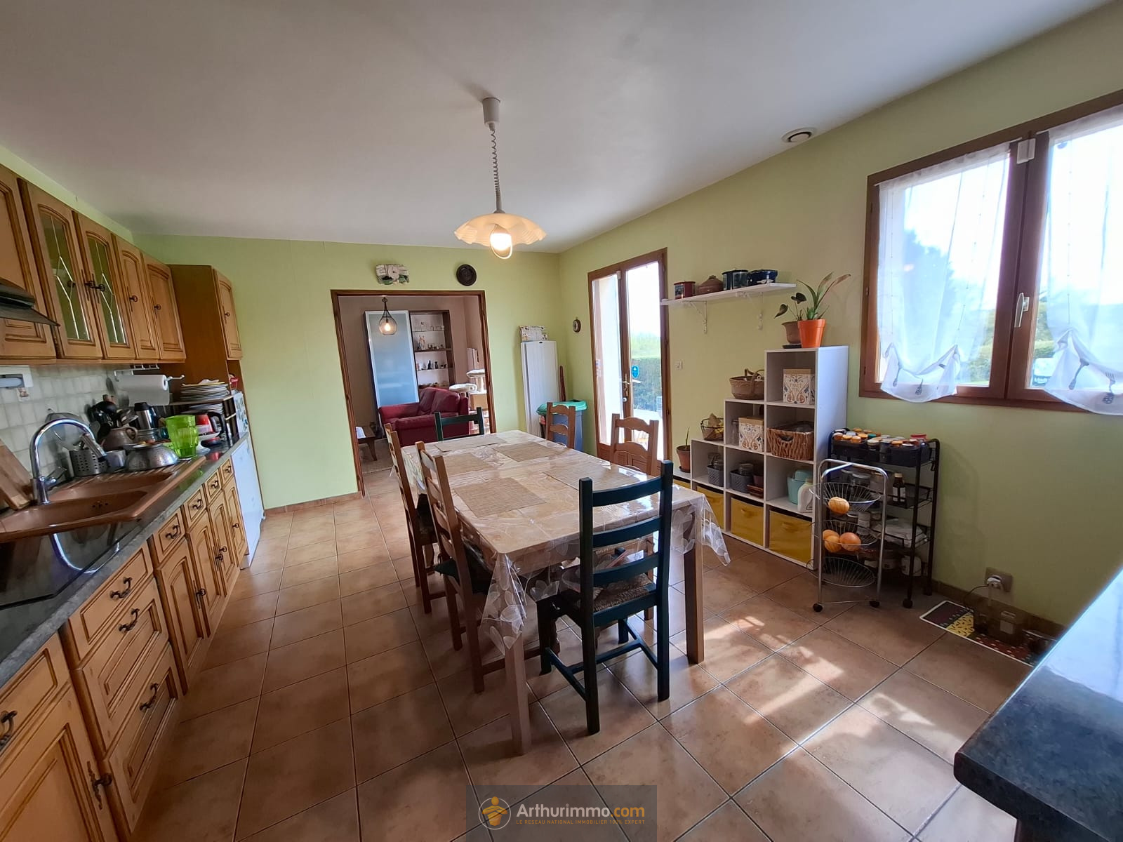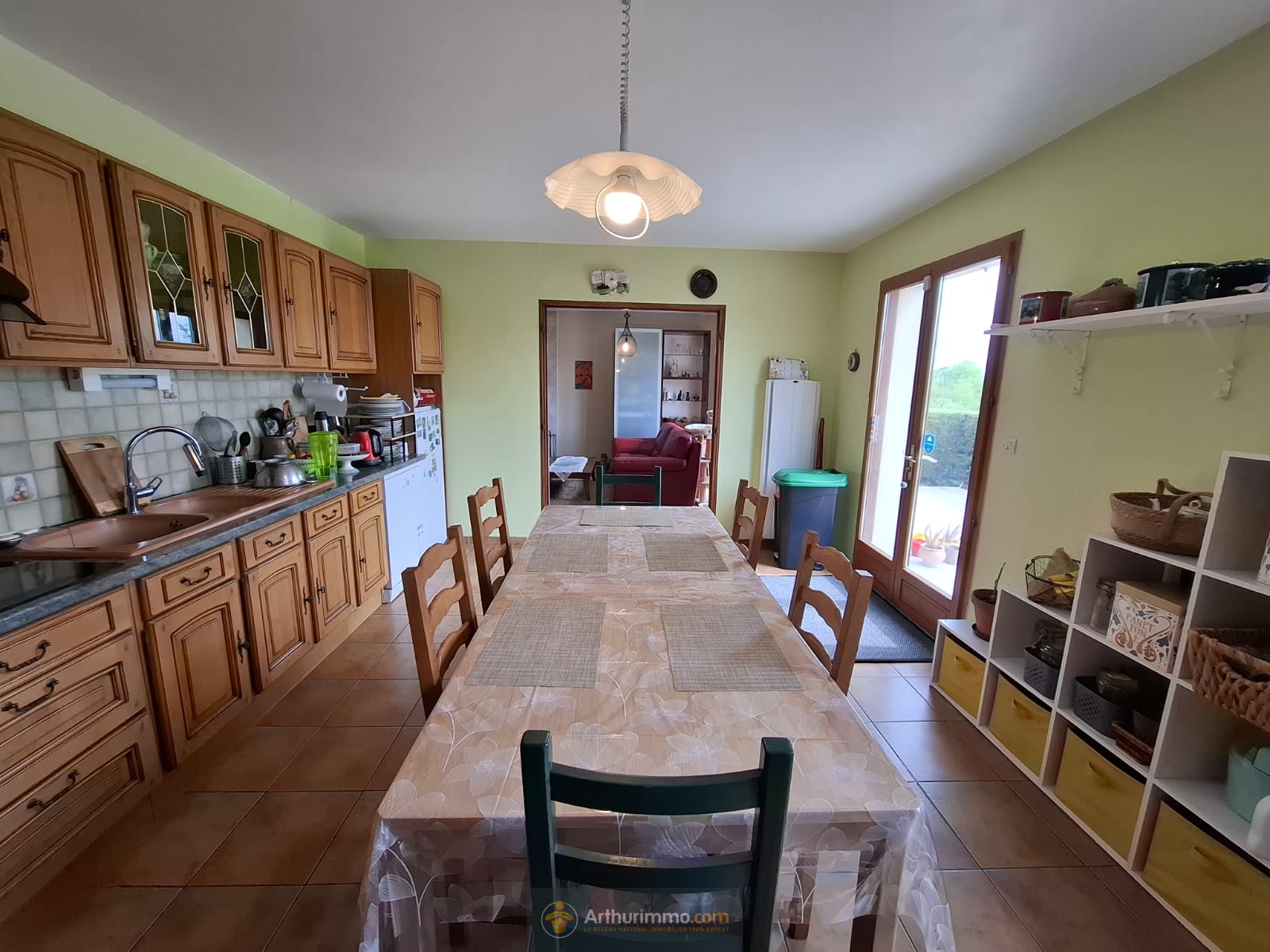 Cuisine env. 20m² ouverte avec accès direct sur une belle terrasse de 30 m² et grand jardin a plusieurs arbres fruitiers.