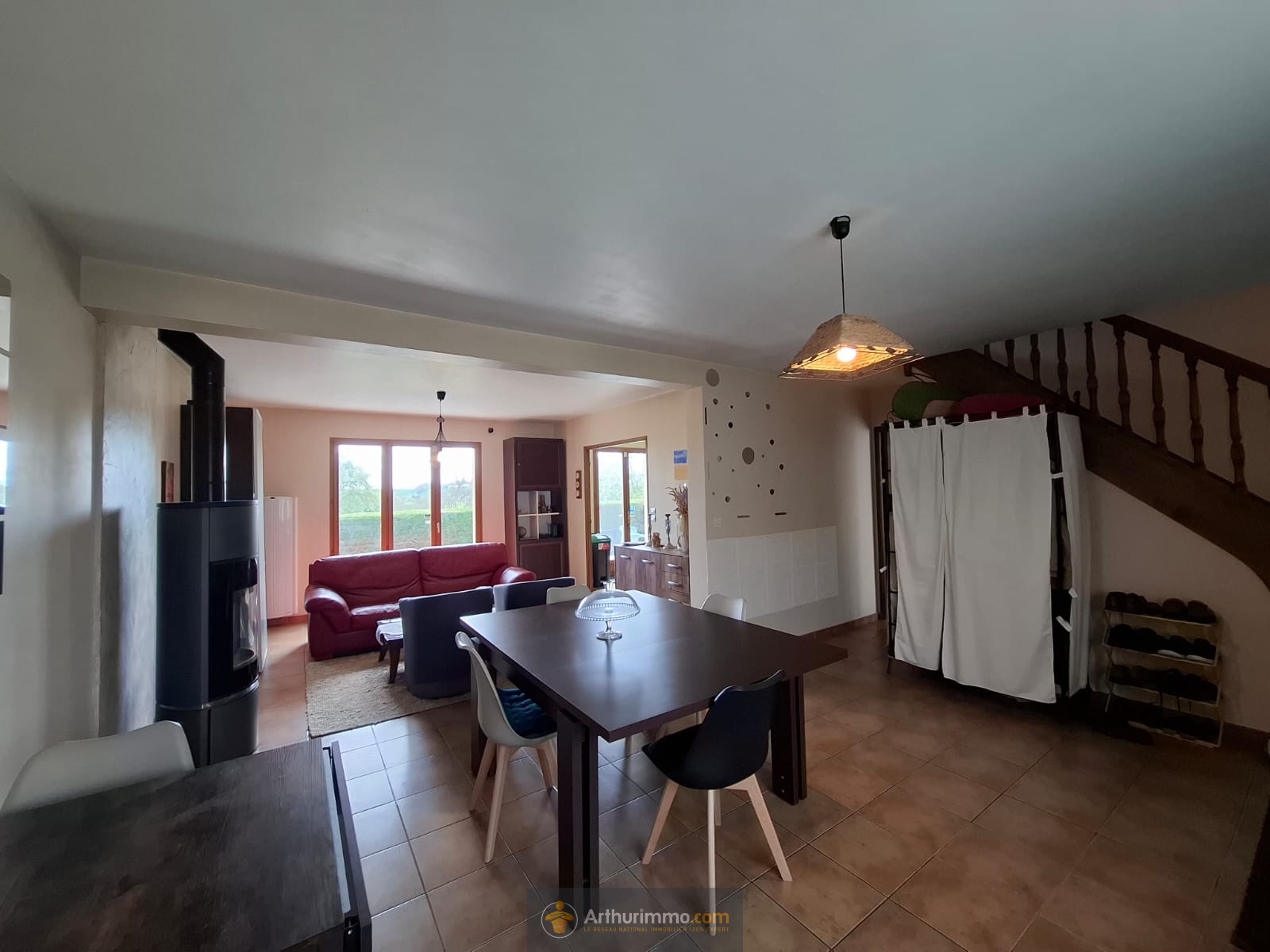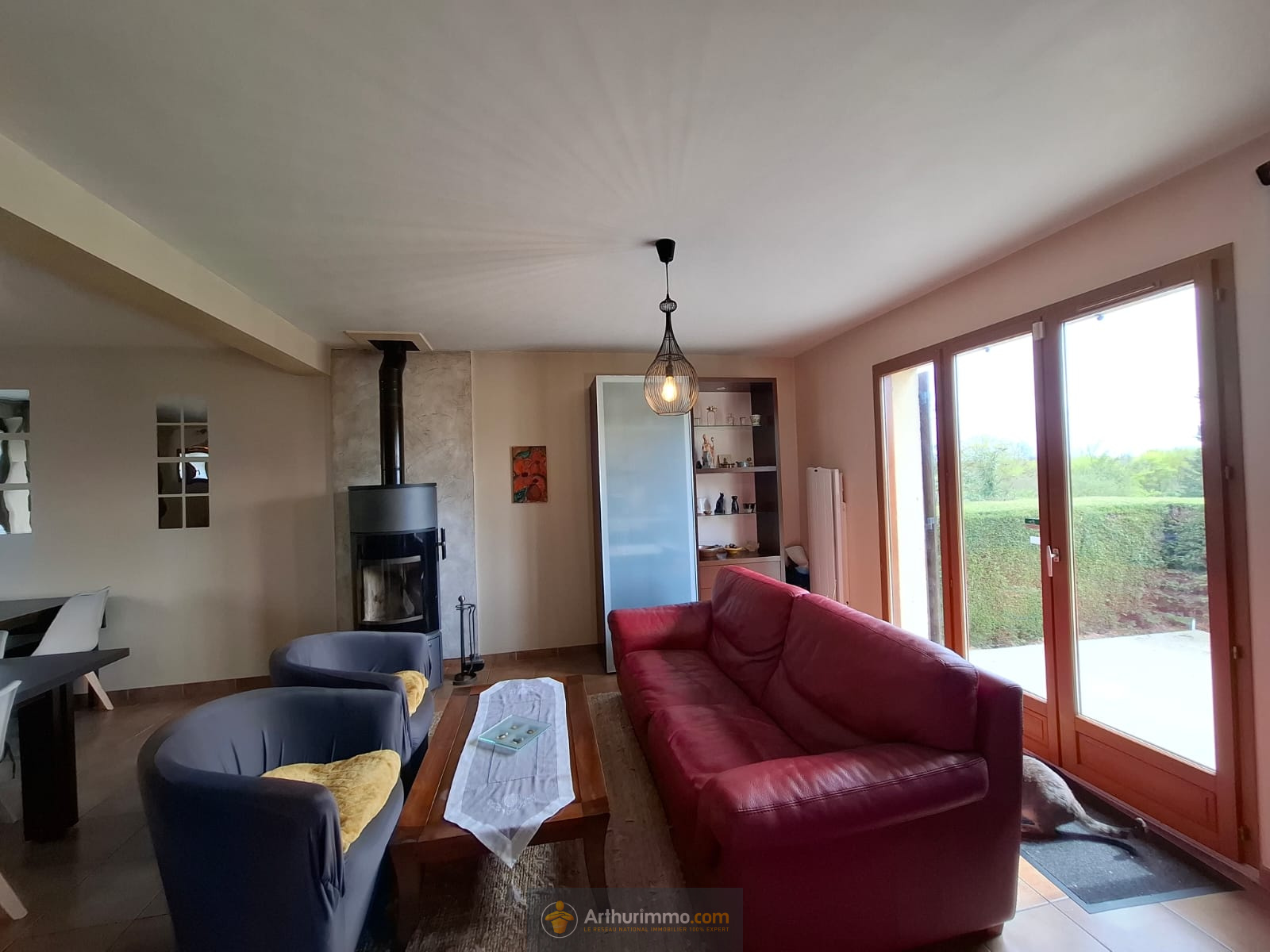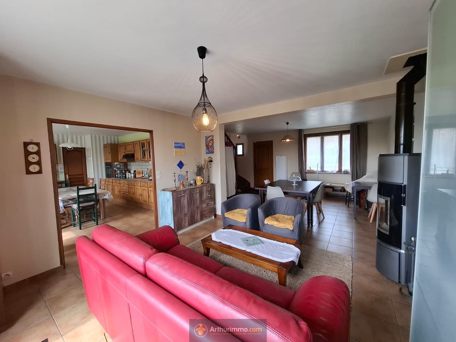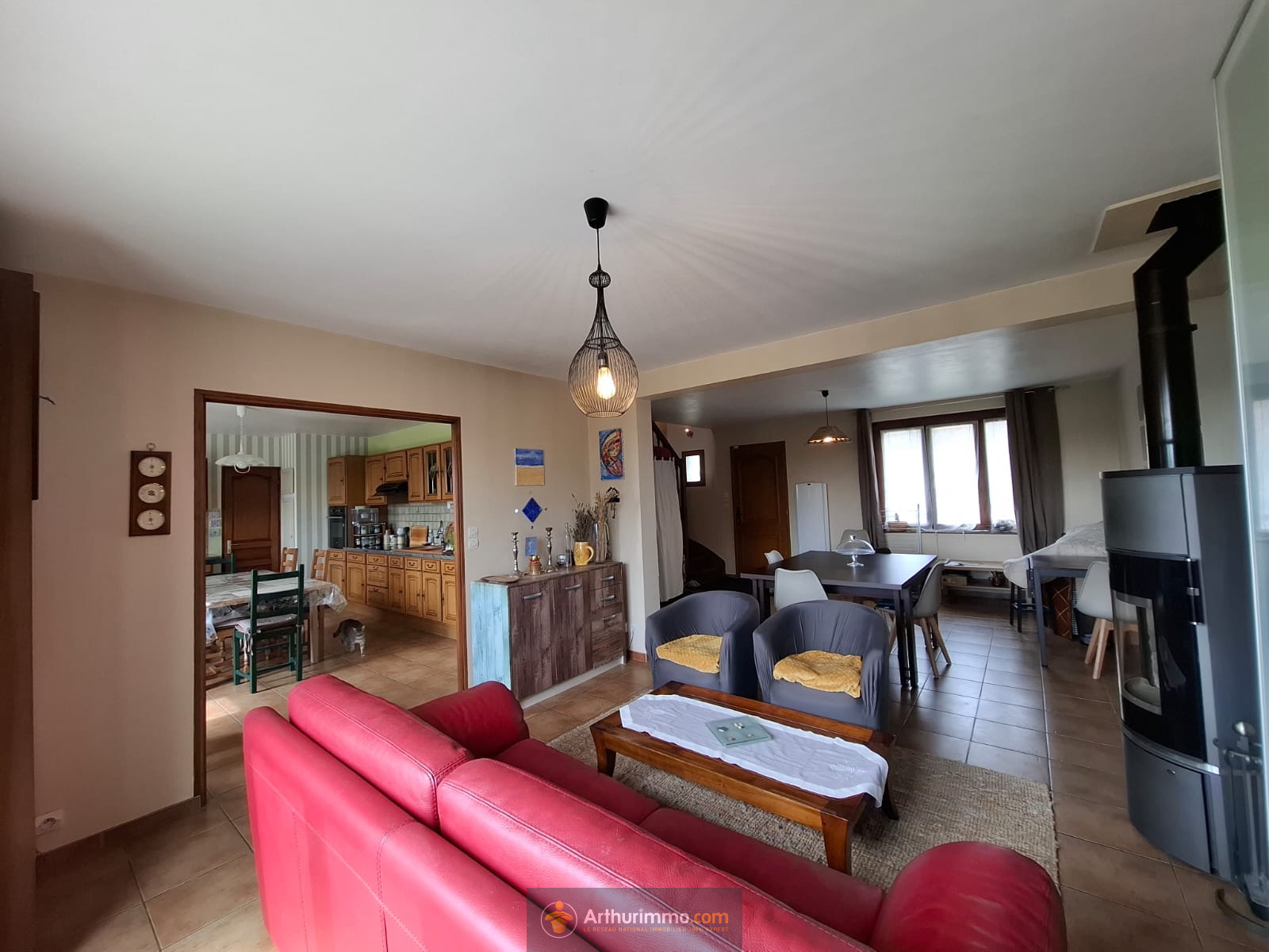 Vaste séjour chaleureux d’environ 40 m² avec poêle à bois.