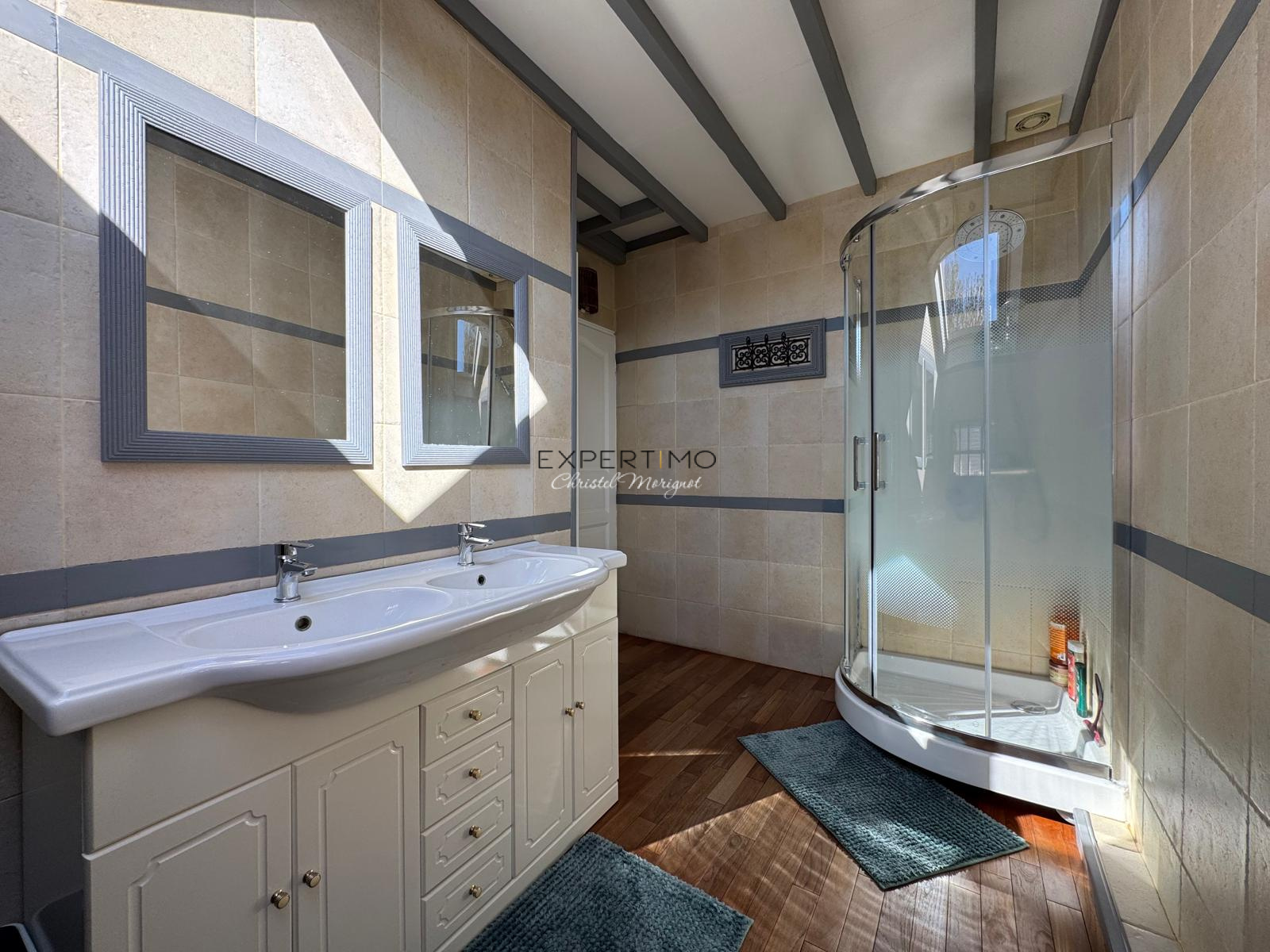 À l’étage, un couloir dessert 3 chambres, dont 2 avec dressing, ainsi qu’une grande salle d’eau avec WC.